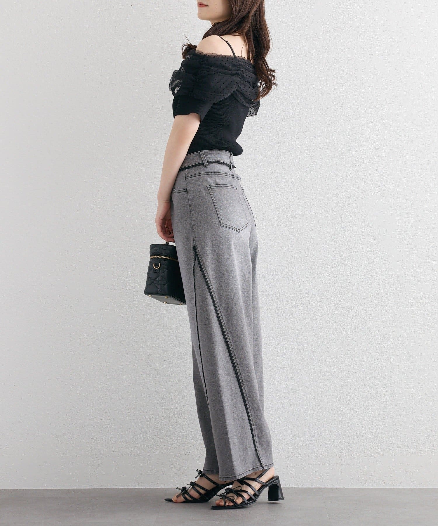 デニムやワイドパンツと合わせて、甘さを抑えたカジュアルミックスコーデも◎。