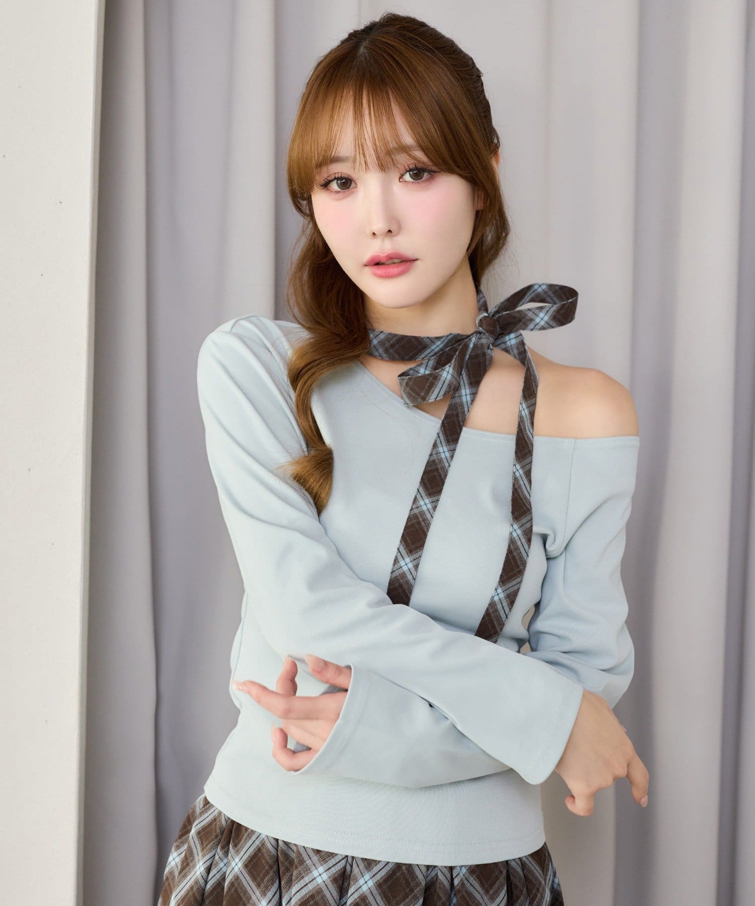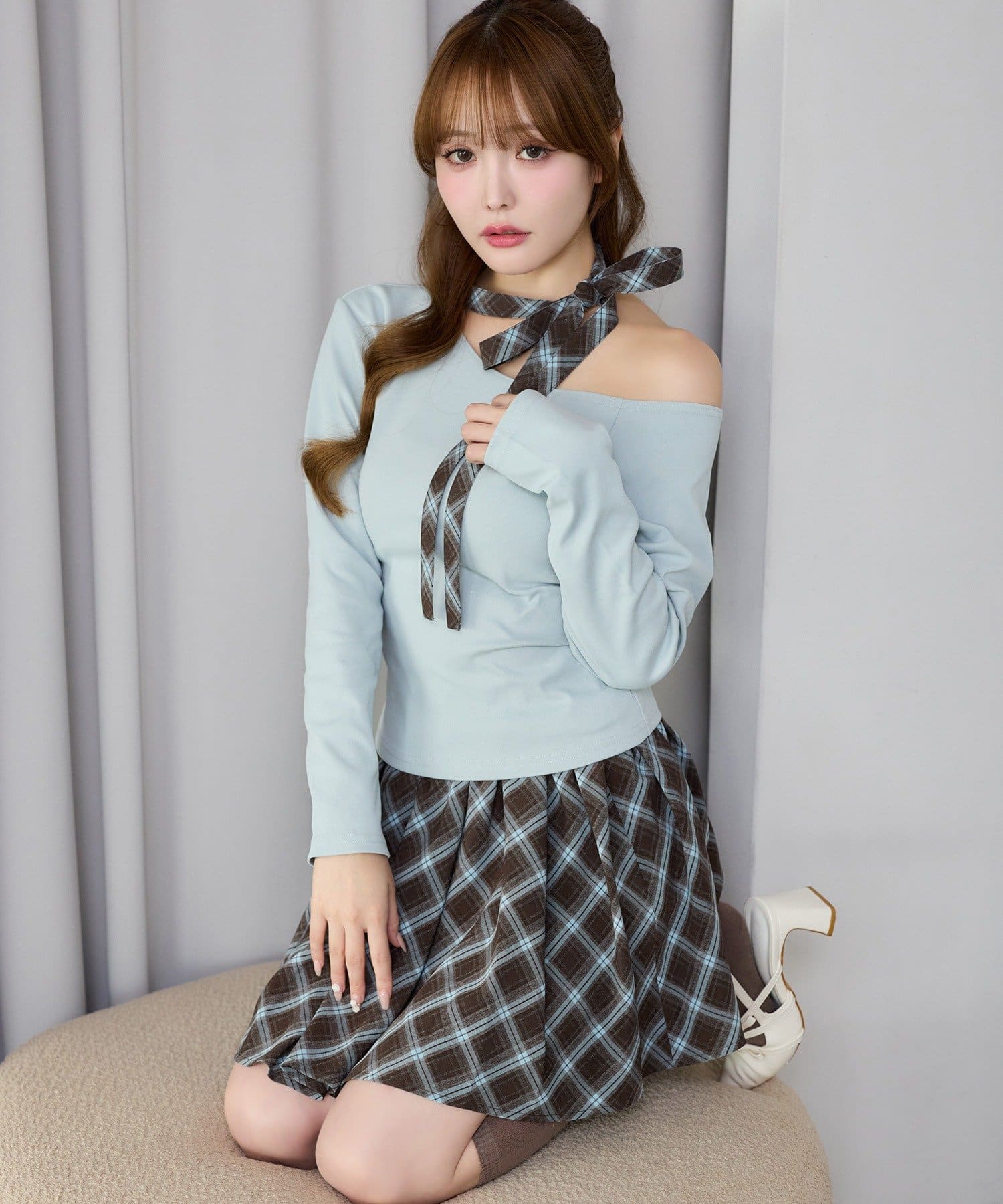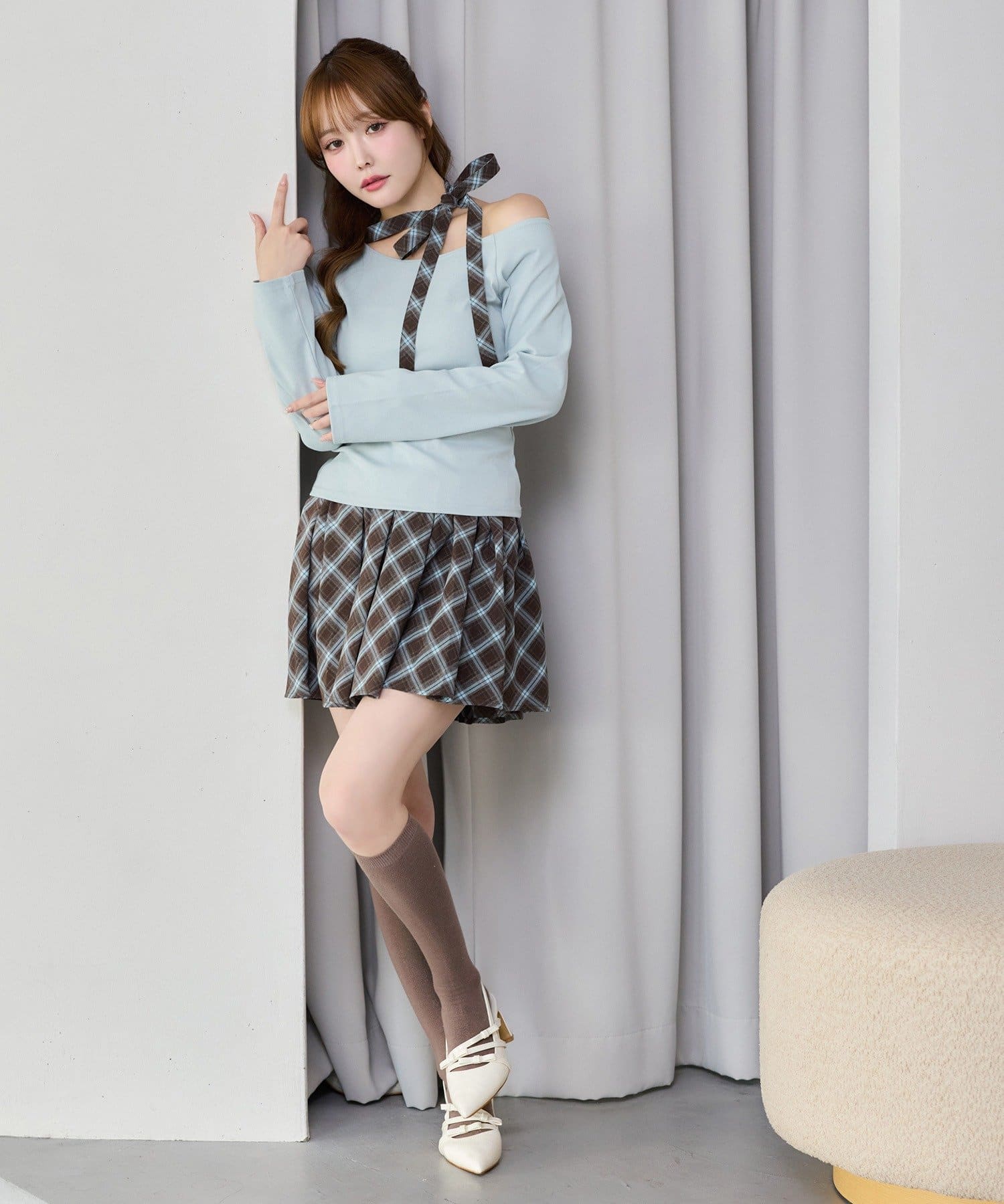 ジャンスカのインナーとして着ても、首元のリボンがポイントになって可愛い仕上がりに。