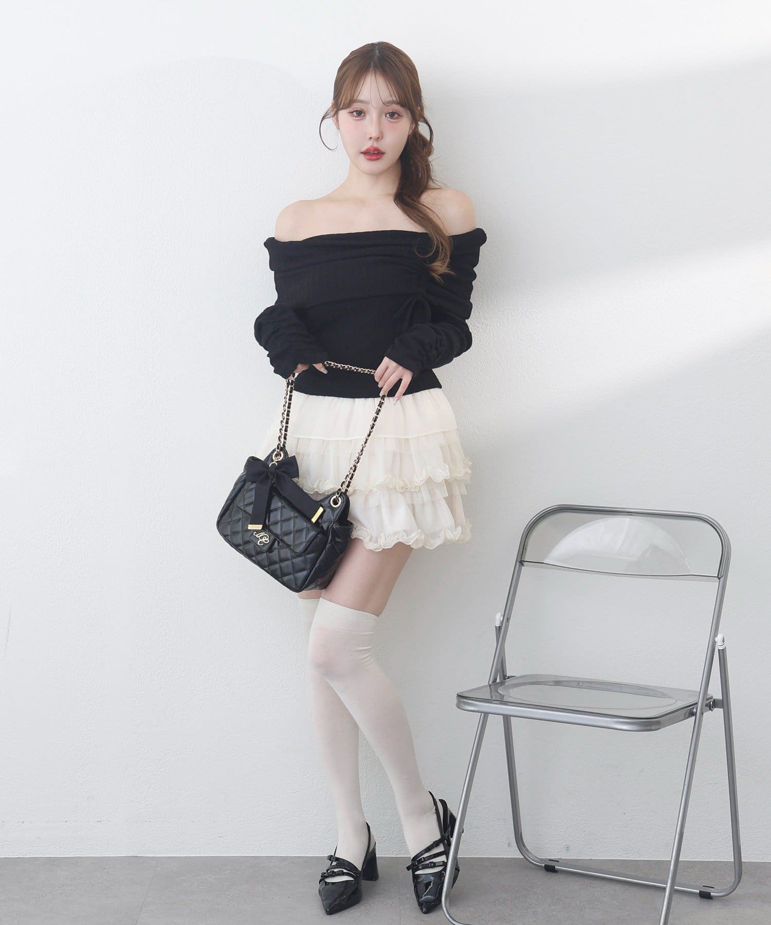 ミニスカートやプリーツスカートと合わせてフェミニンコーデに