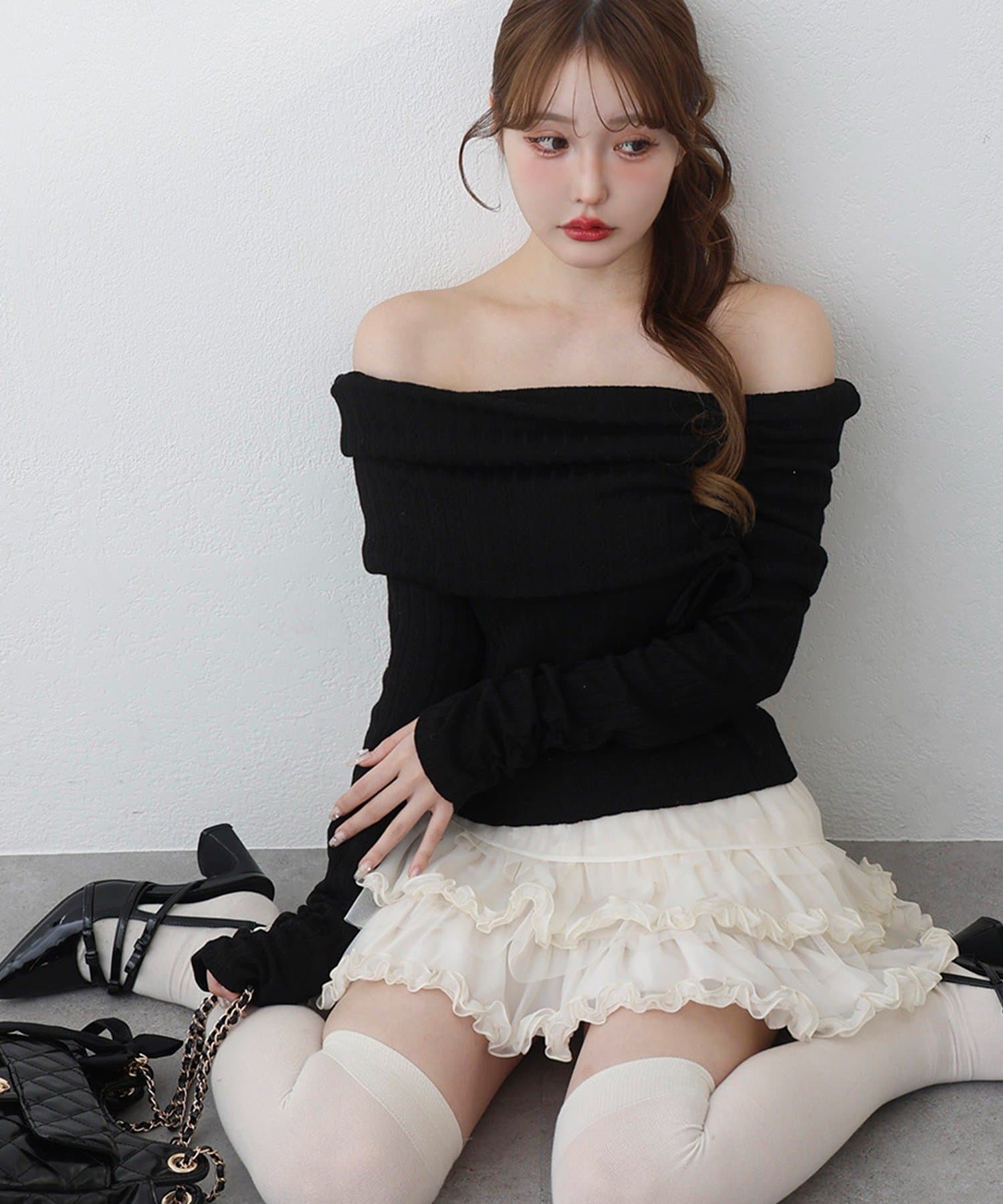 オフショル風のデザインなのでインナーにも困らず着用いただけます。