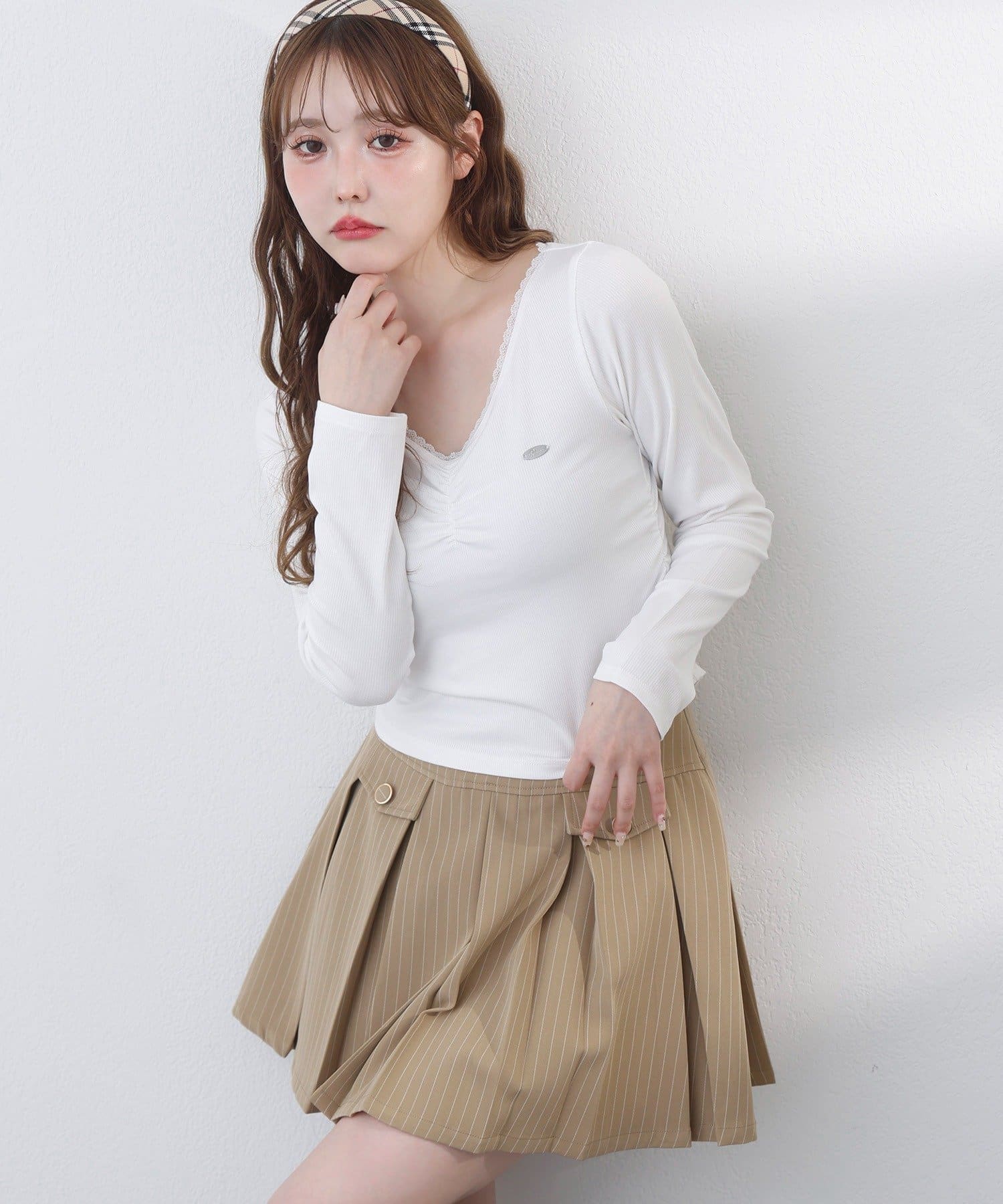 ミニスカートやフレアスカートと合わせてフェミニンコーデに