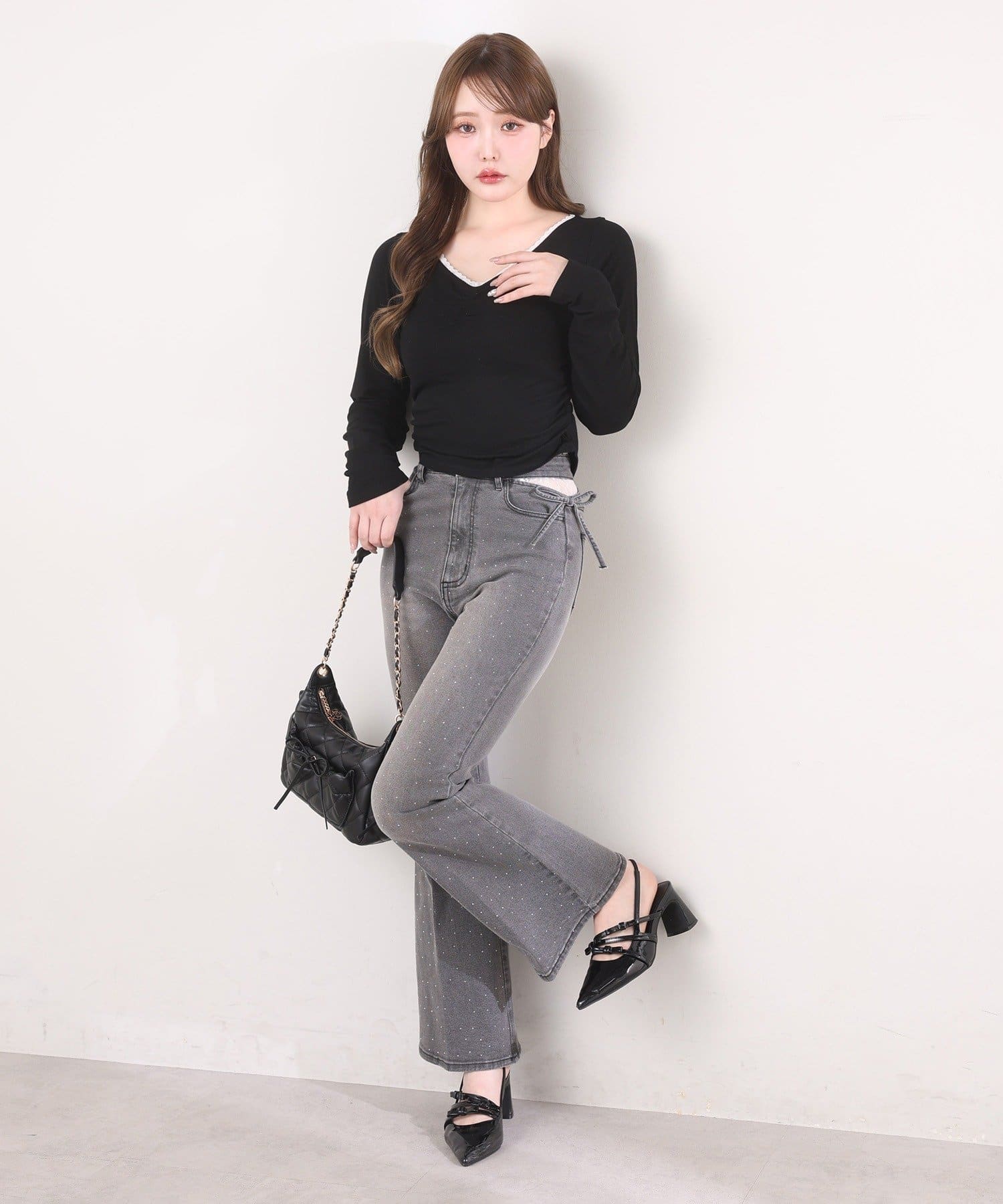 デニムやスラックスと合わせて甘さを抑えた大人カジュアルにも。