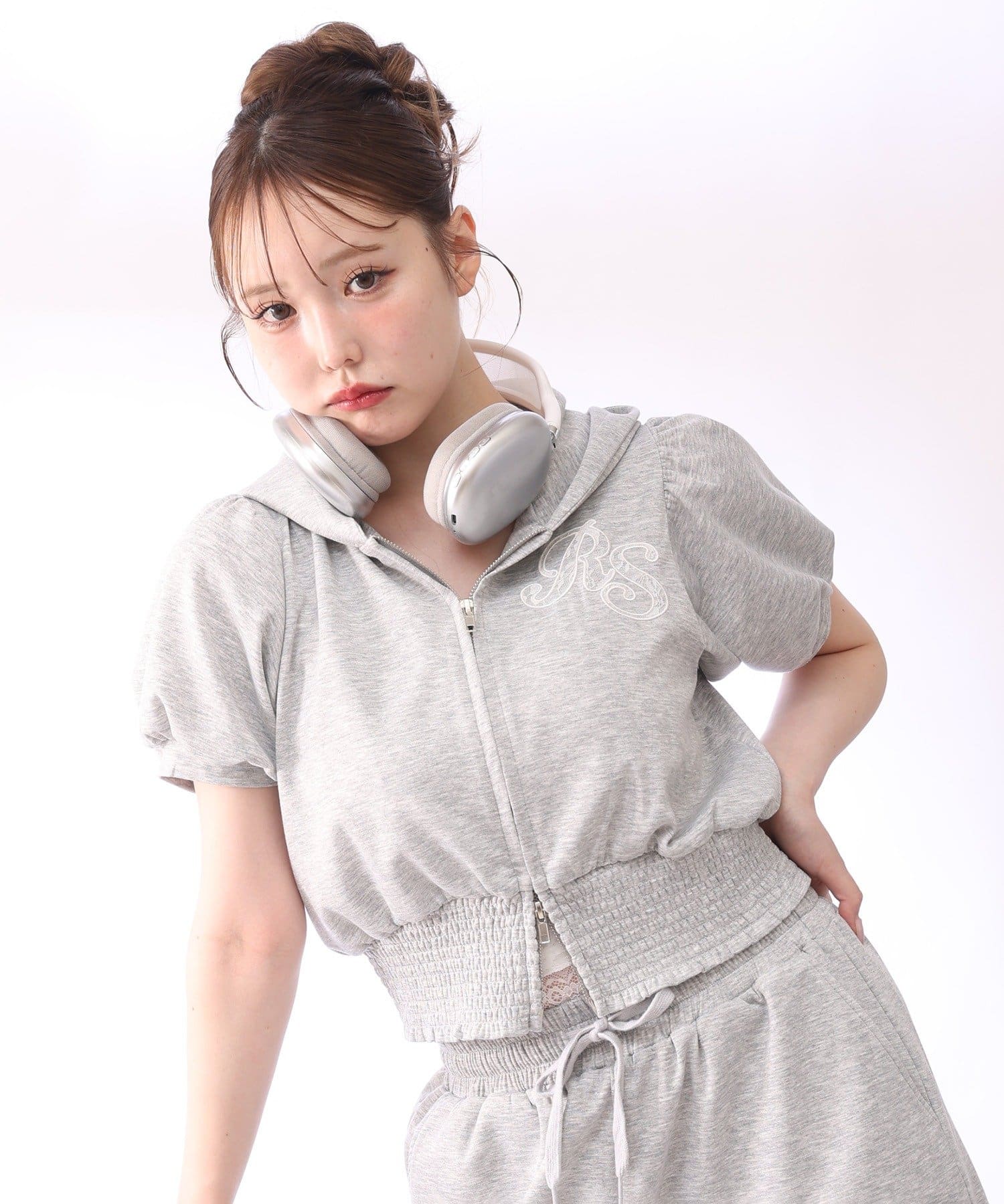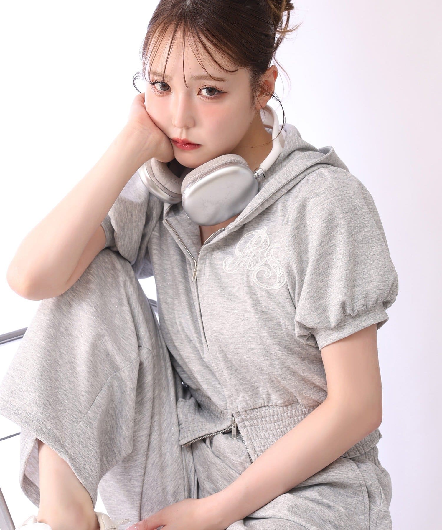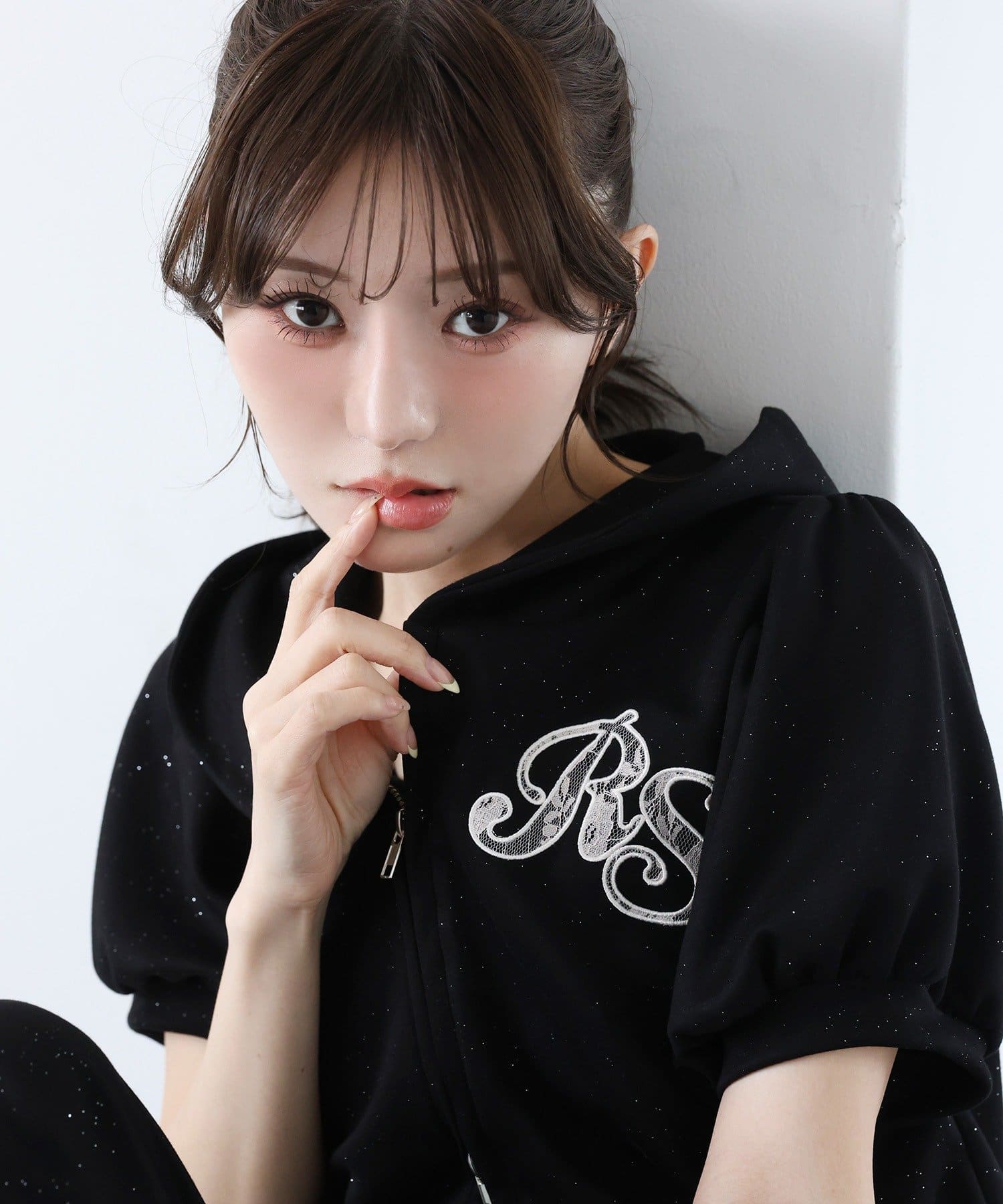 【セットアップ可能】レースロゴ刺繡半袖ラメパーカー