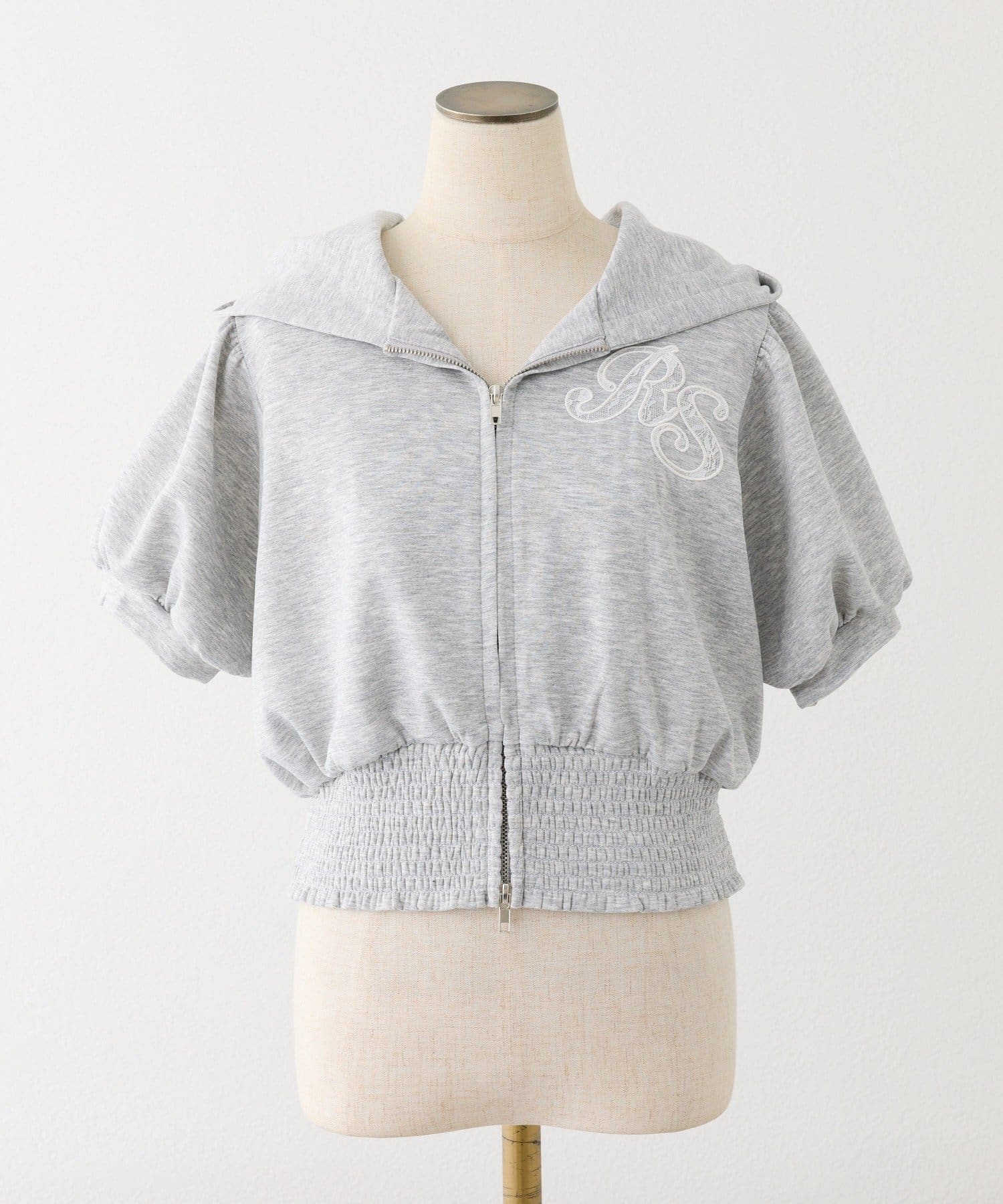 胸元のロゴ刺繍がワンポイントになった半袖パーカー。