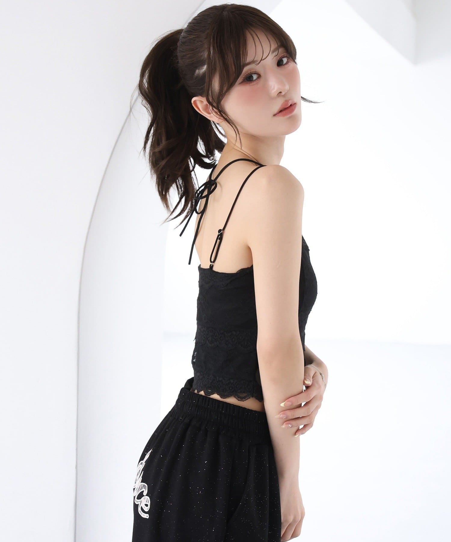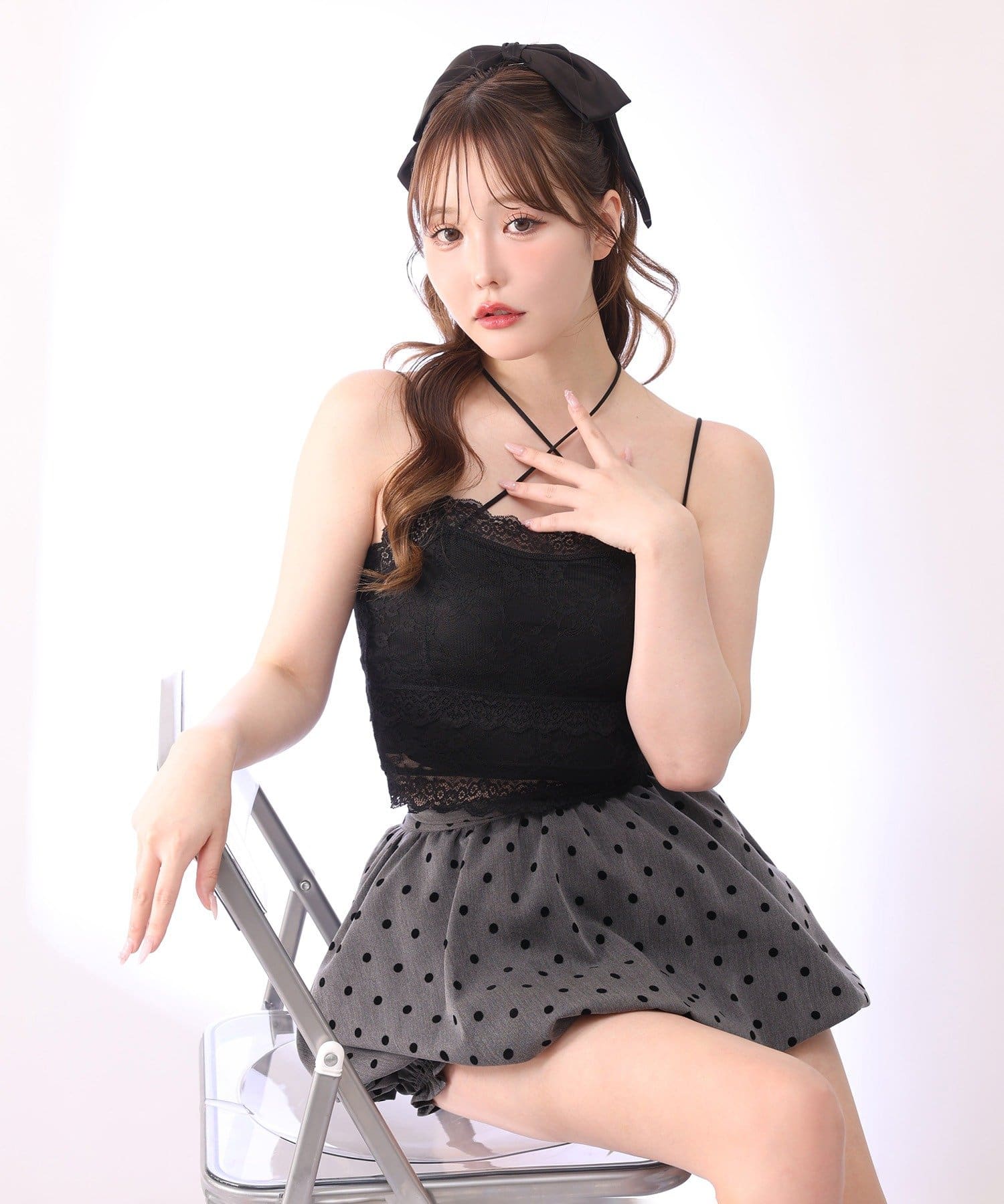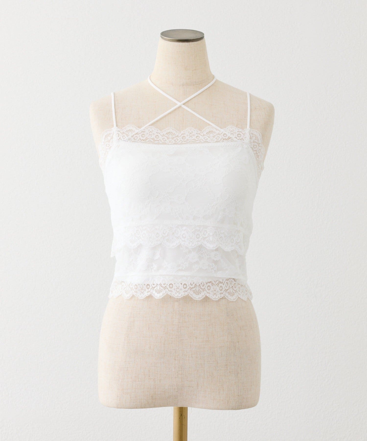 ホルターネックデザインがポイントのカップ付きレースキャミソール。