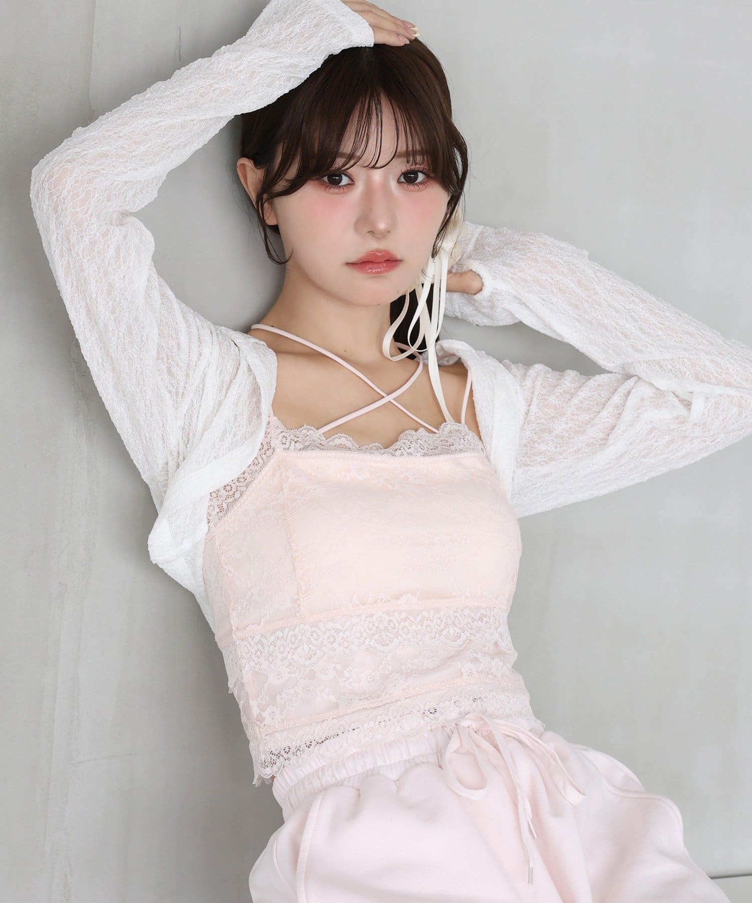 キャミワンピやジャンスカのインナーとして合わせるスタイリングも◎。