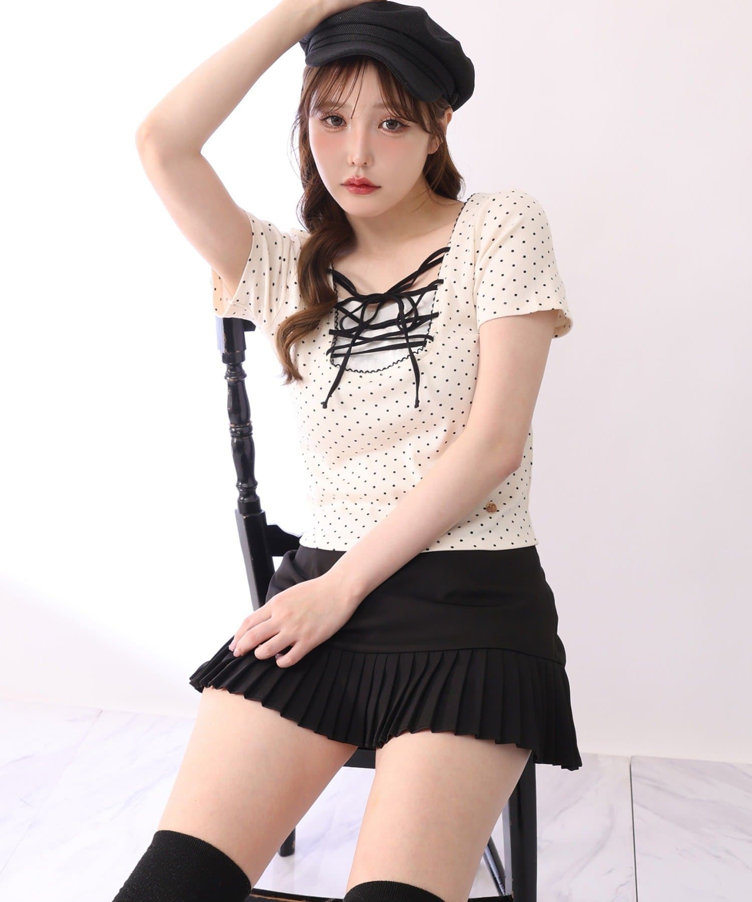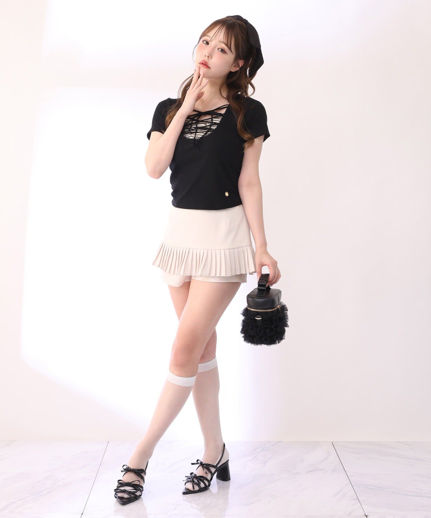 ミニスカートやプリーツスカートと合わせて、ガーリーコーデに。