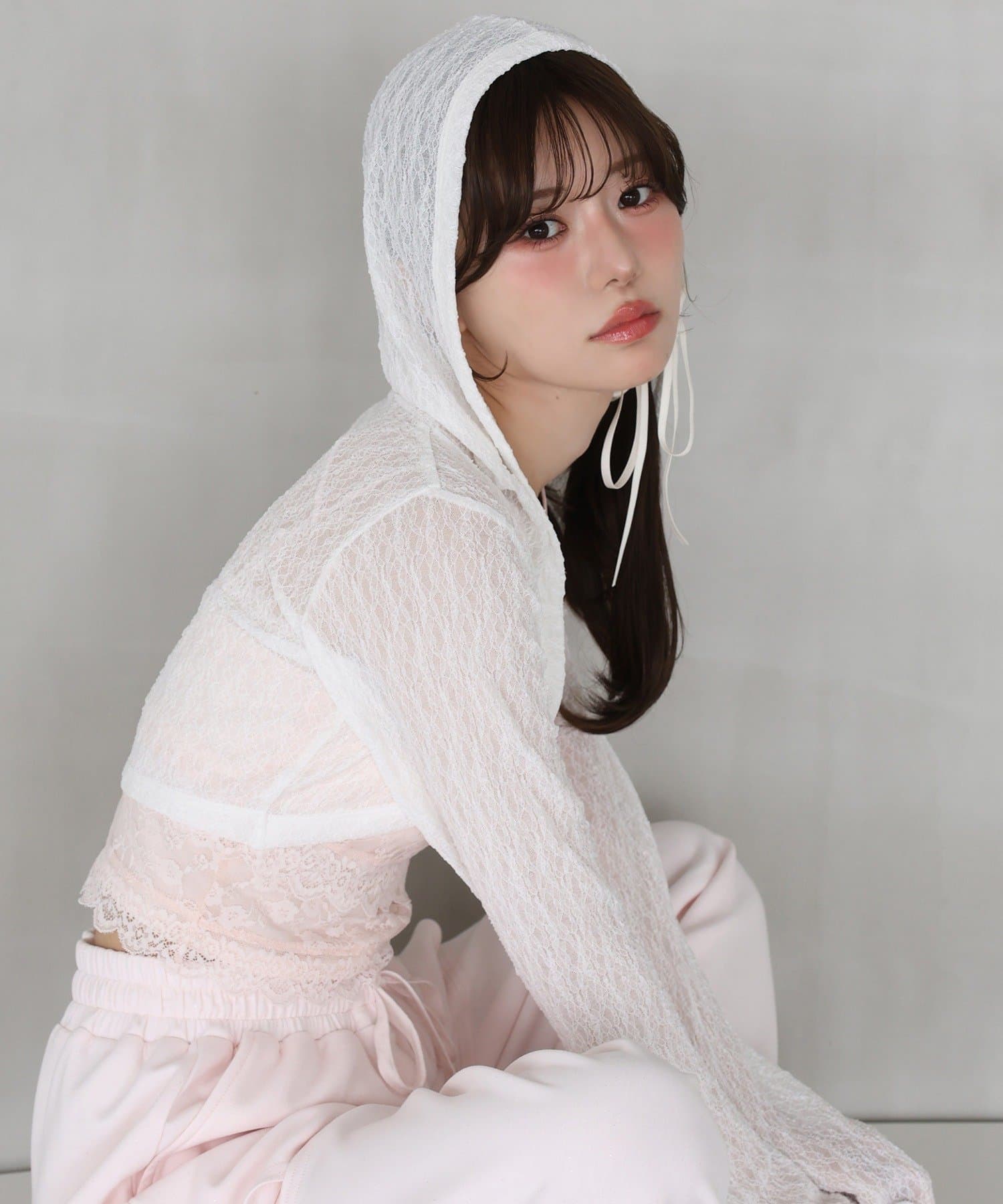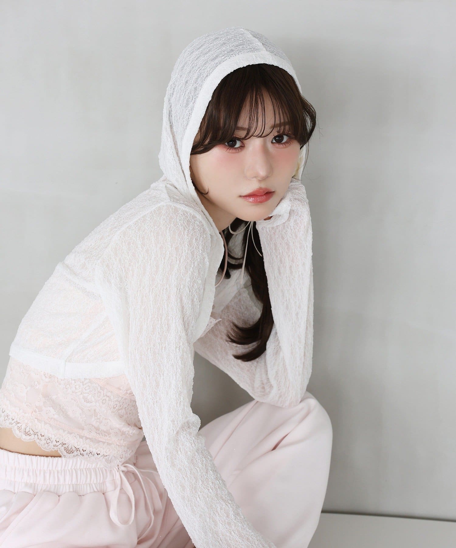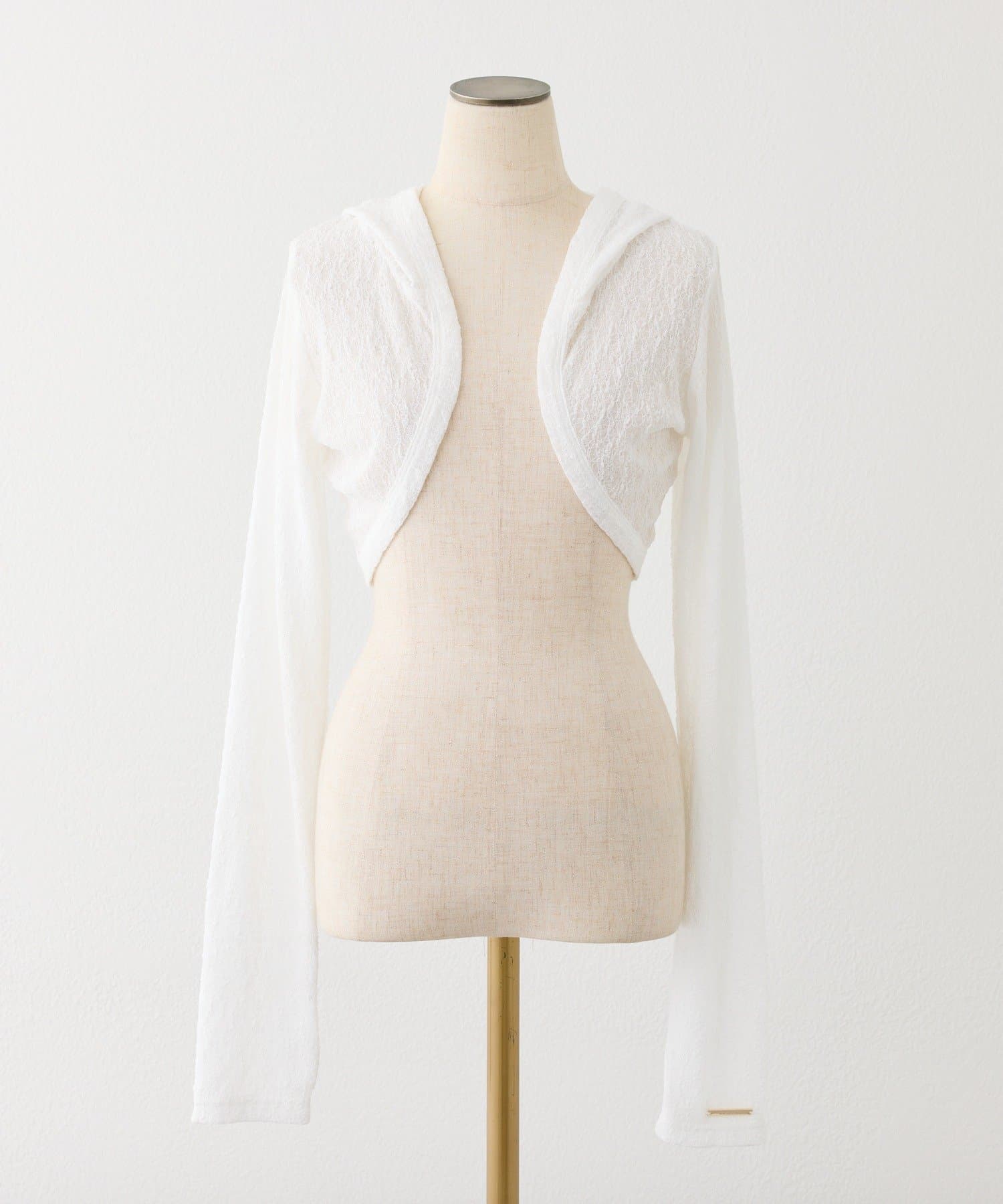 フード付きデザインがポイントのフーディーボレロ。