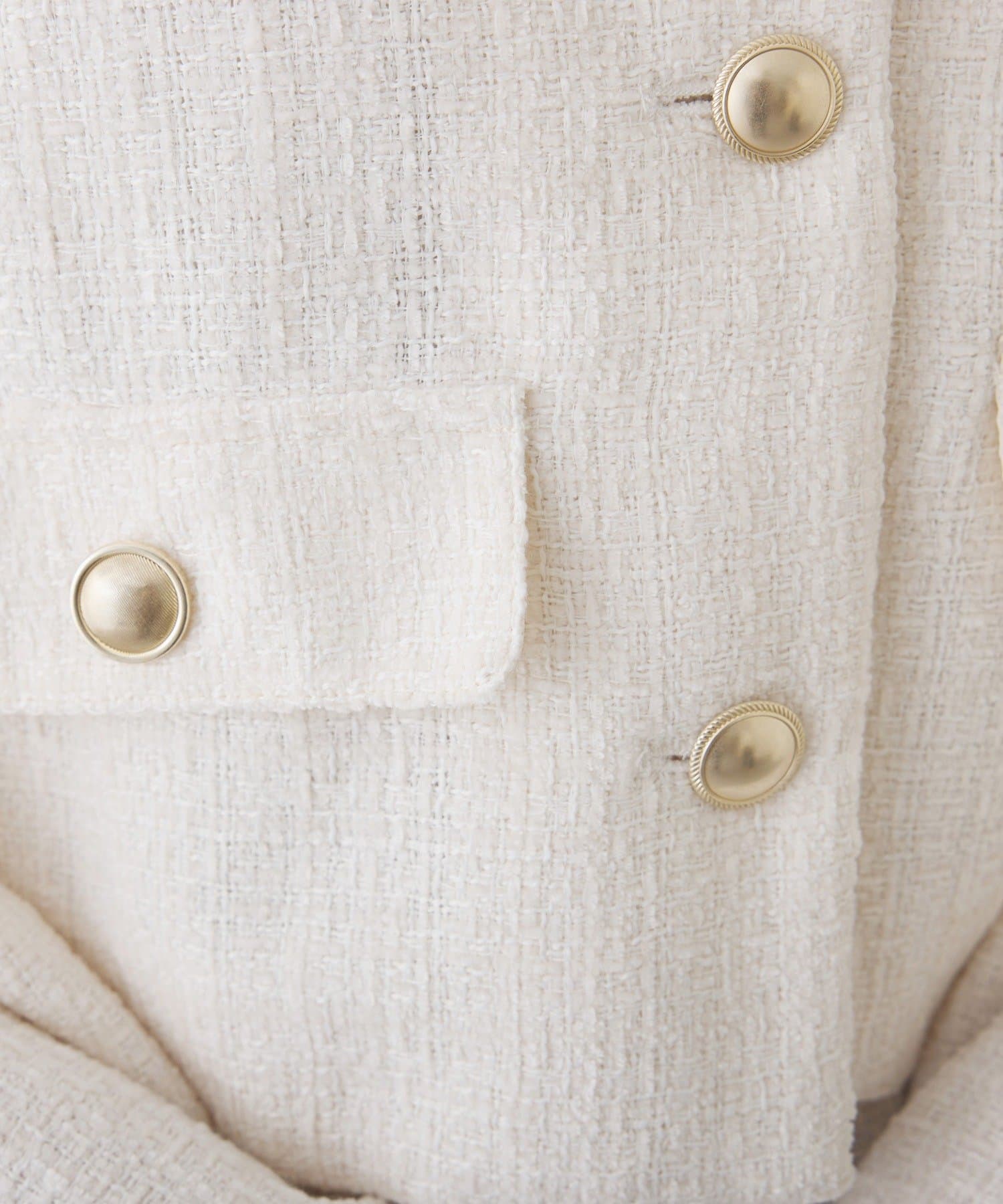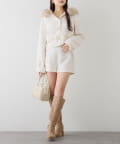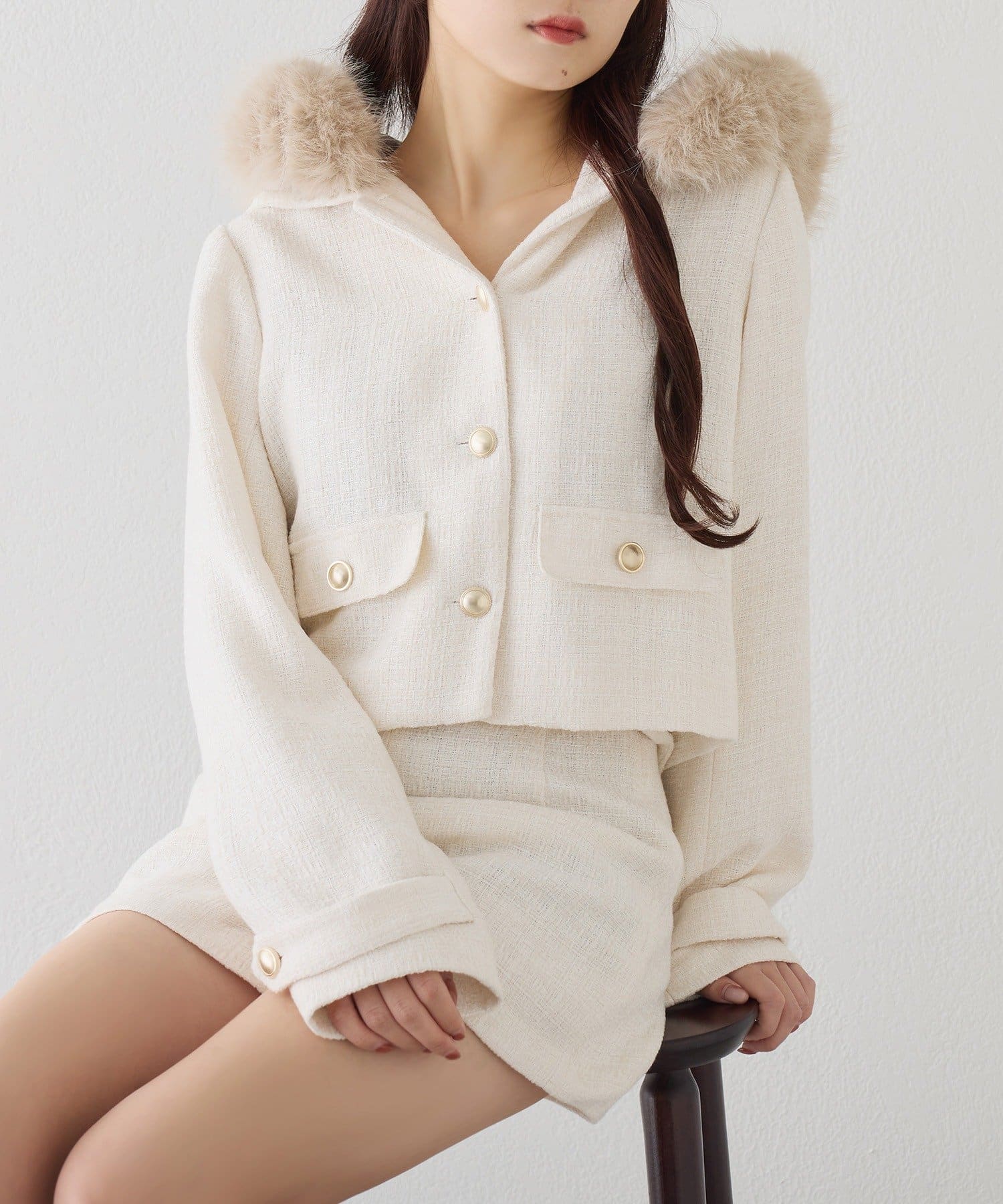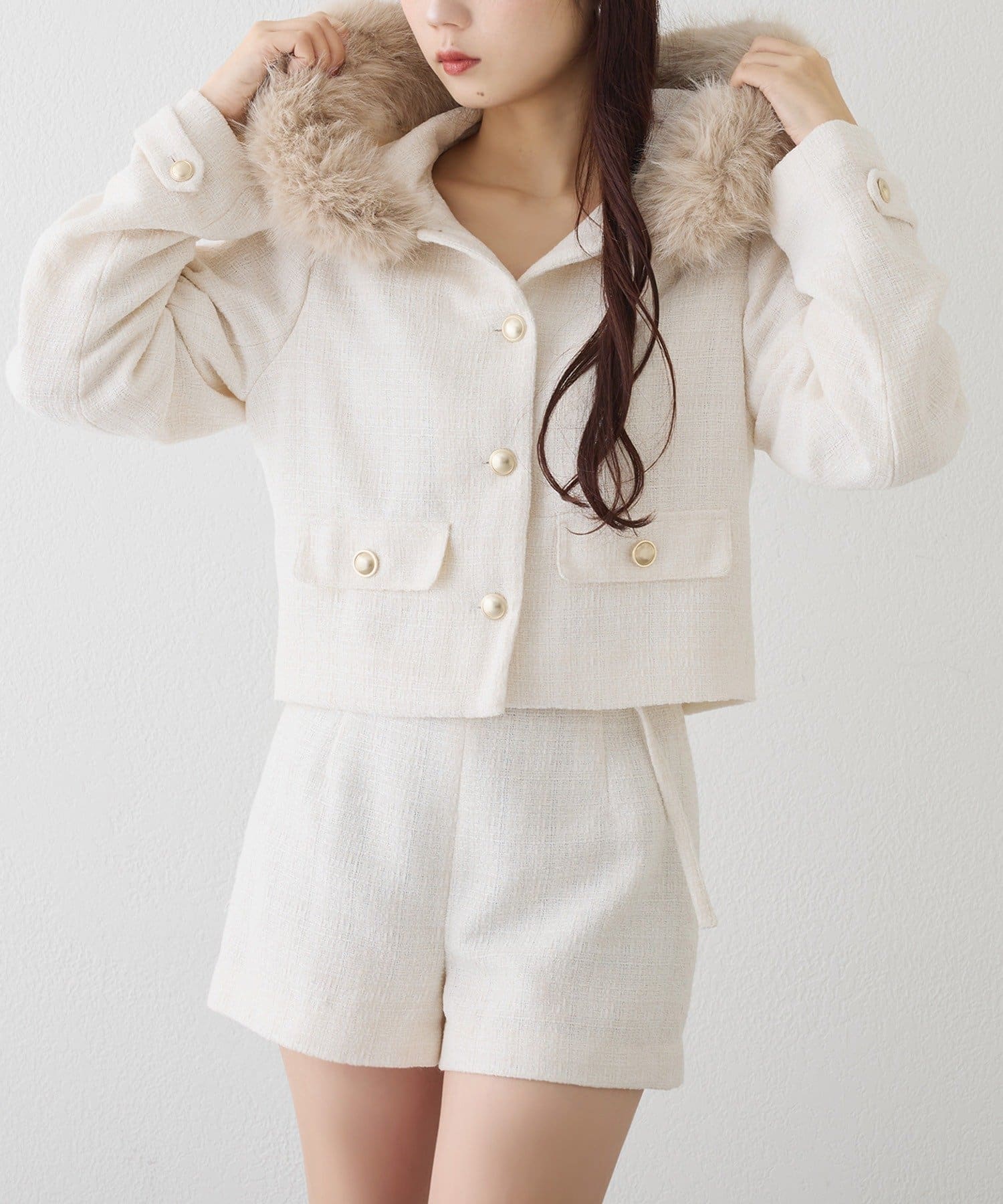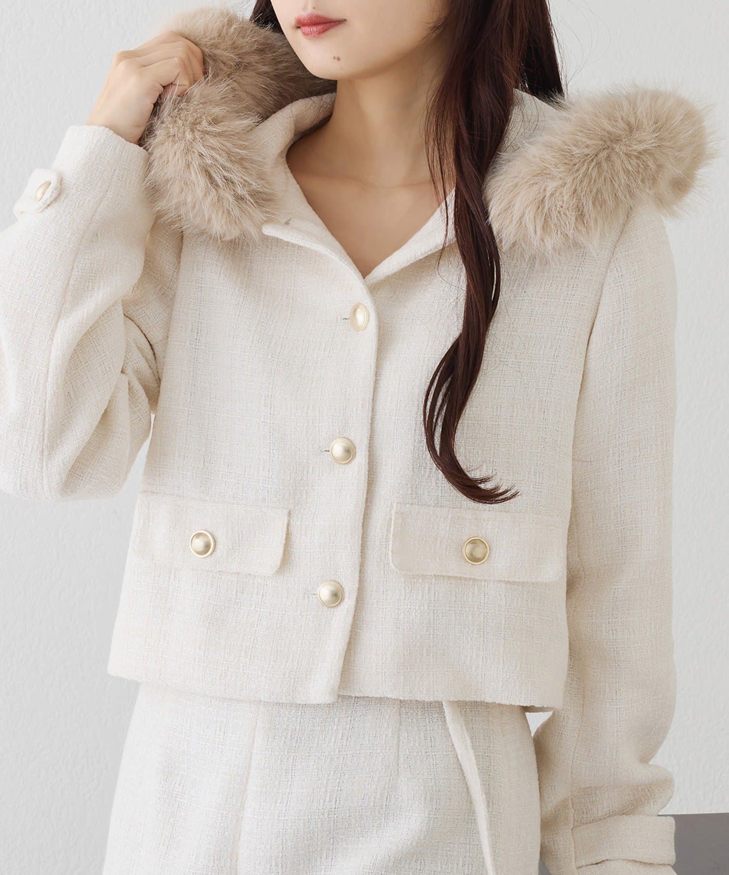 フェイクファーフード付きツイードジャケット【セットアップ可能】