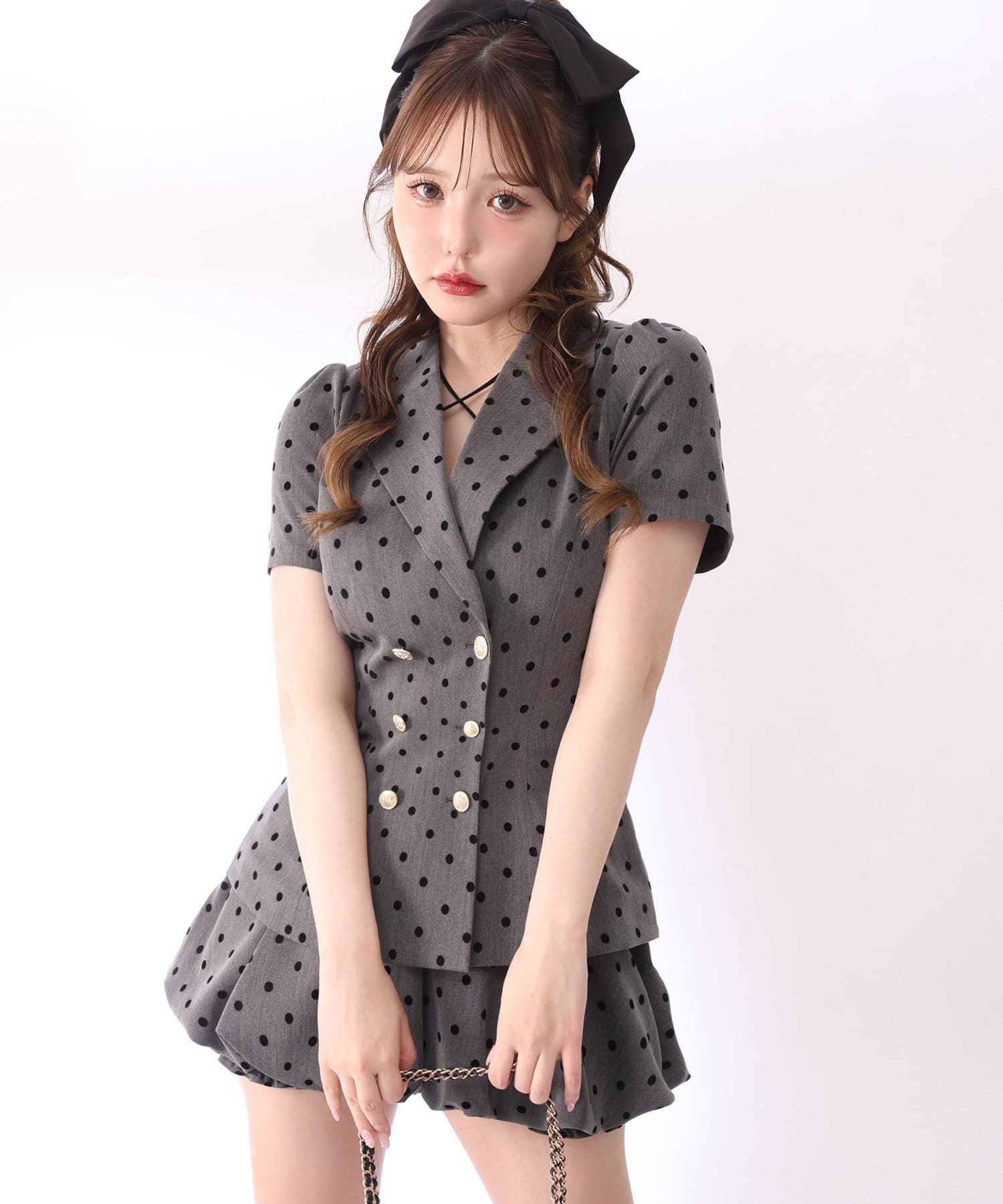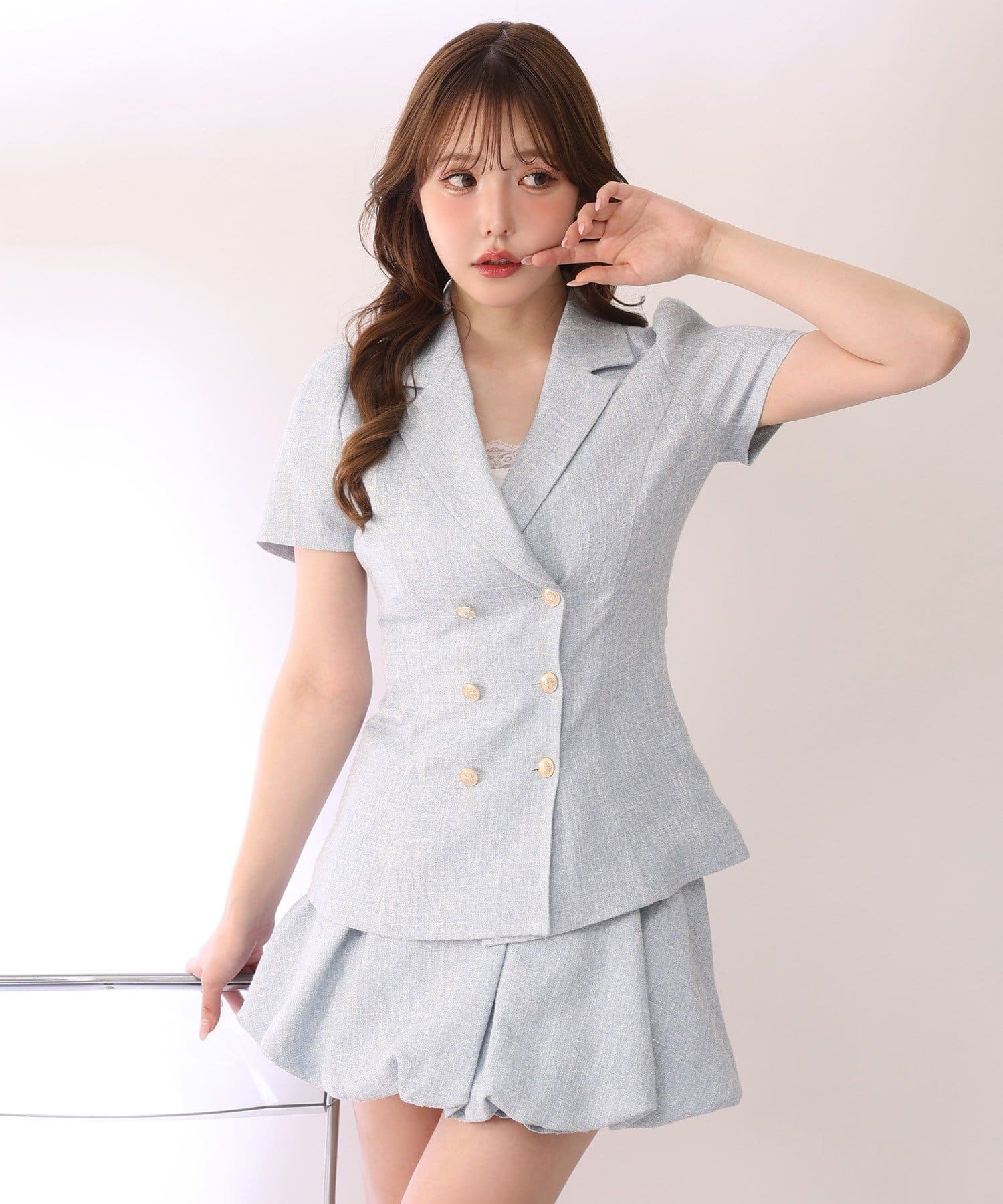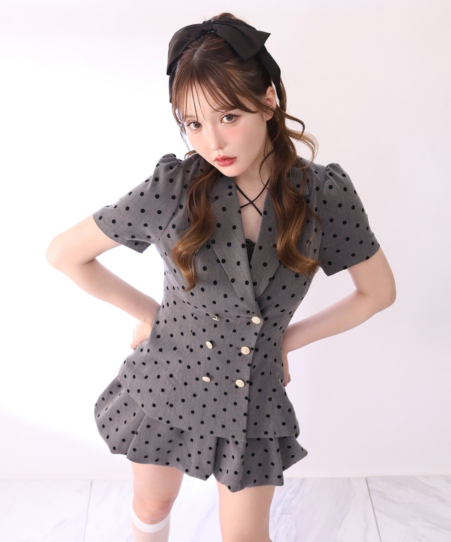 プリーツミニやフレアスカートと合わせてフェミニンに