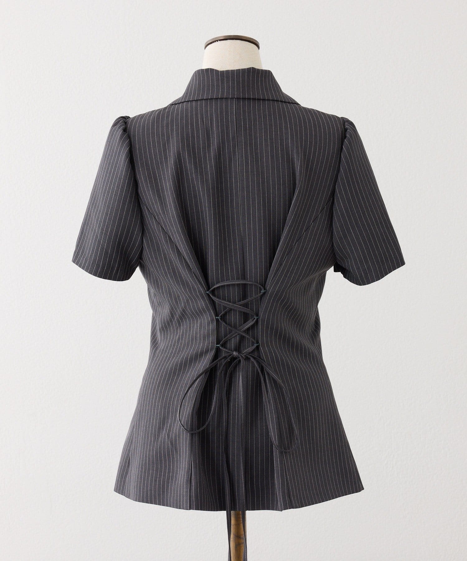 【セットアップ可能】レースアップ半袖ペプラムジャケット/SMサイズ