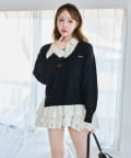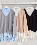 ふんわりニットに、シャツワンピをドッキングしたレイヤード風ミニワンピース。