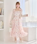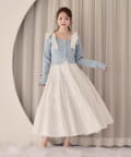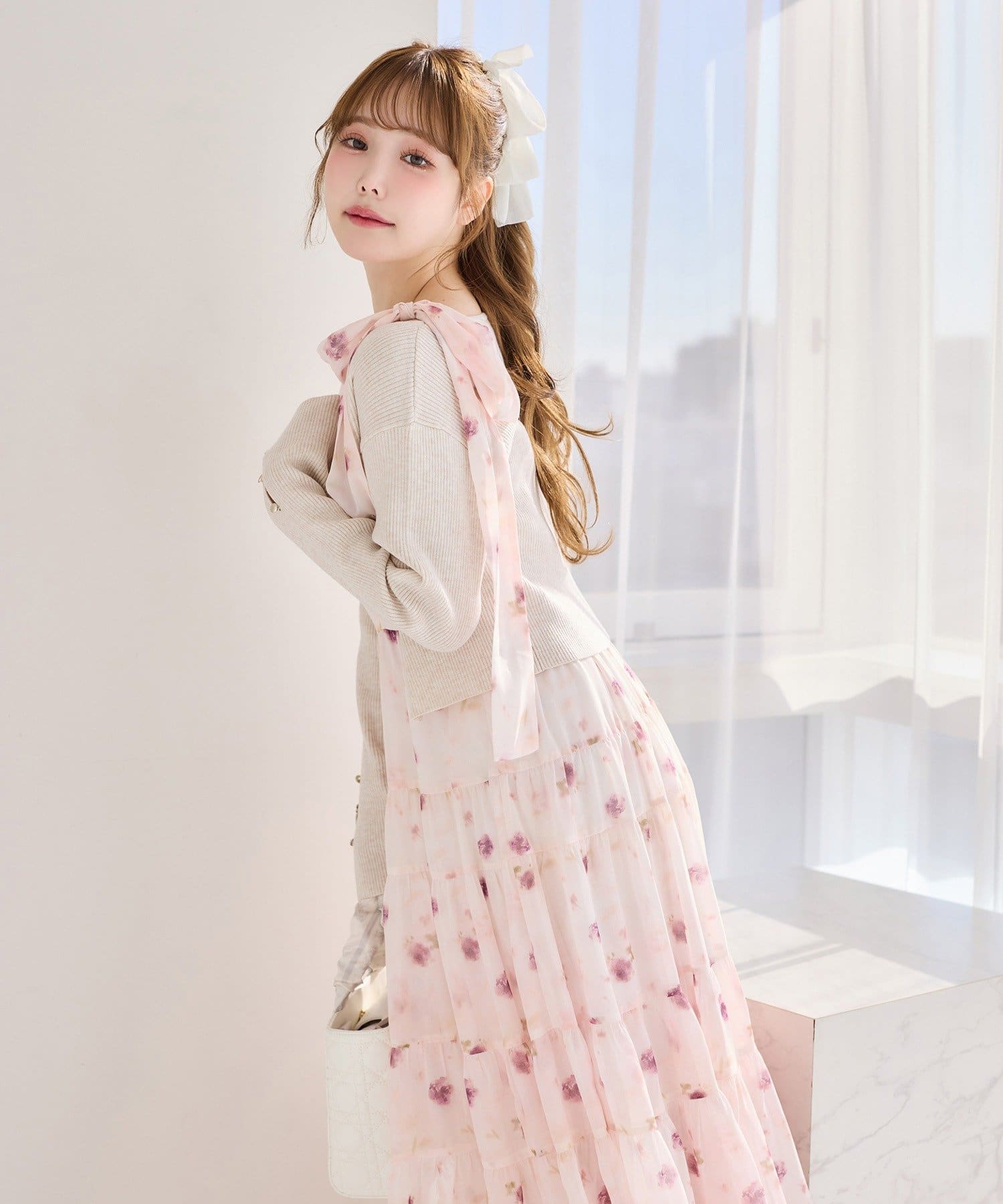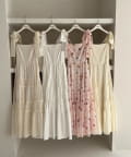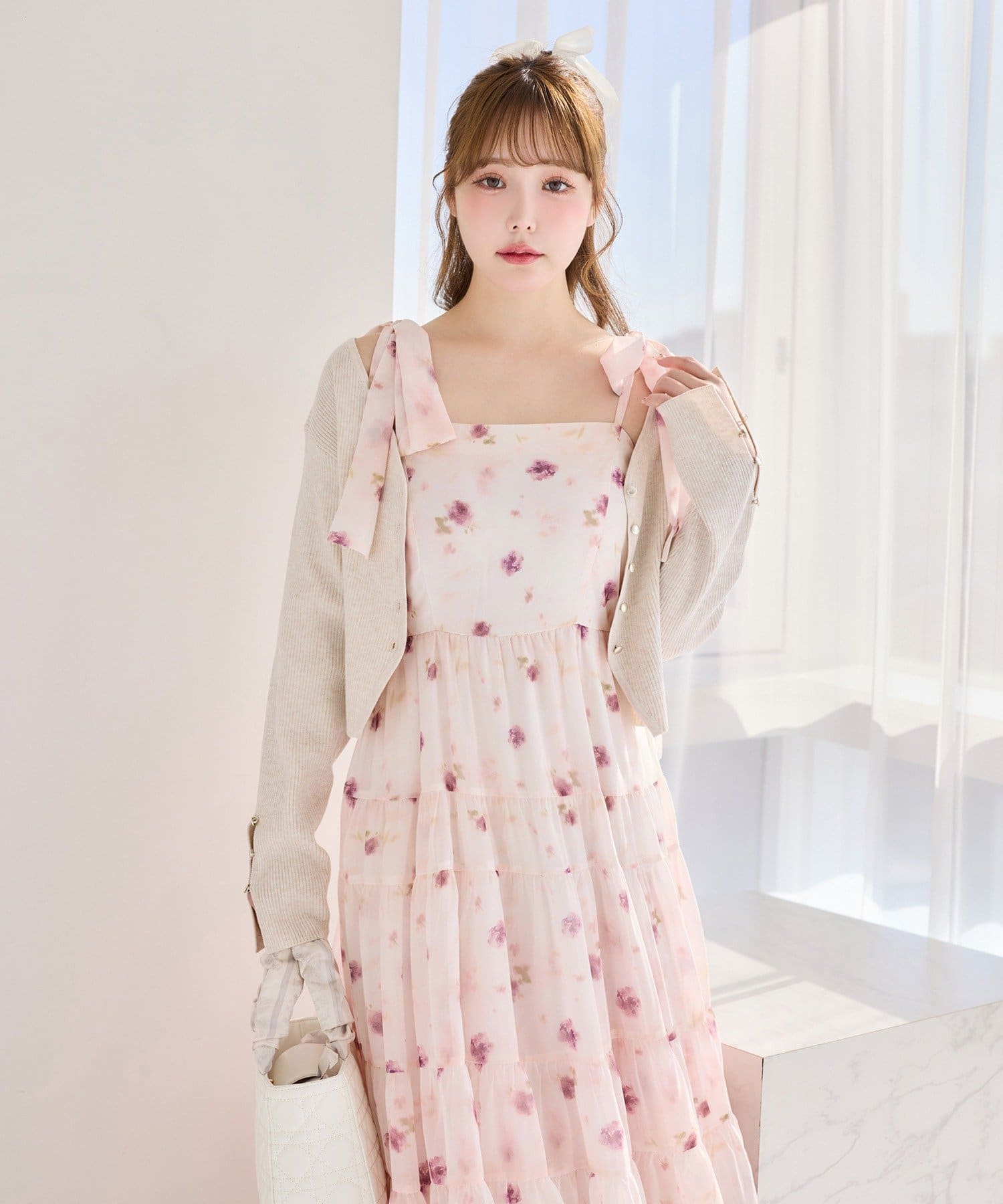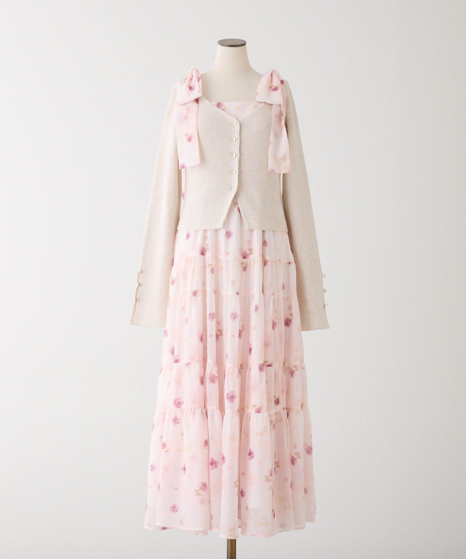 シルエットがきれいなティアードデザインになったキャミワンピースとカーディガンのセットアイテム。