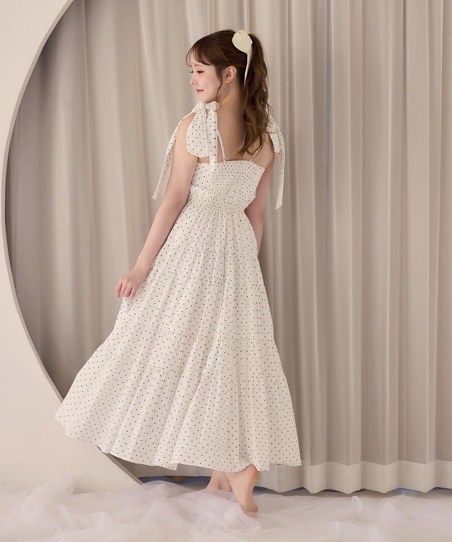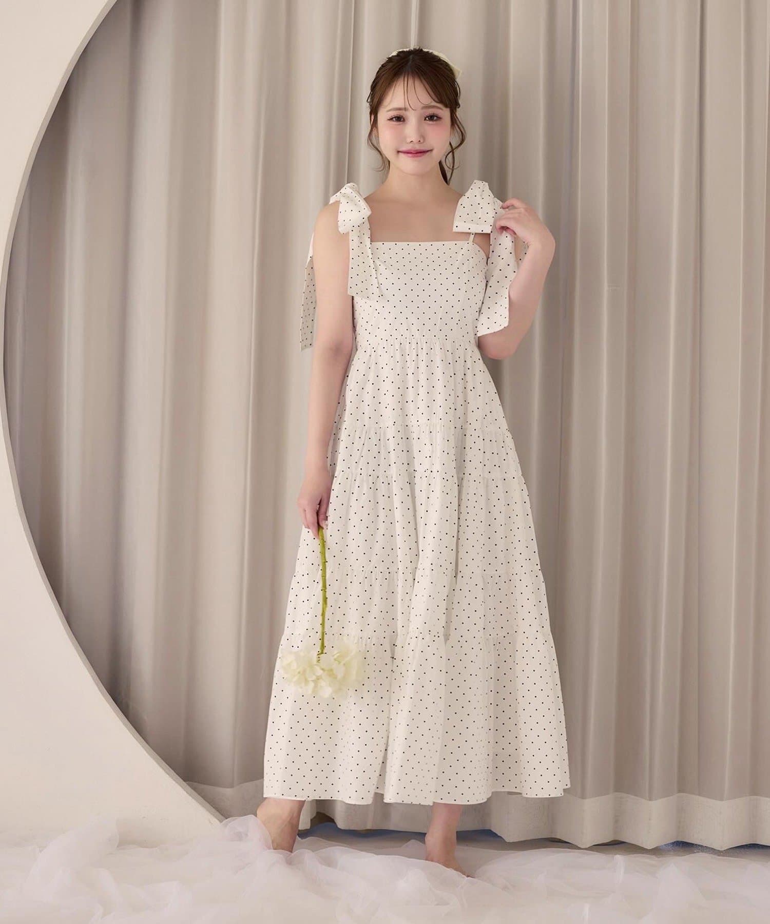 キャミワンピは肩リボンが取り外し可能。肩ストラップもアジャスター付きです。
