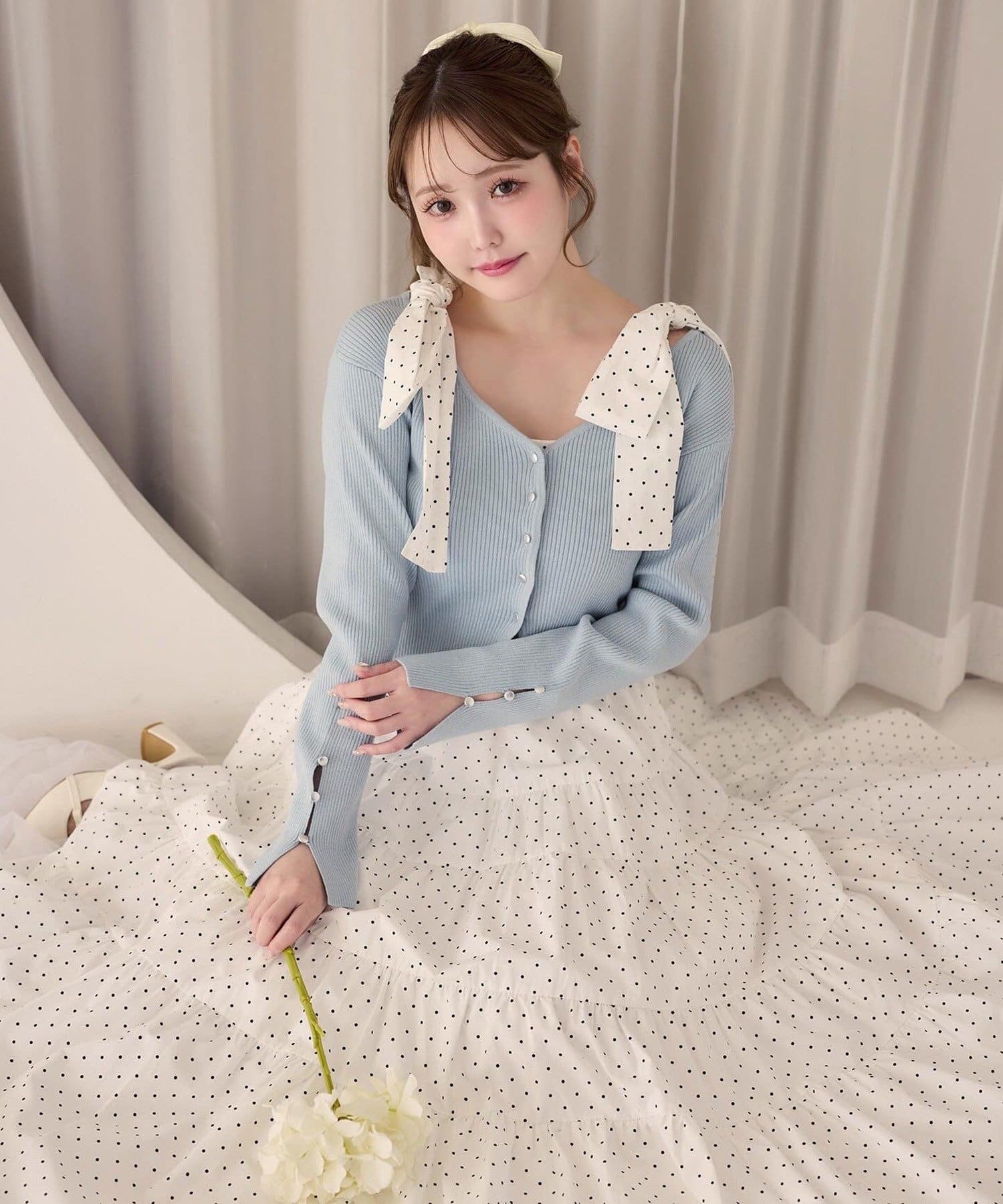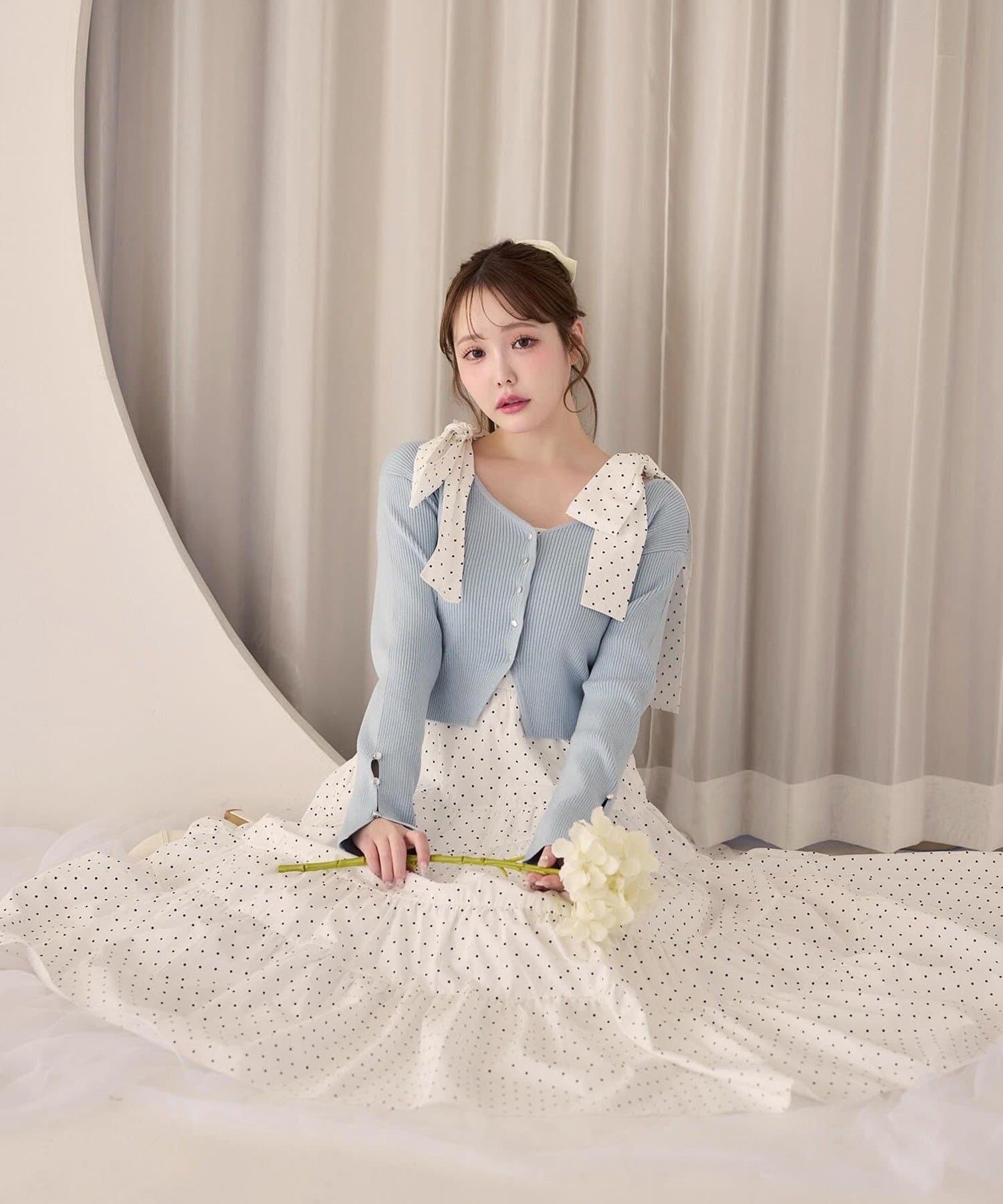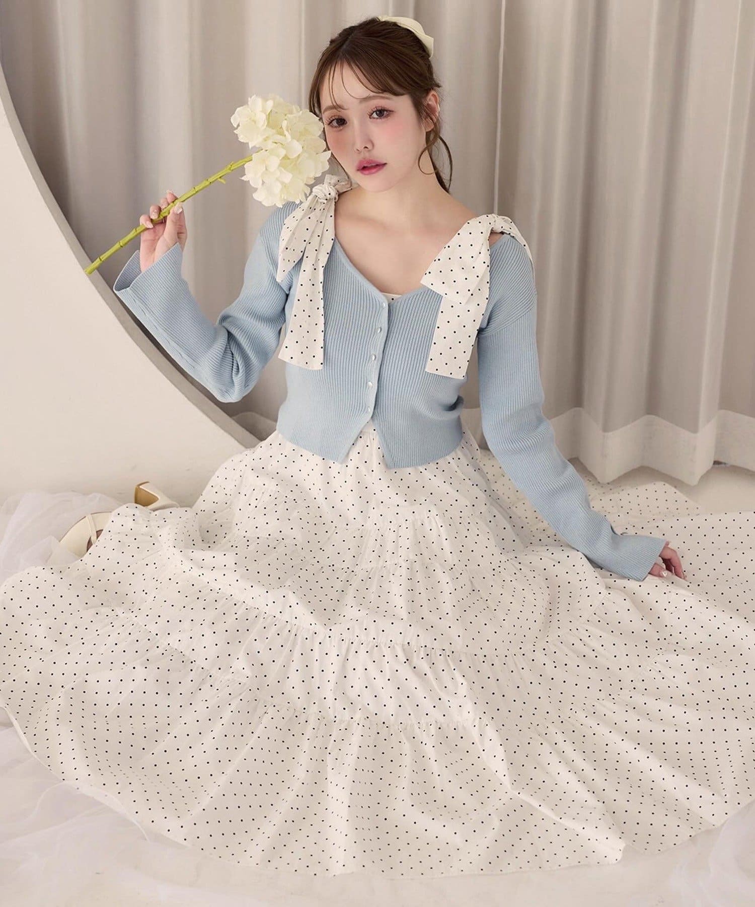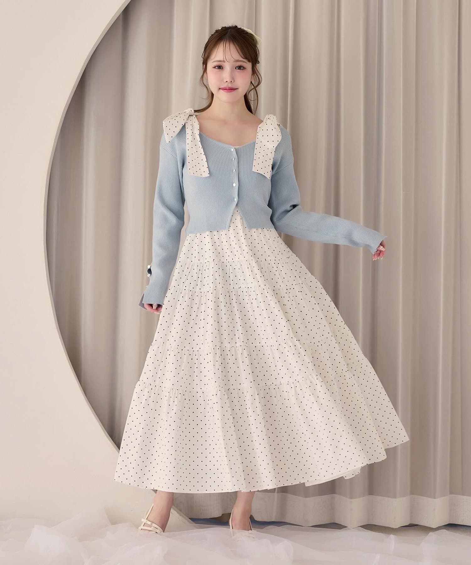 【肩リボン取り外し可能】カーディガンセット2枚セットワンピ