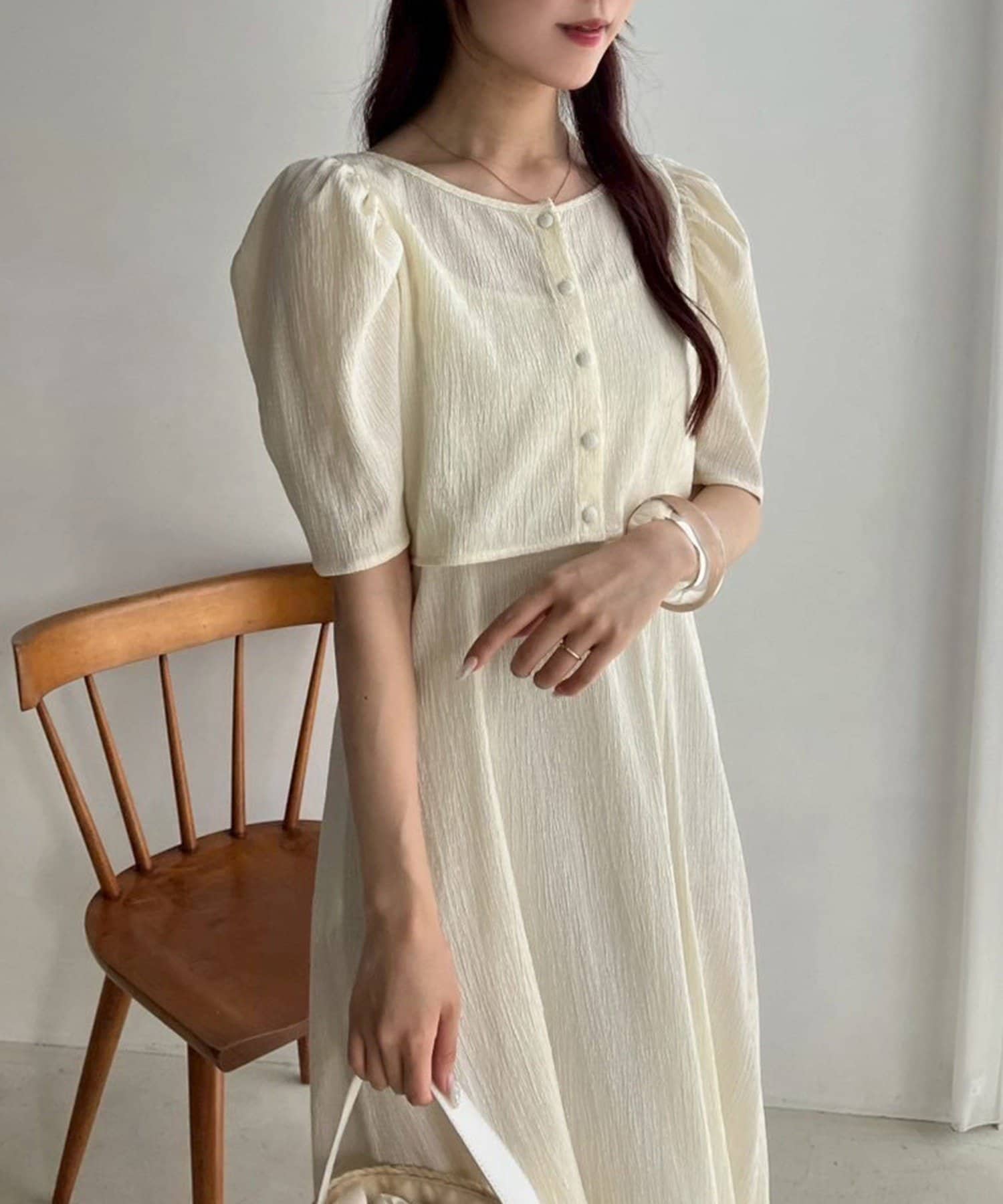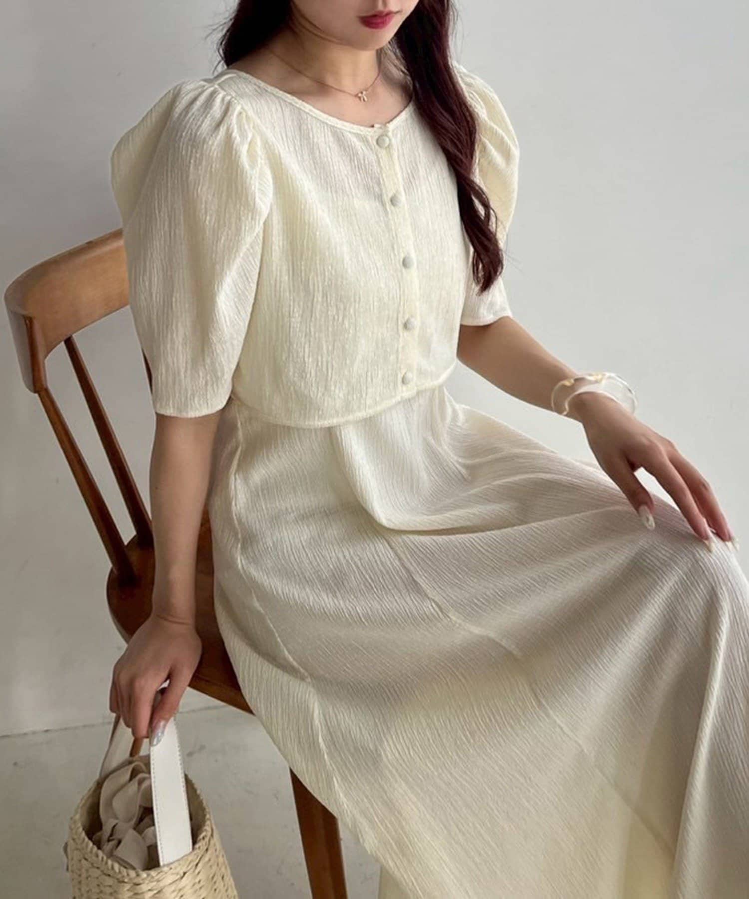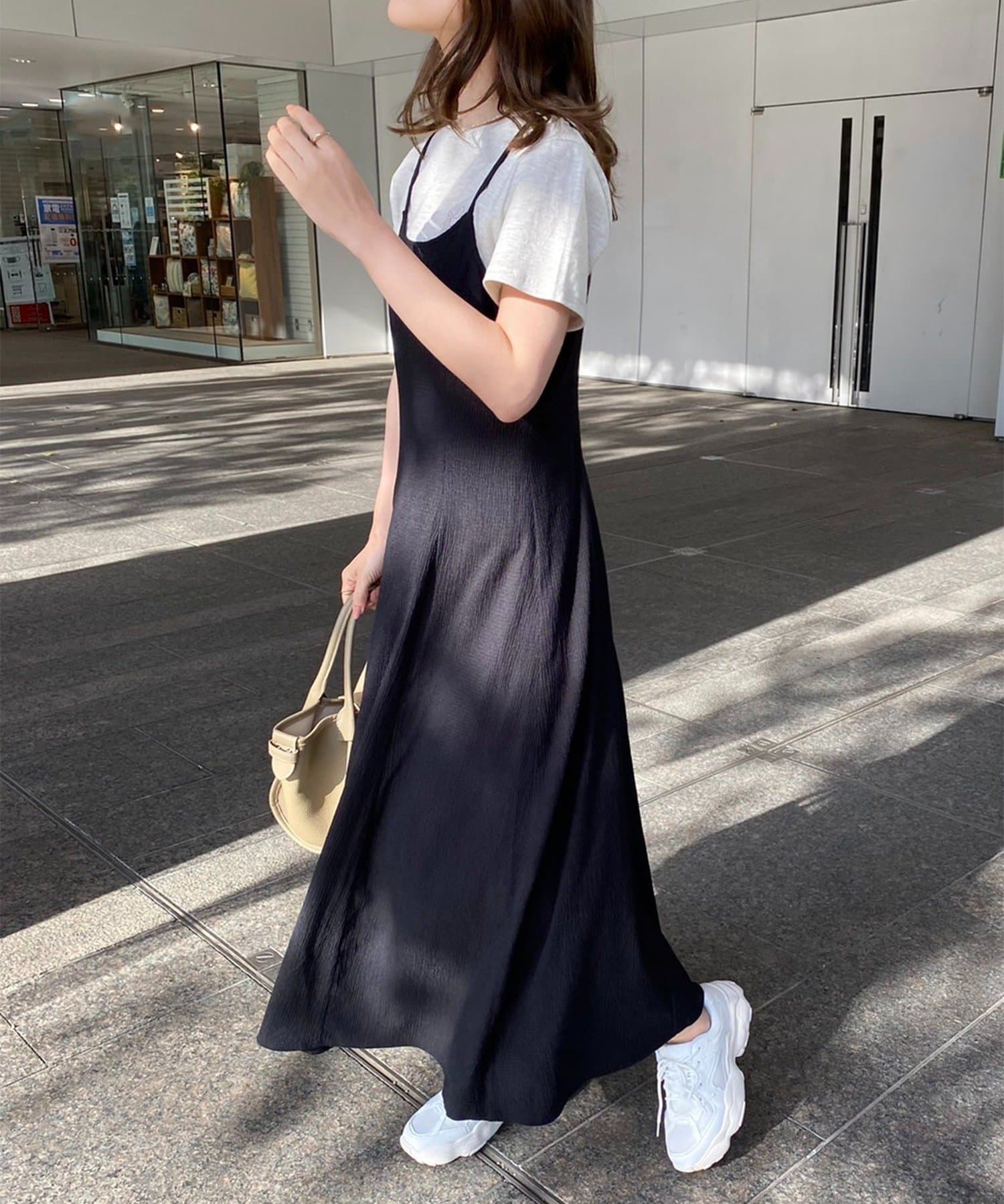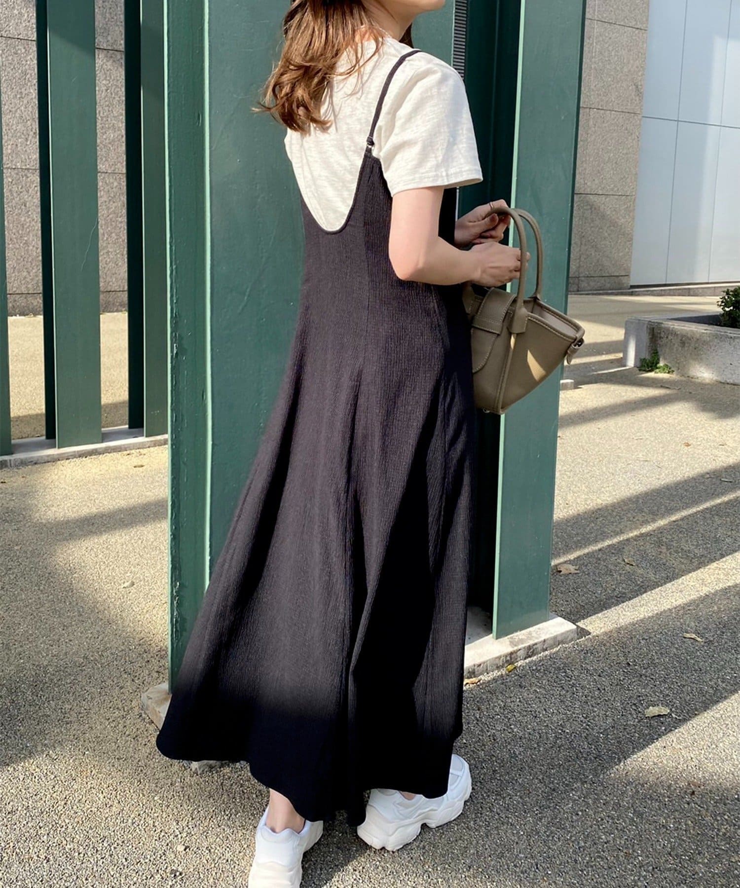 ワンピのみなら、シアートップと合わせた着こなしも◎