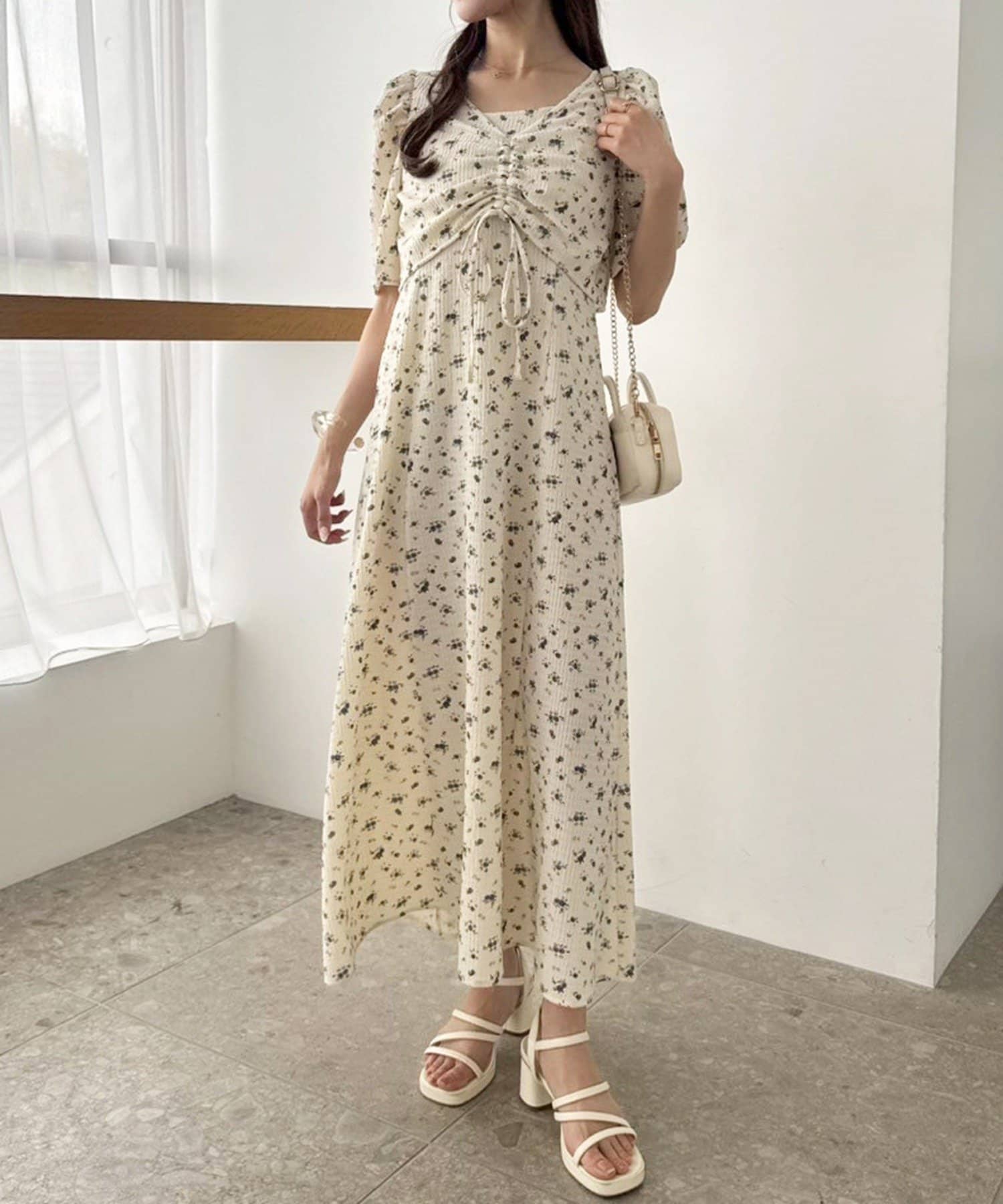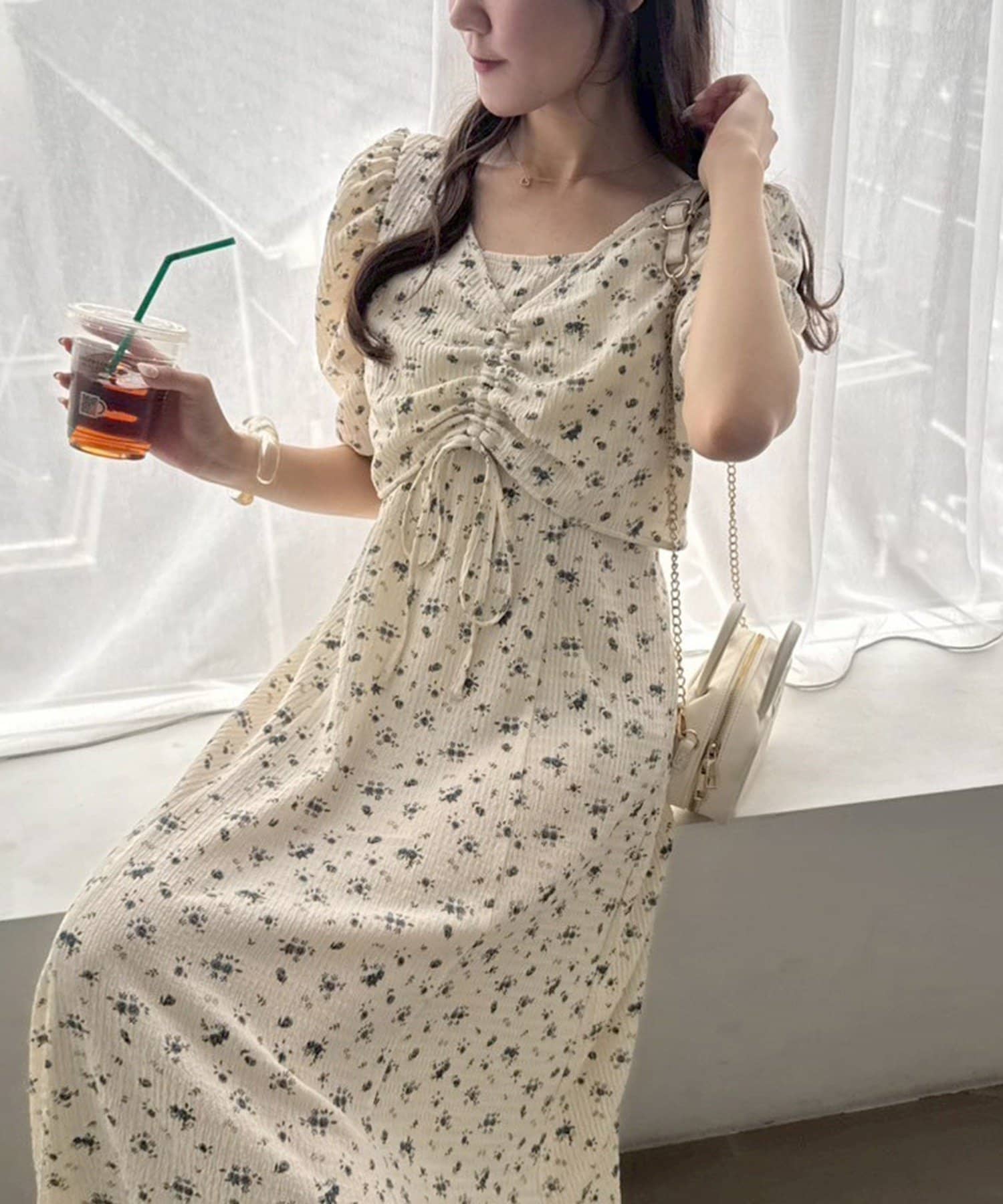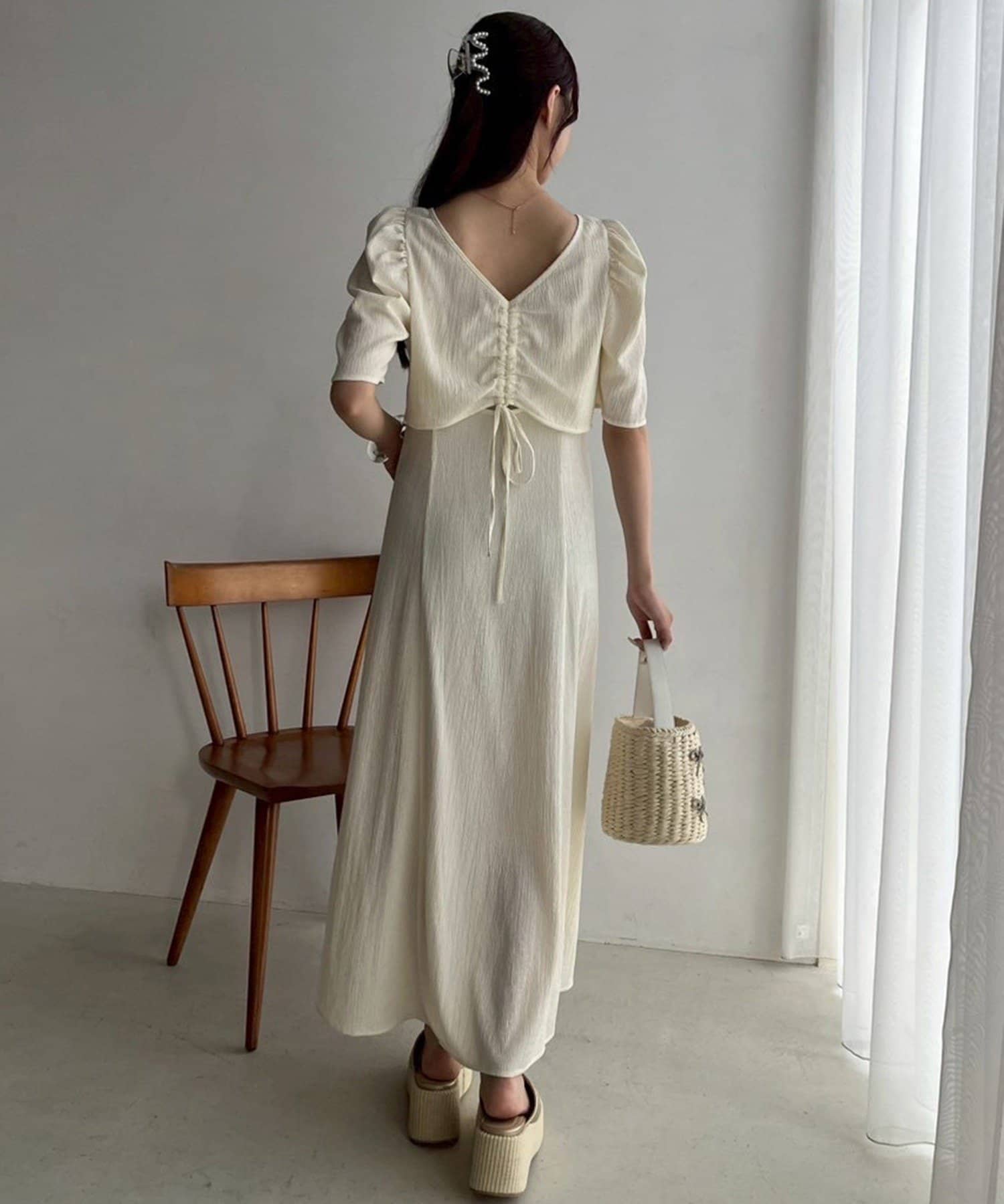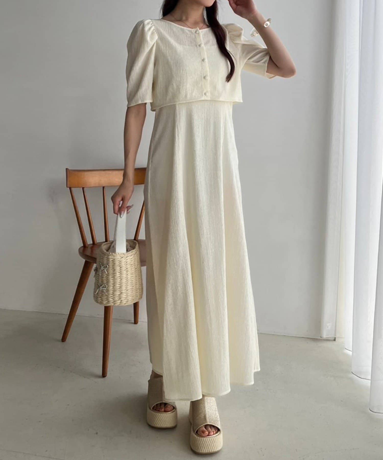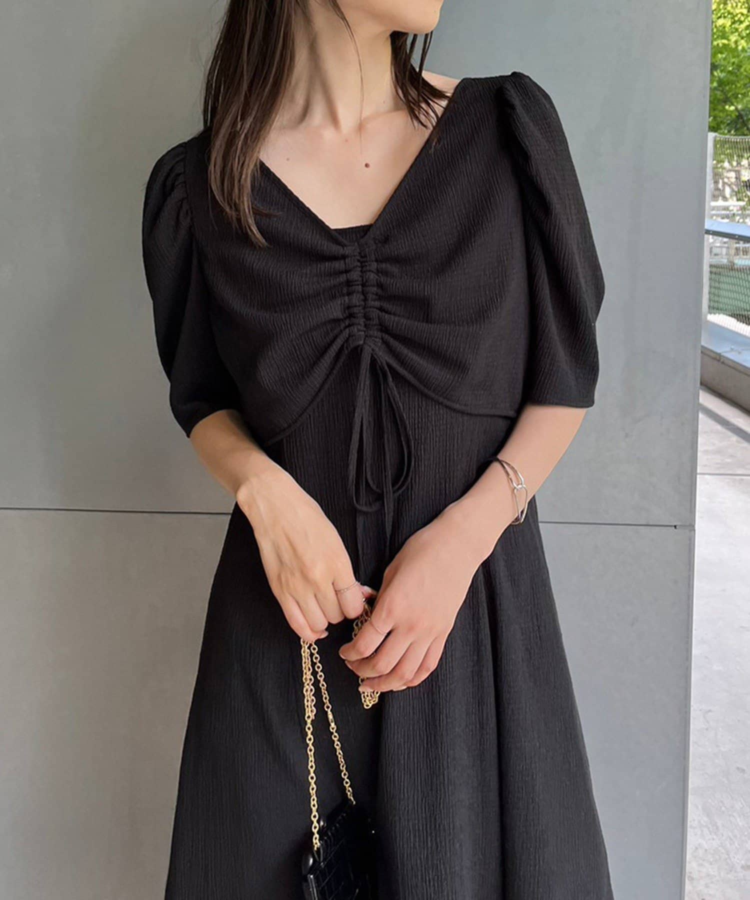 ワンピのみなら、シアートップと合わせた着こなしも◎