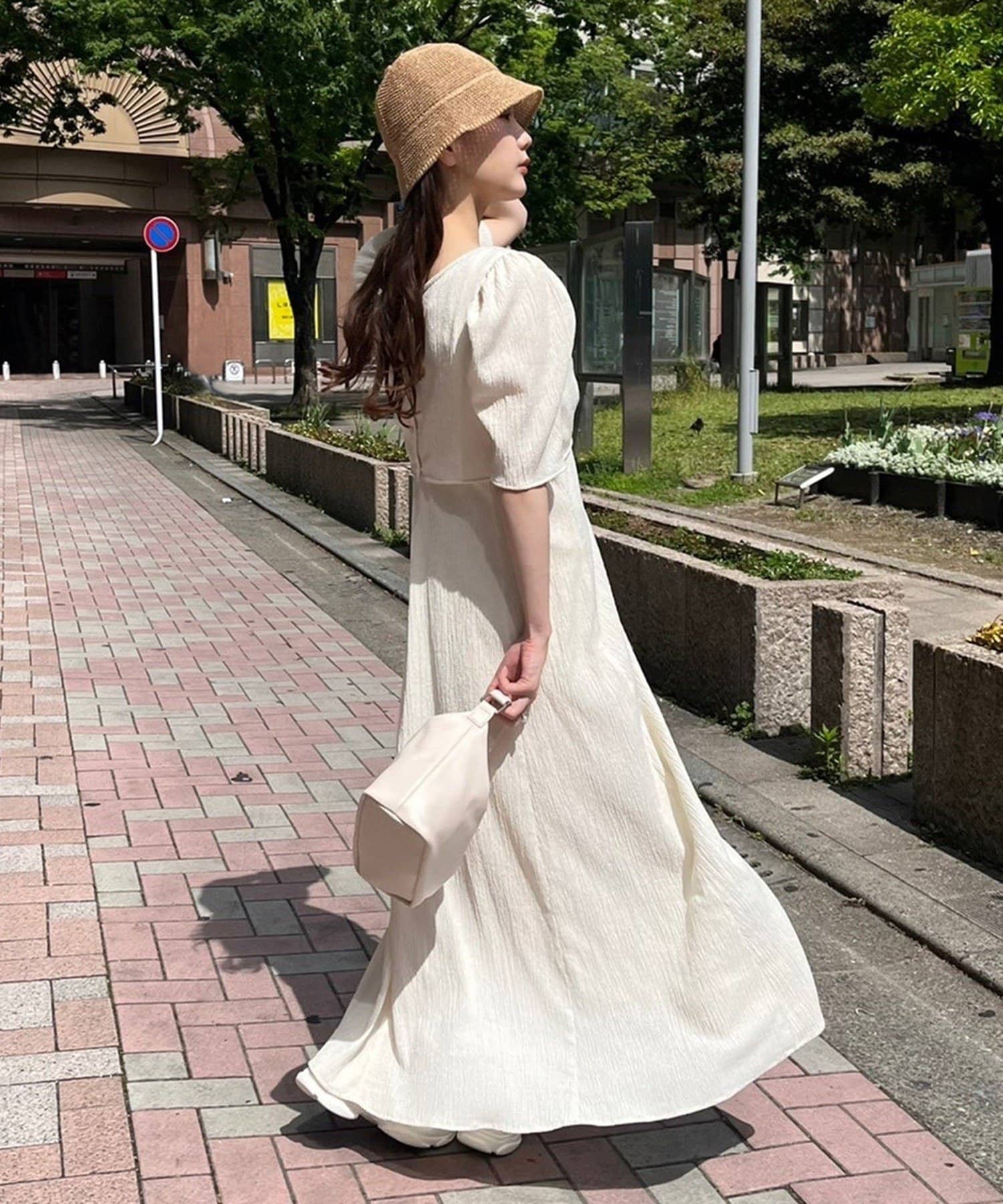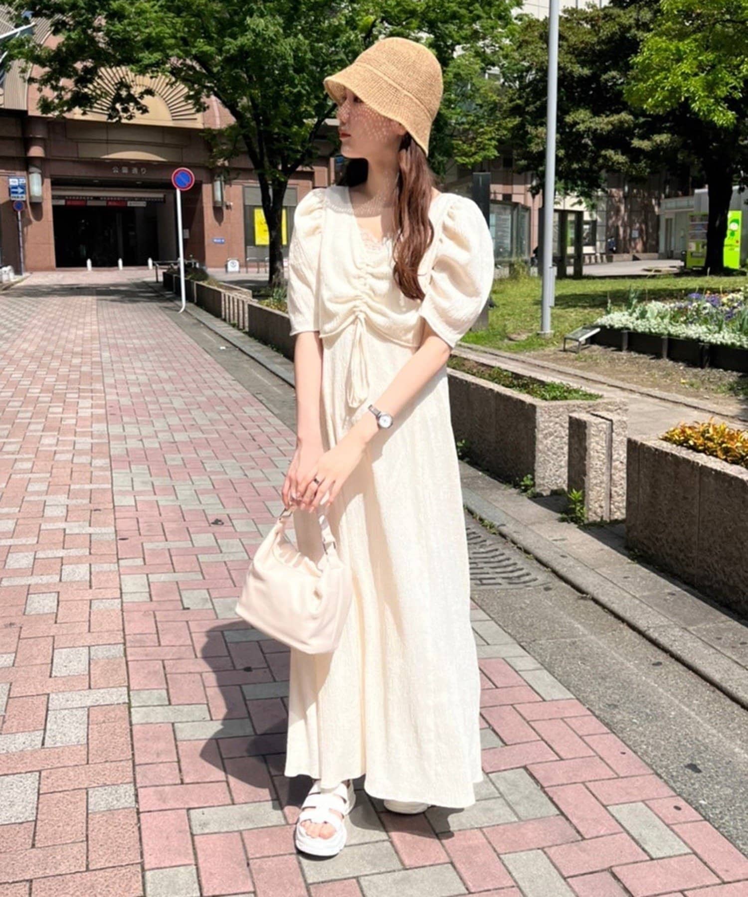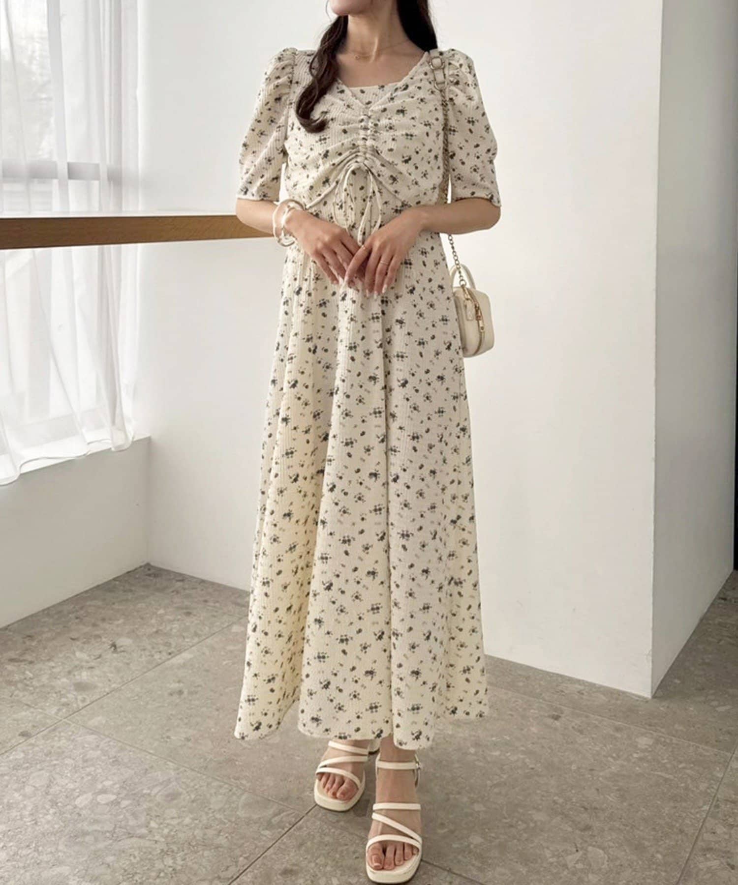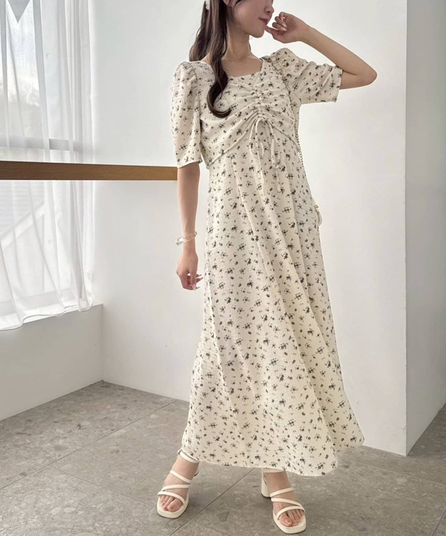 ワンピのみなら、シアートップと合わせた着こなしも◎