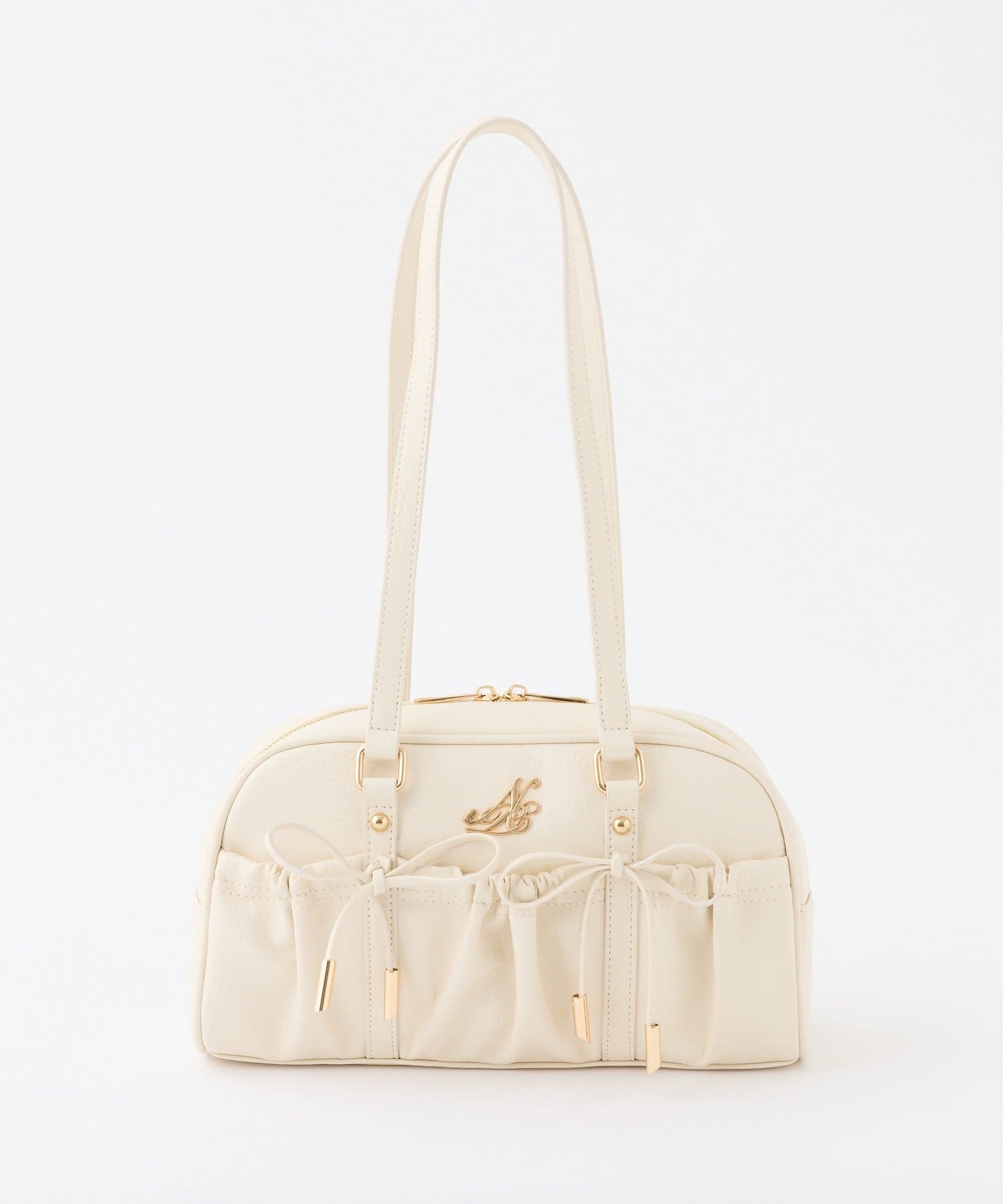 フロントのリボンがポイントのボストンバッグ