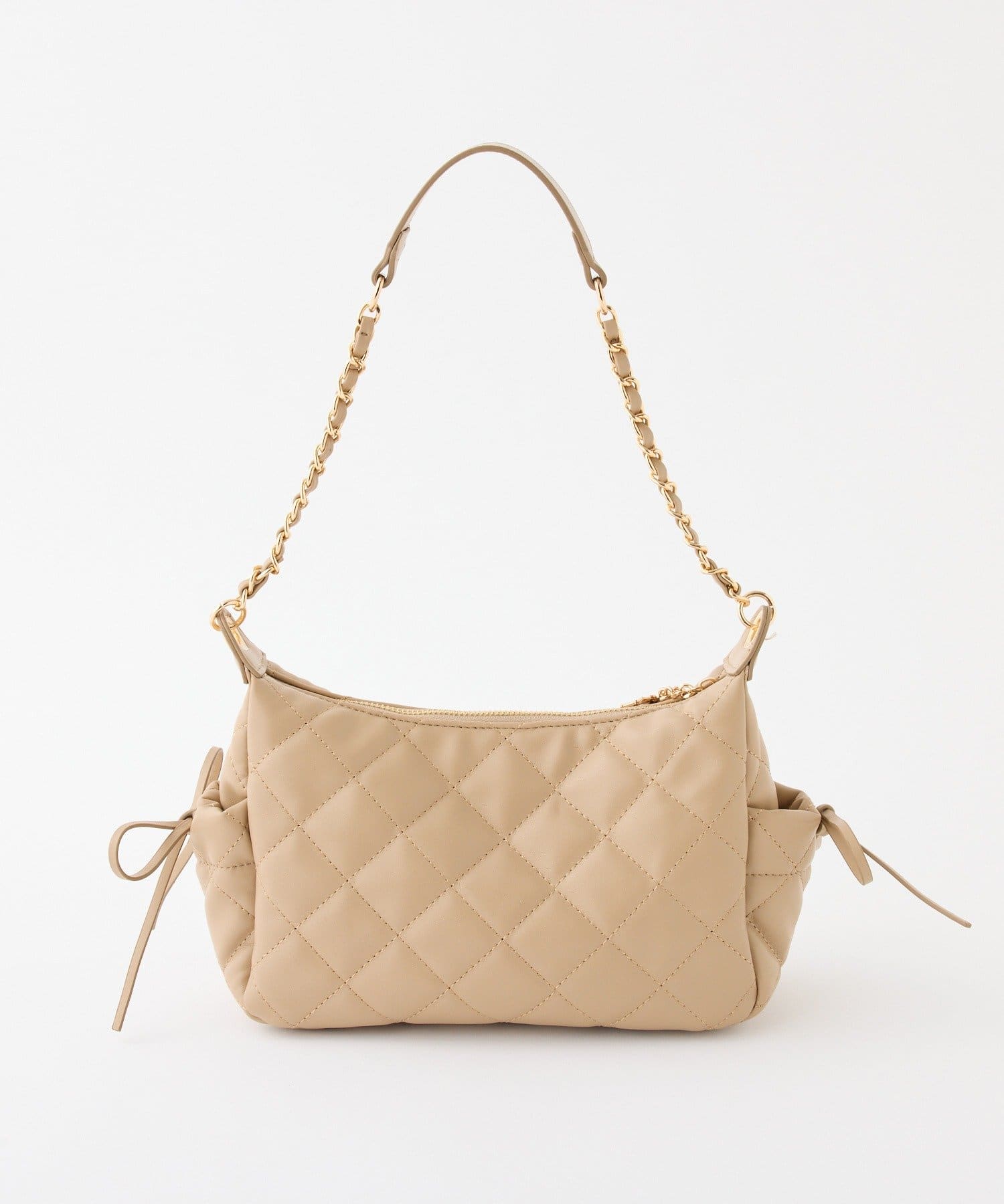 チェーン×フェイクレザーのショルダーで、上品さと持ちやすさを両立。