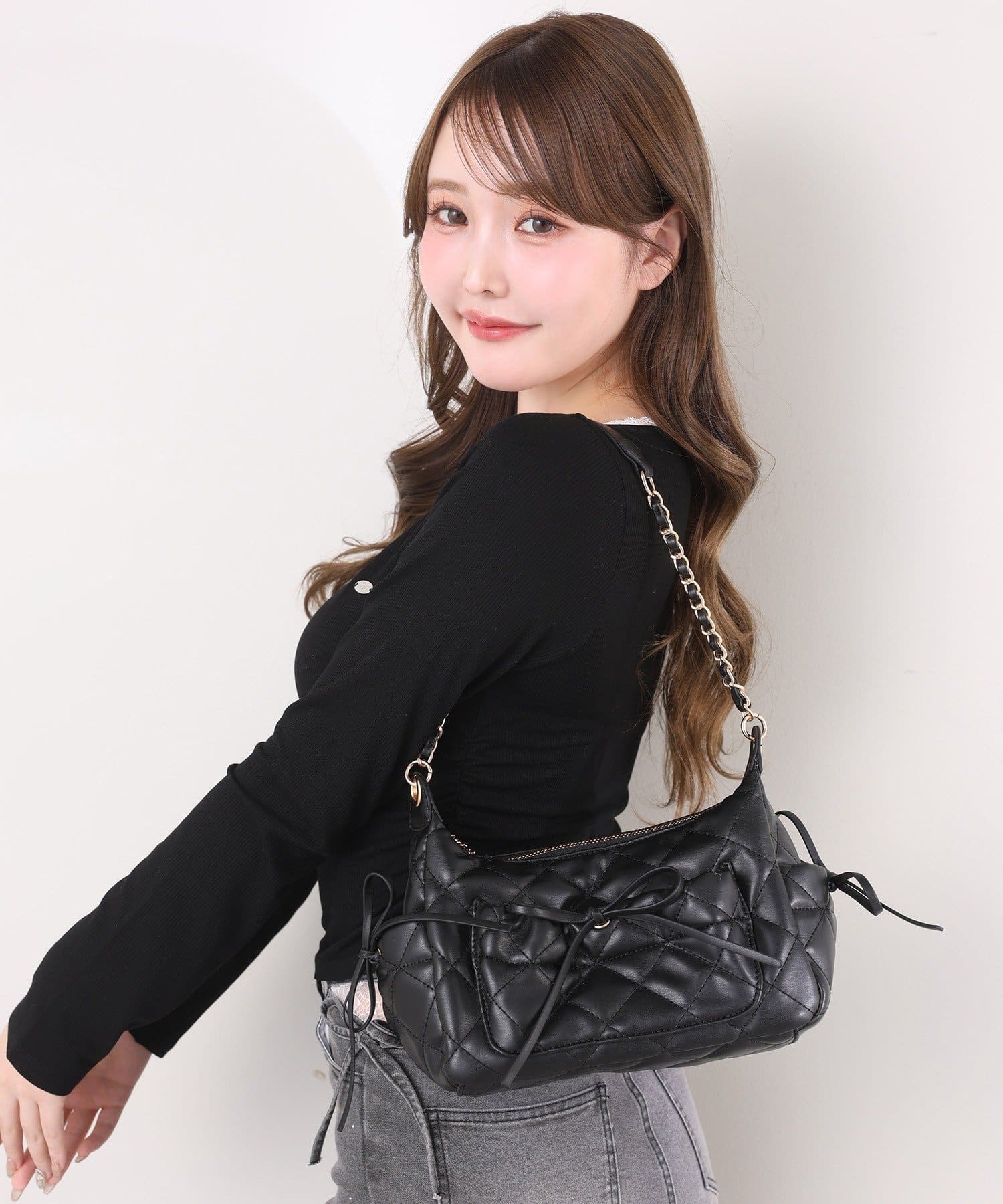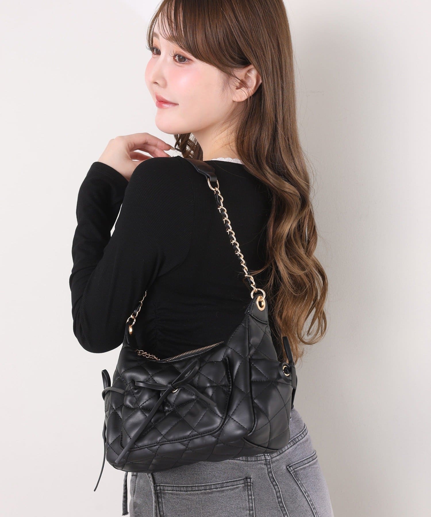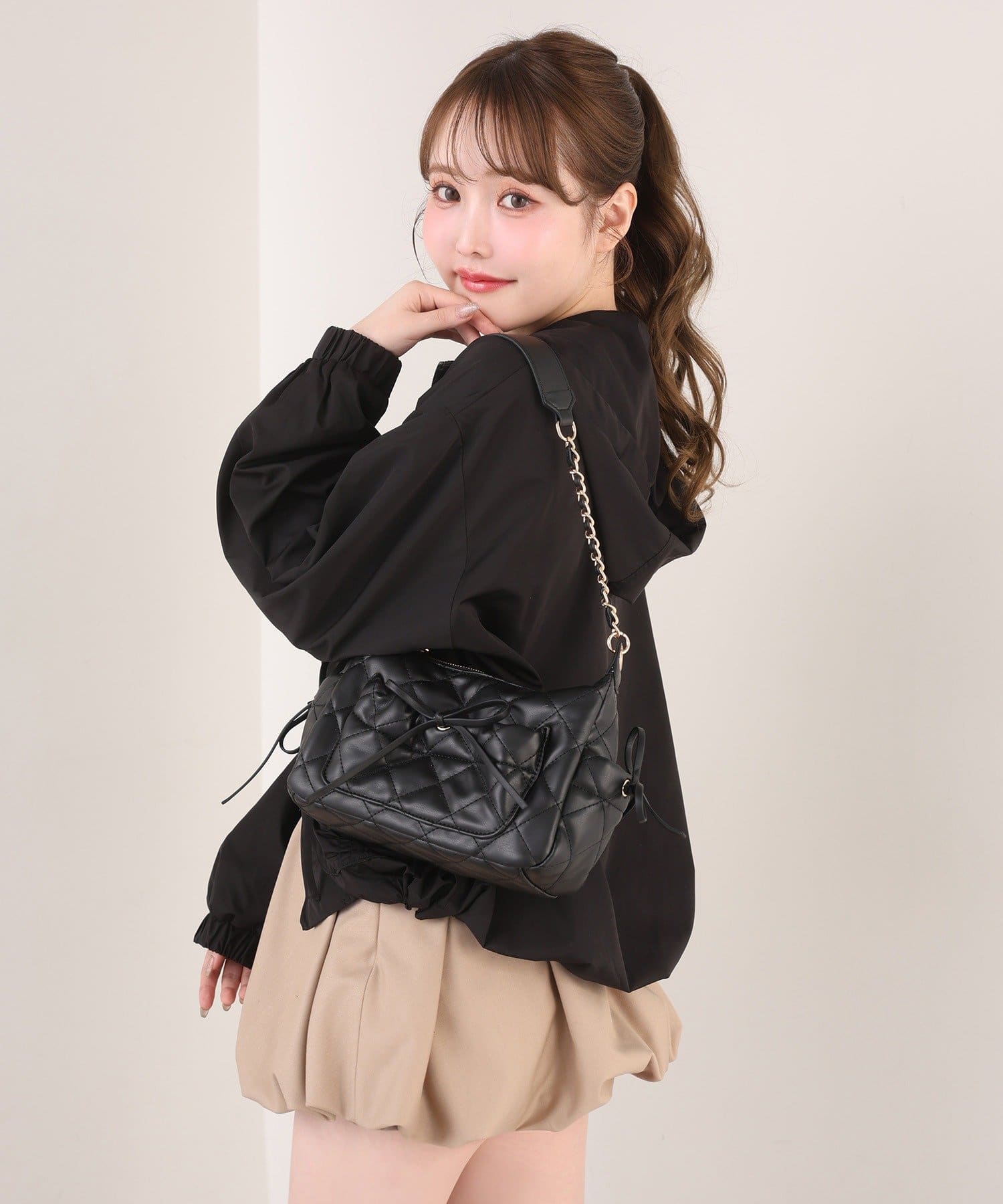 肩掛けでさらっと持つだけで、コーデが華やぐ大人かわいい主役級バッグです。