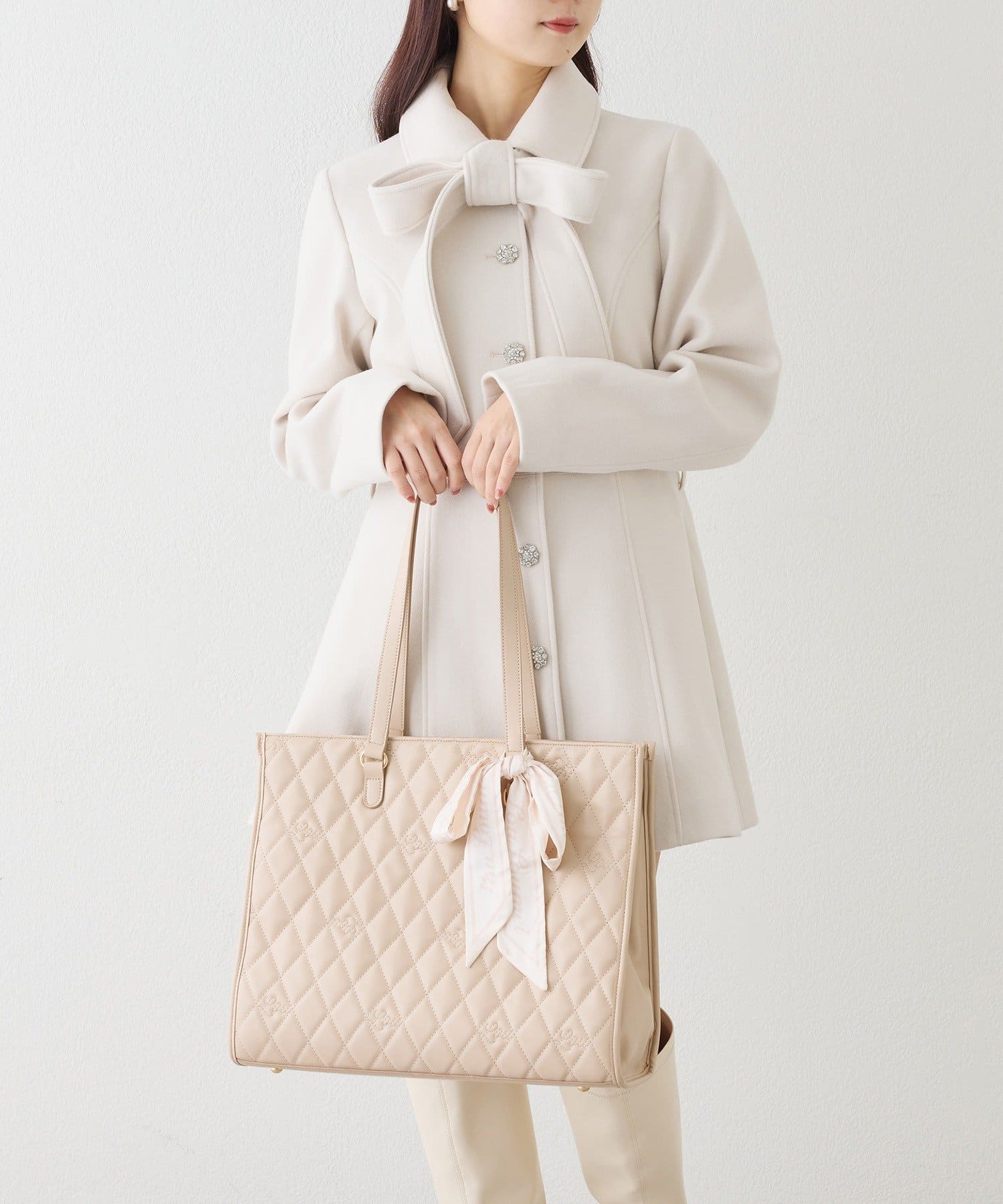 【LouLoumei】スカーフ付きキルティングキャリーオントート/自立可能