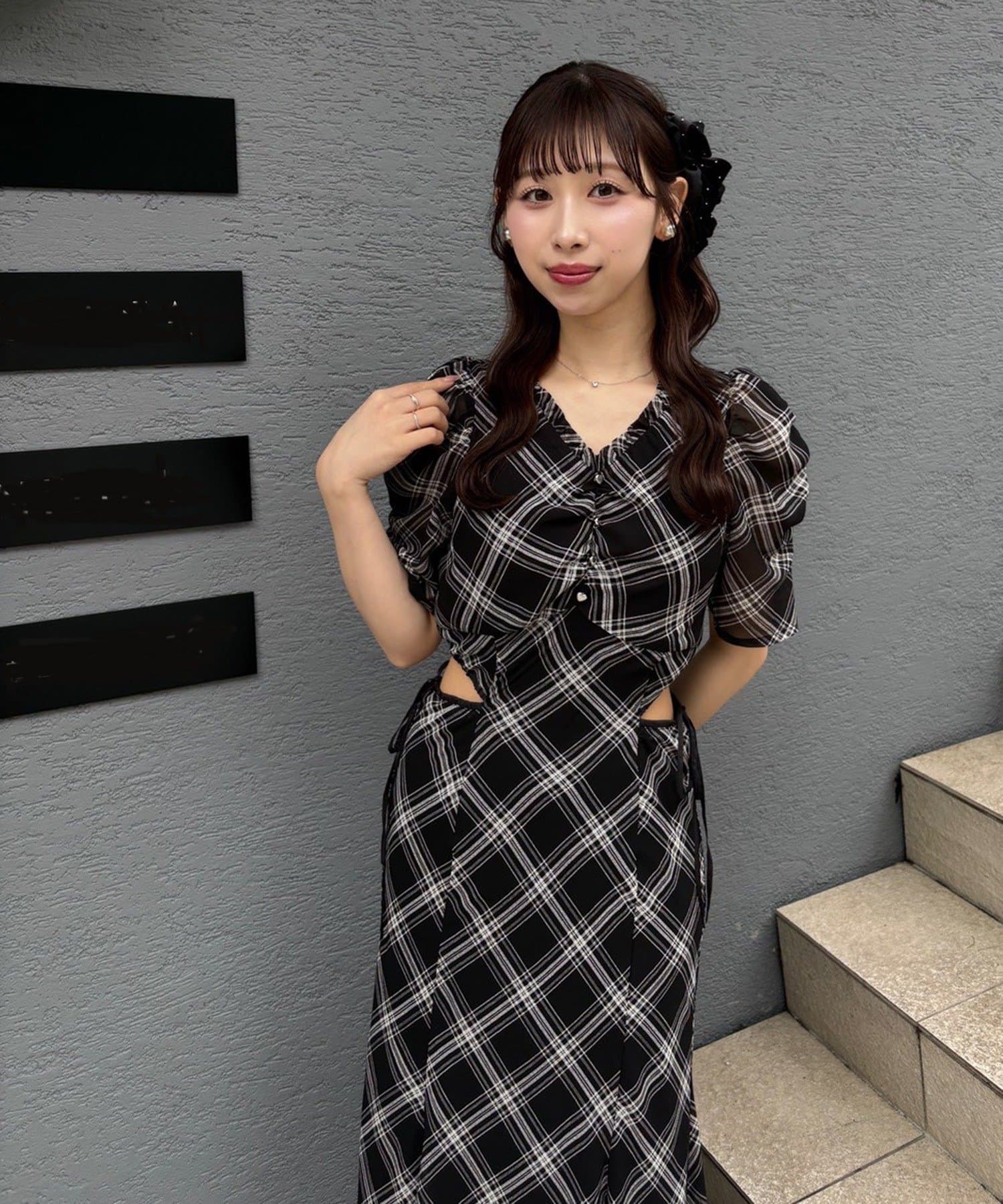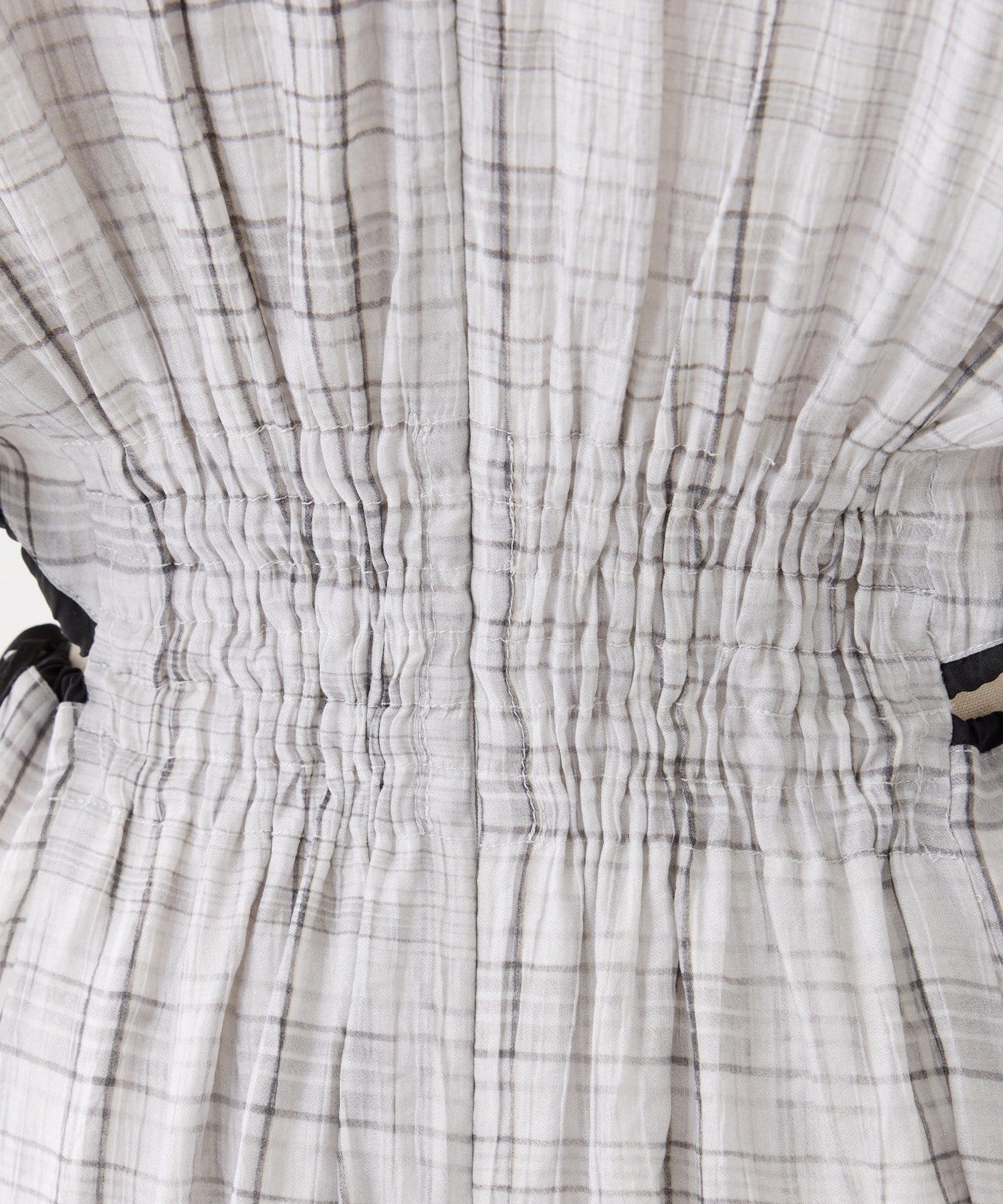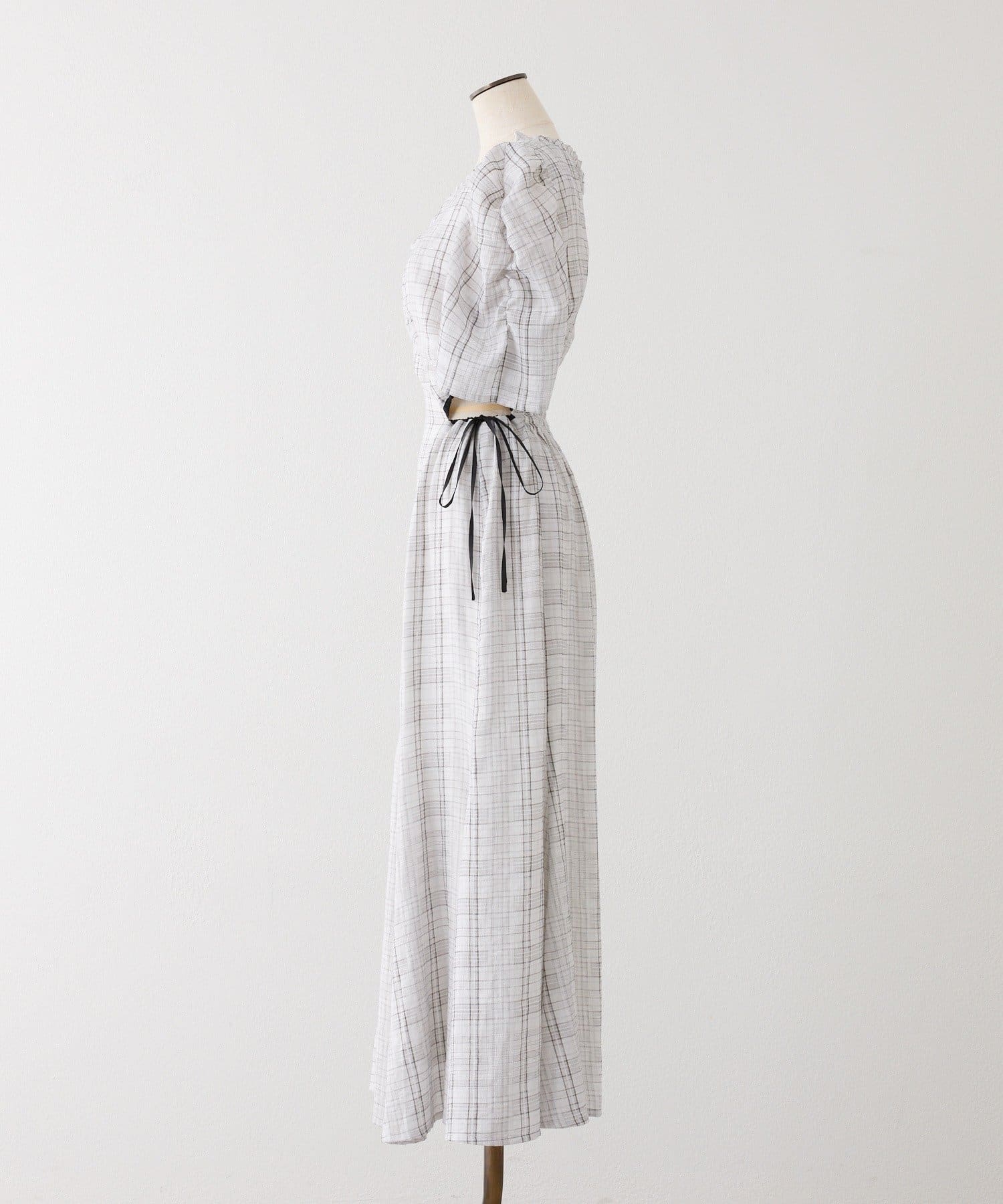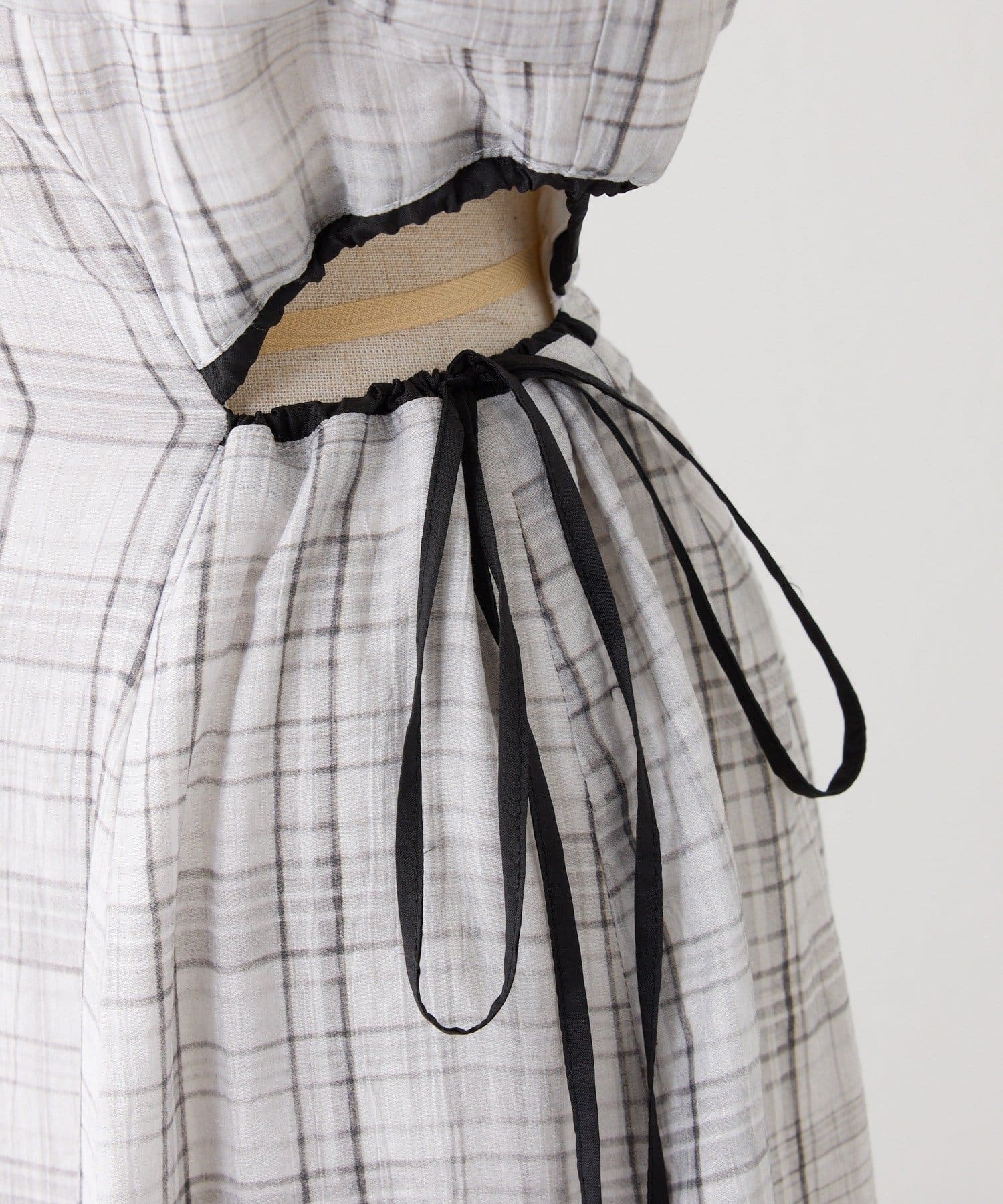 程よい肌見せが叶うウエストカットに、配色リボンをあしらいガーリーなアクセントをプラスしました。