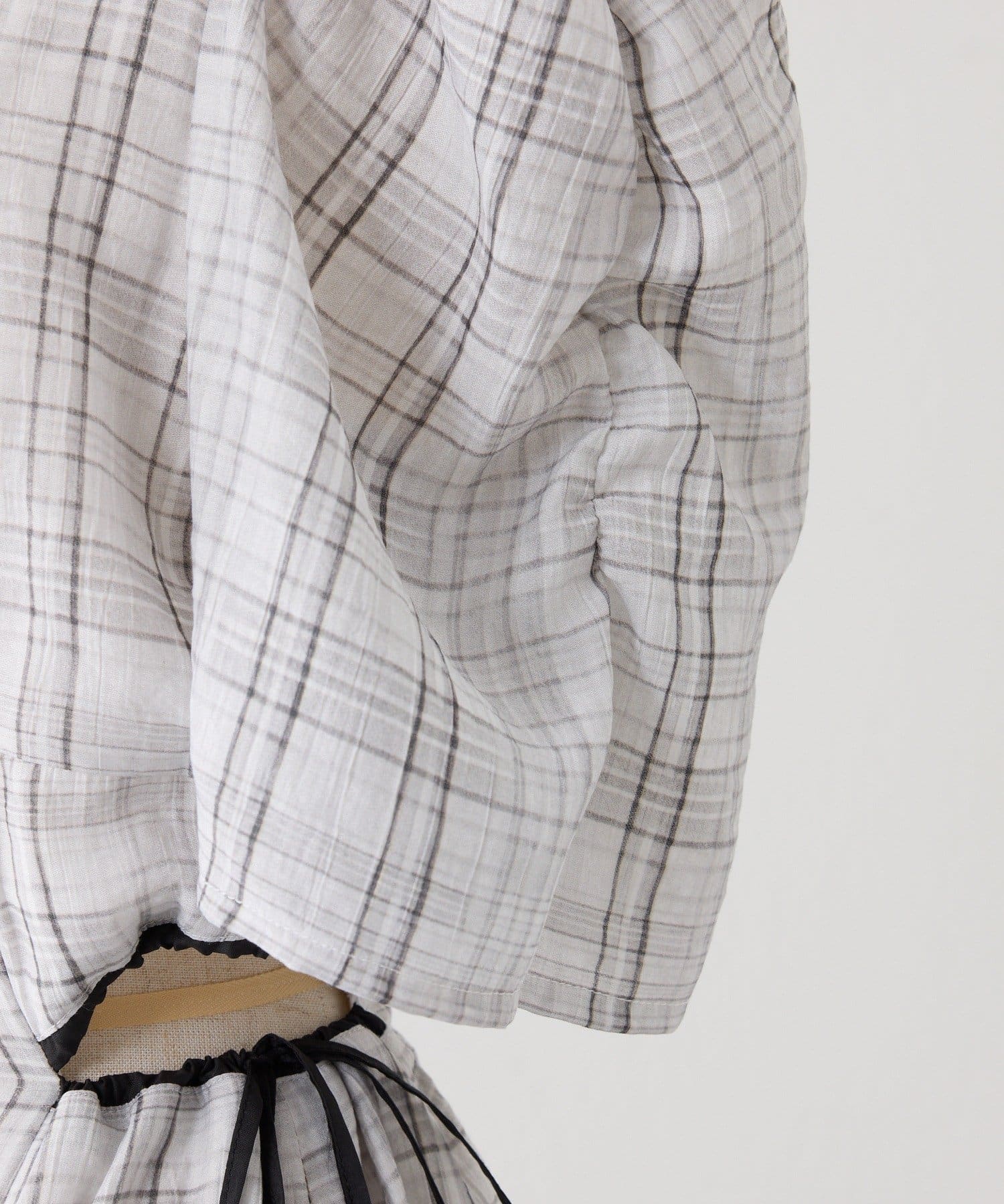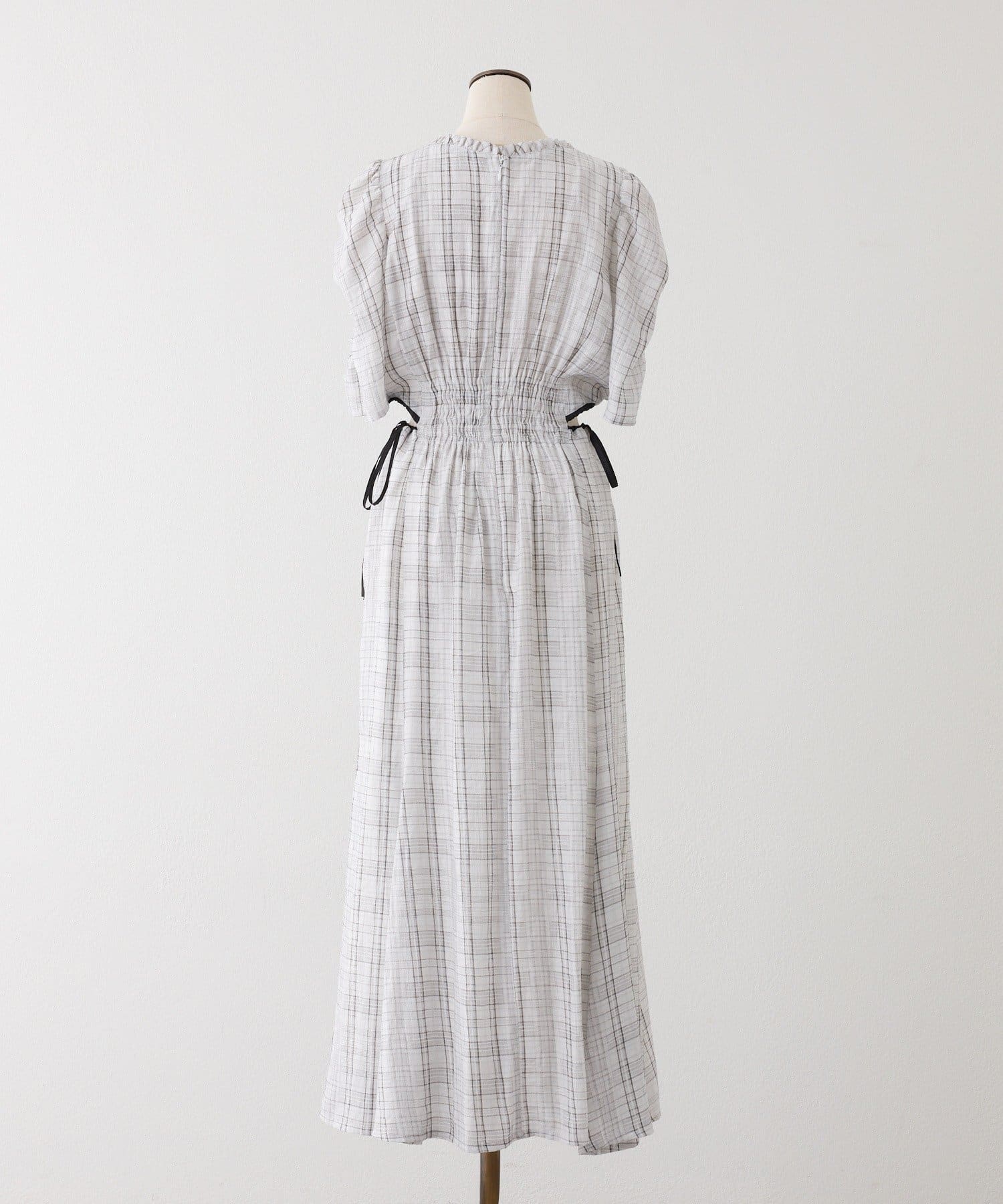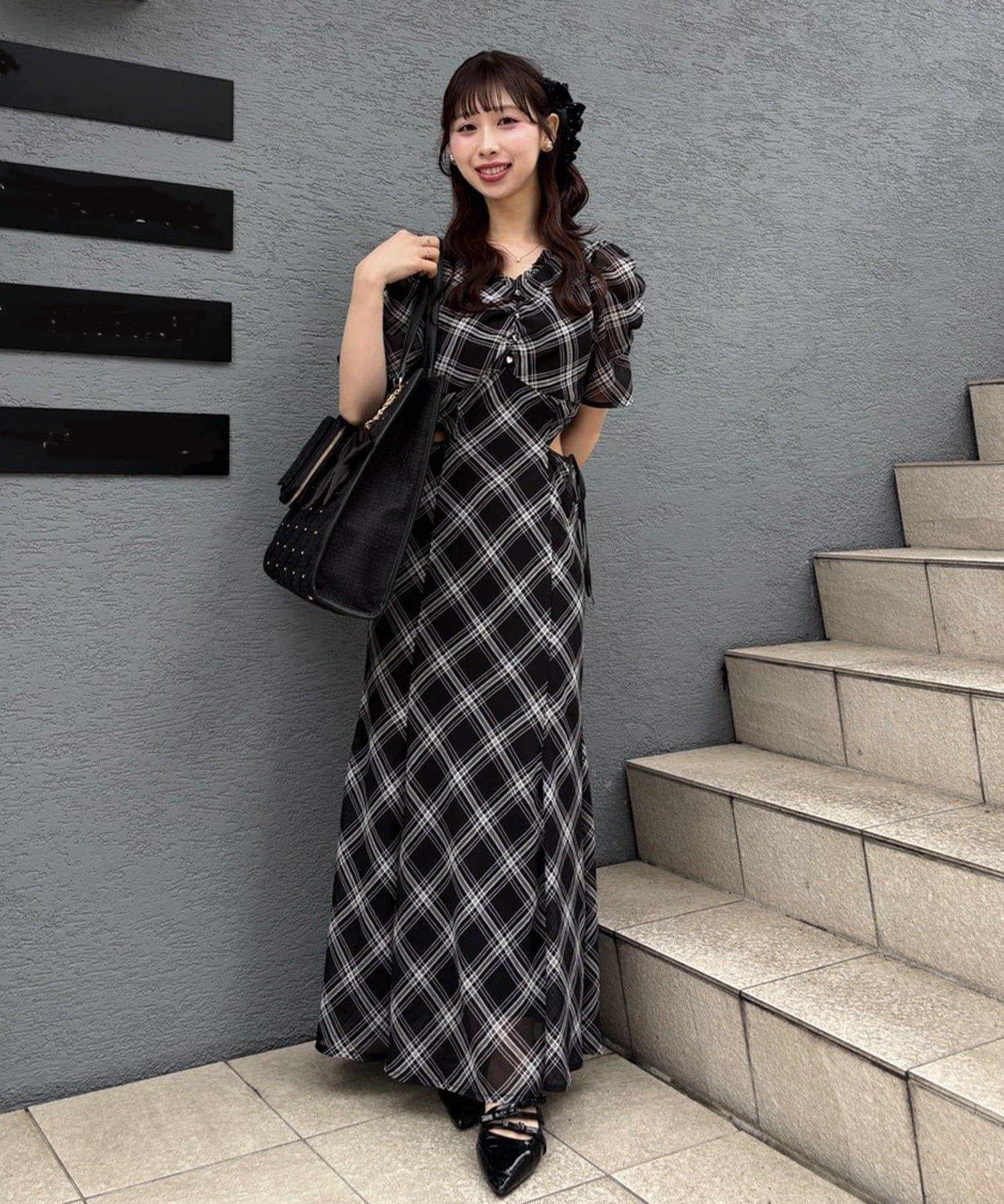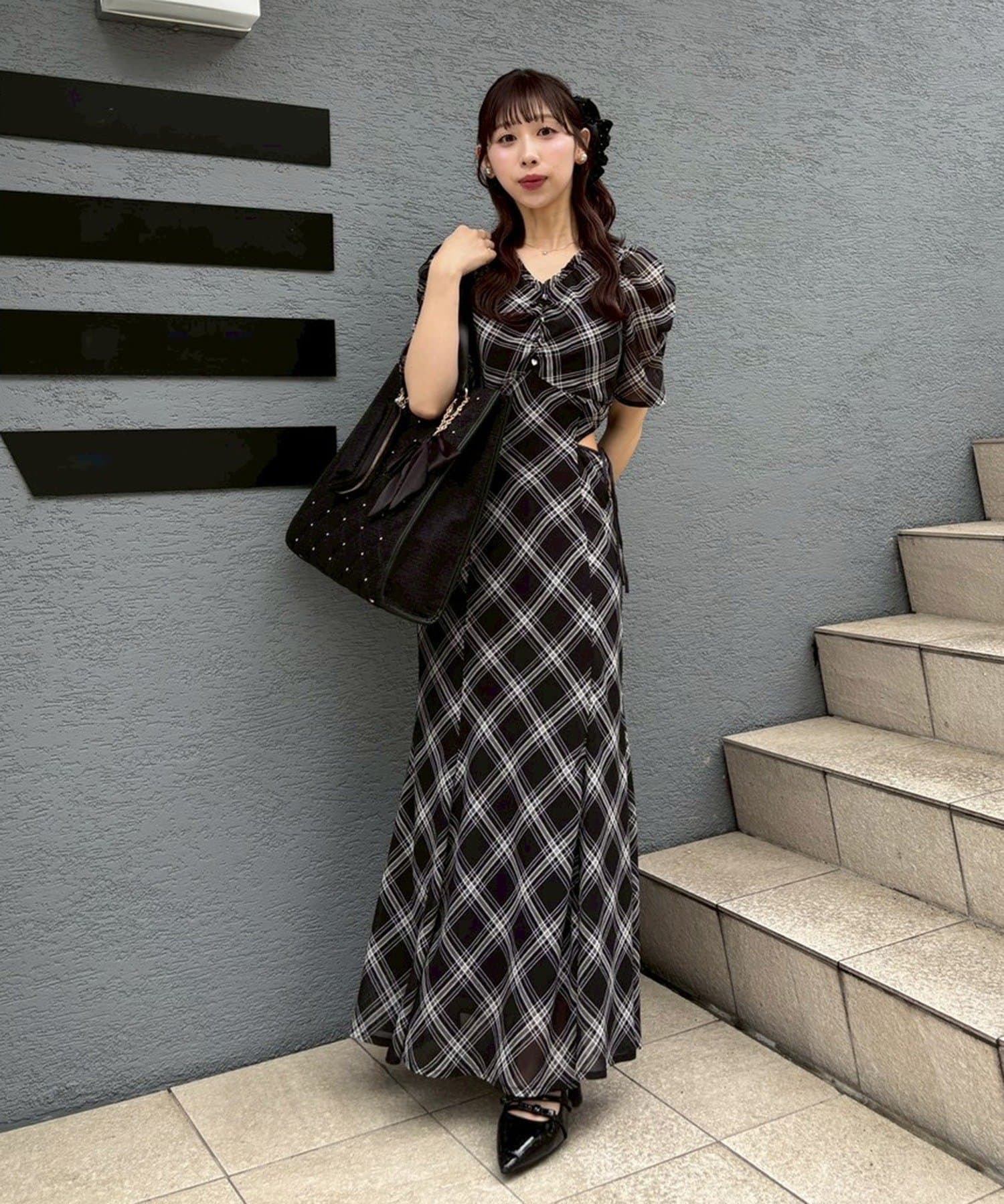 程よい肌見せが叶うウエストカットに、配色リボンをあしらいガーリーなアクセントをプラスしました。