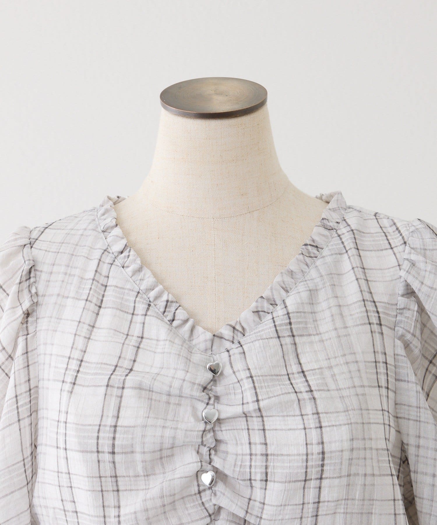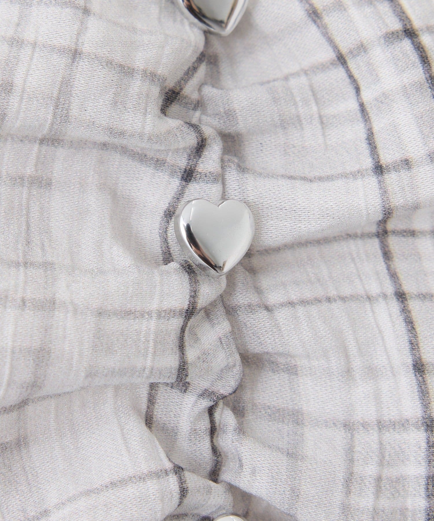 フロントにはハートボタンを施し、さりげなく可愛らしさを引き立てるデザインに。