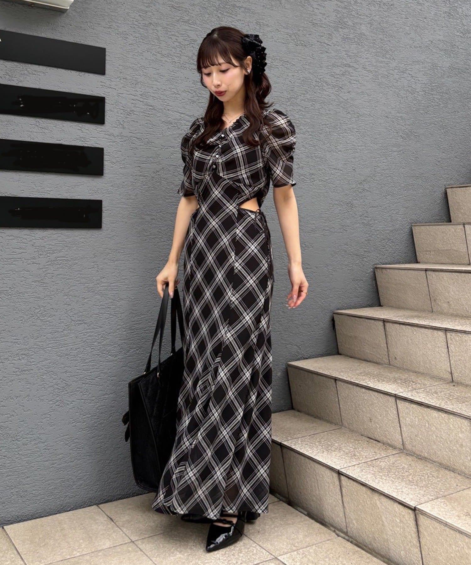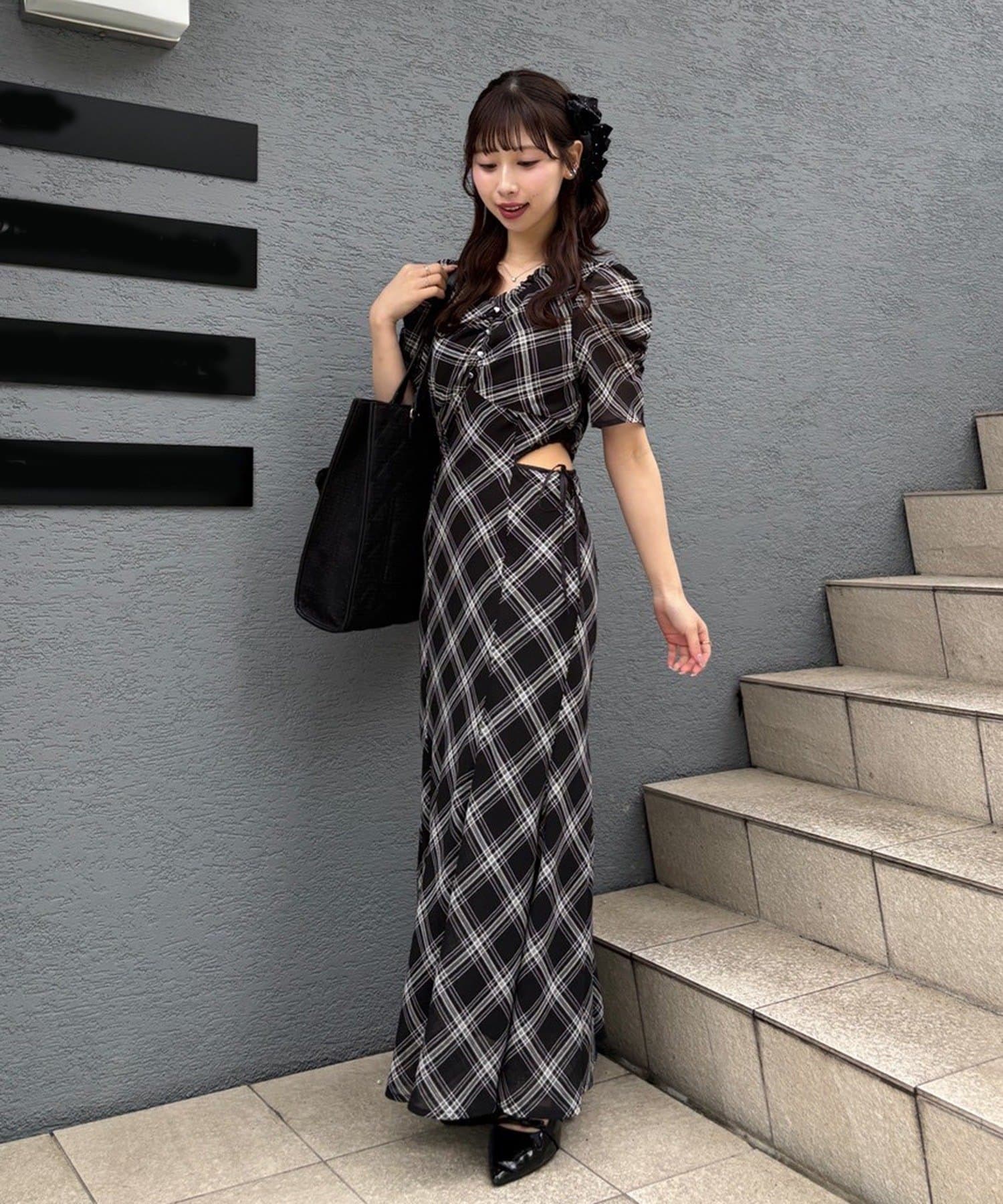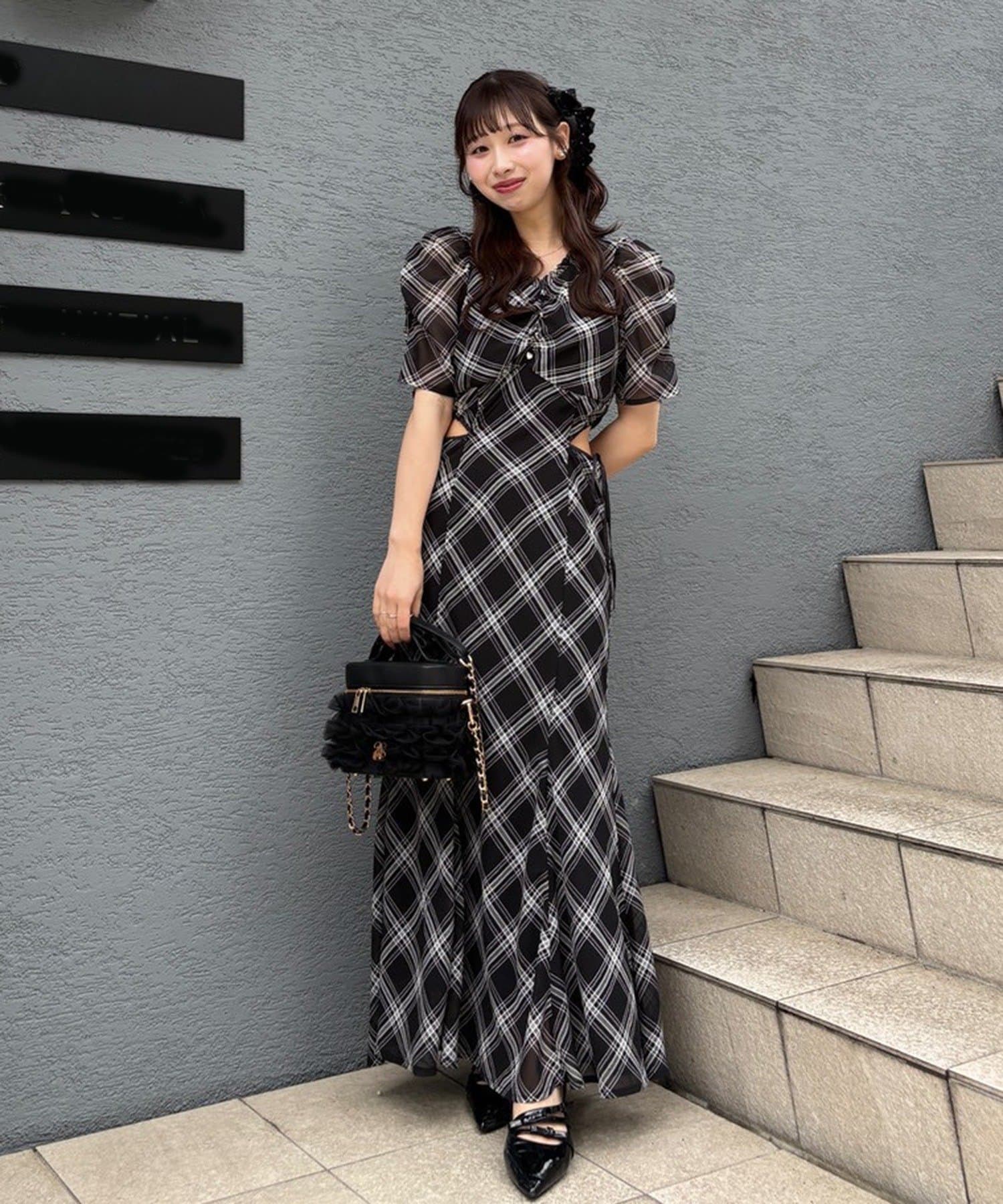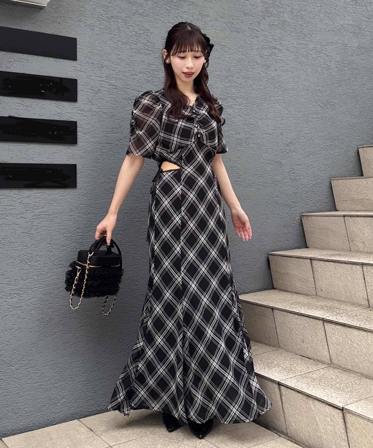 ウエストカットデザインが目を惹くマーメイドシルエットワンピース。