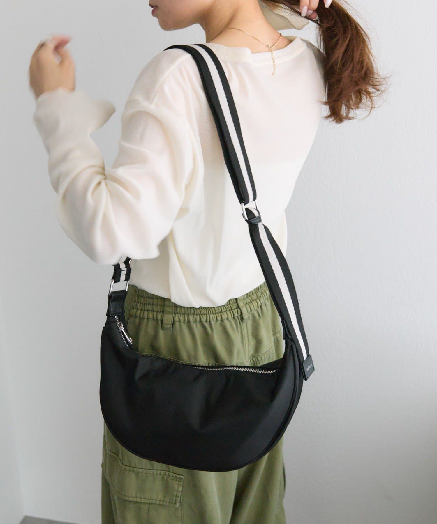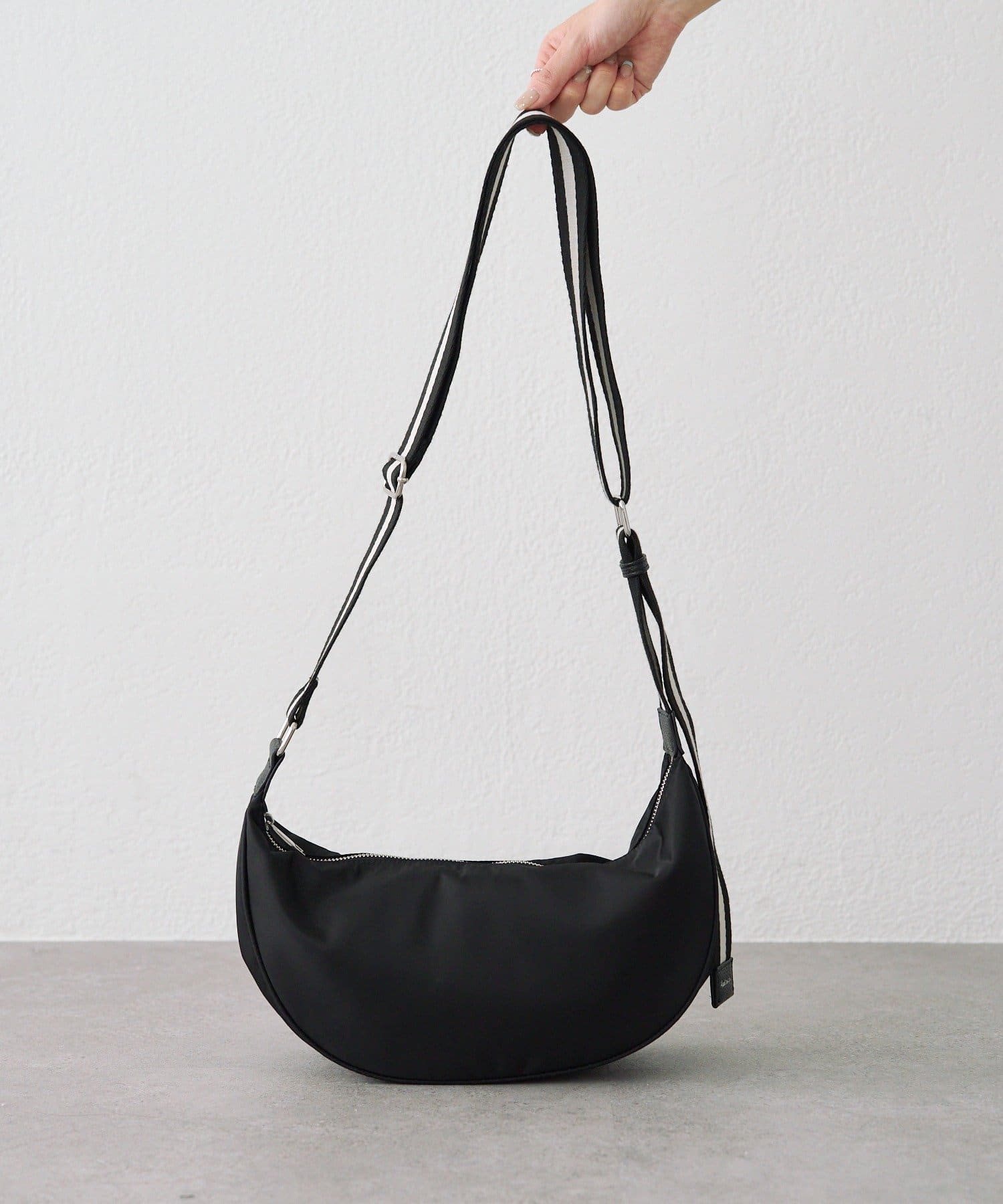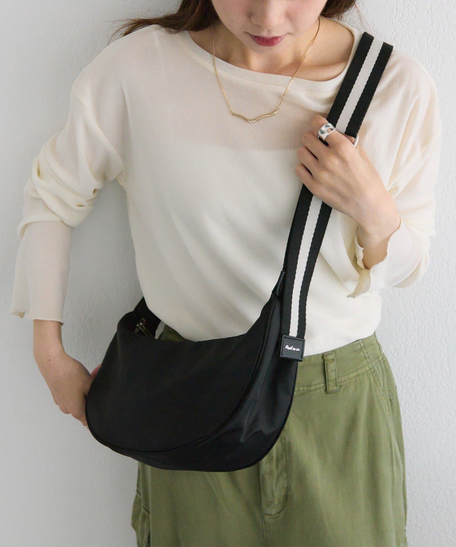 丸みのあるハーフムーン型がかわいらしいワンマイルボディバッグ。