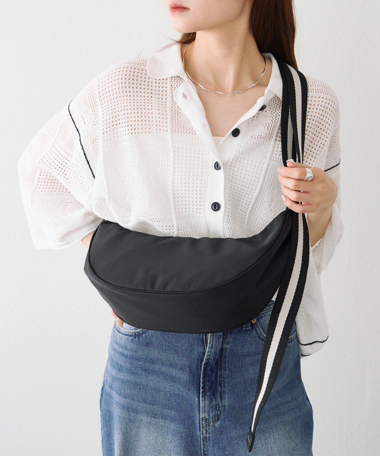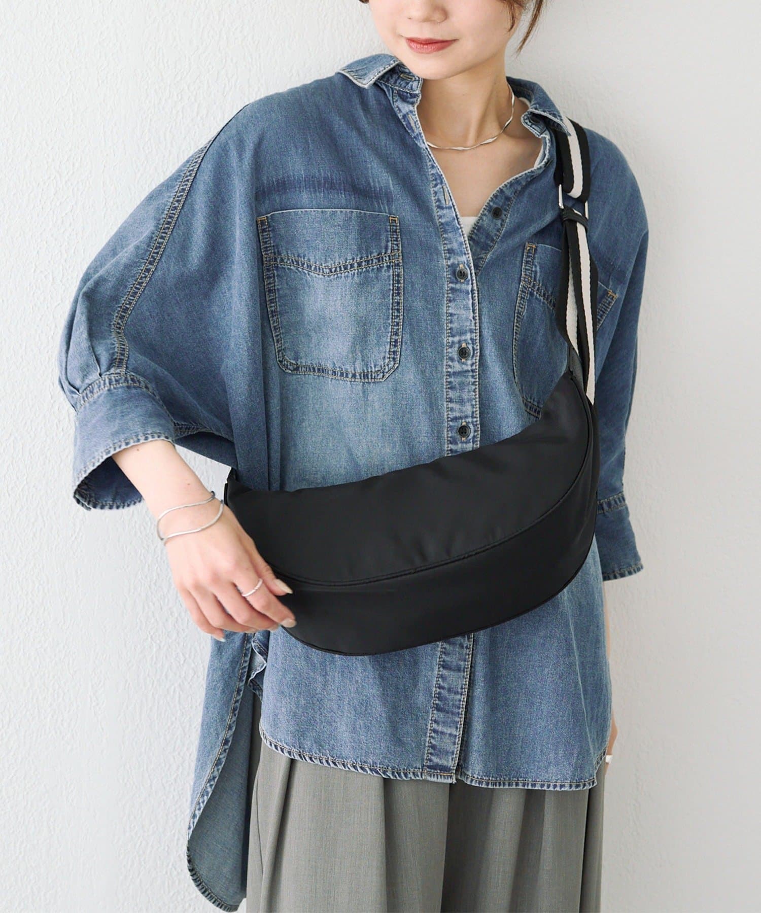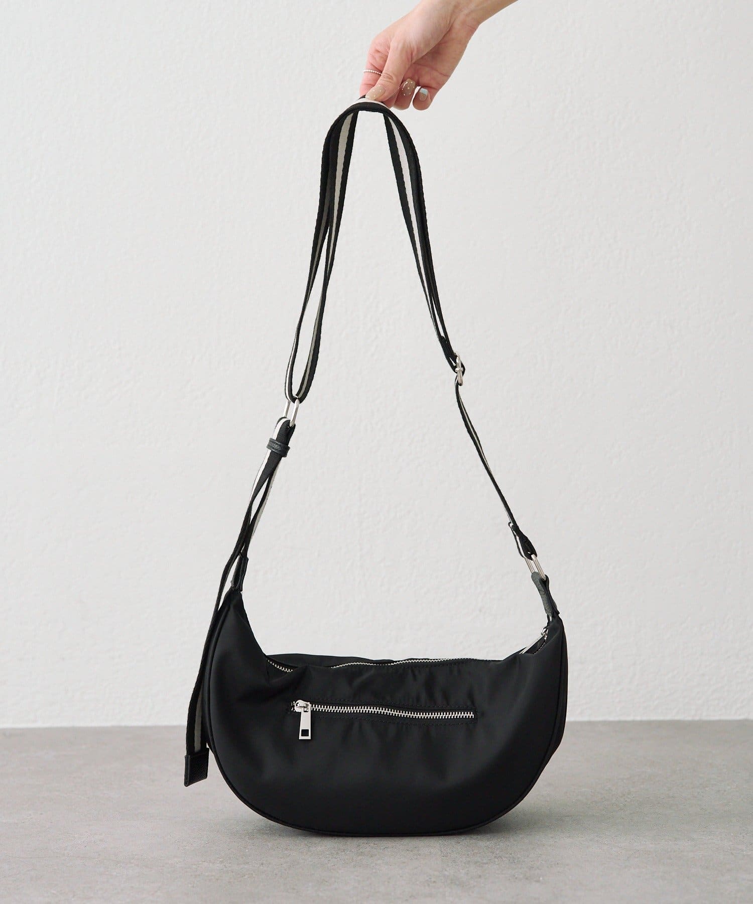 丸みのあるハーフムーン型がかわいらしいワンマイルボディバッグ。