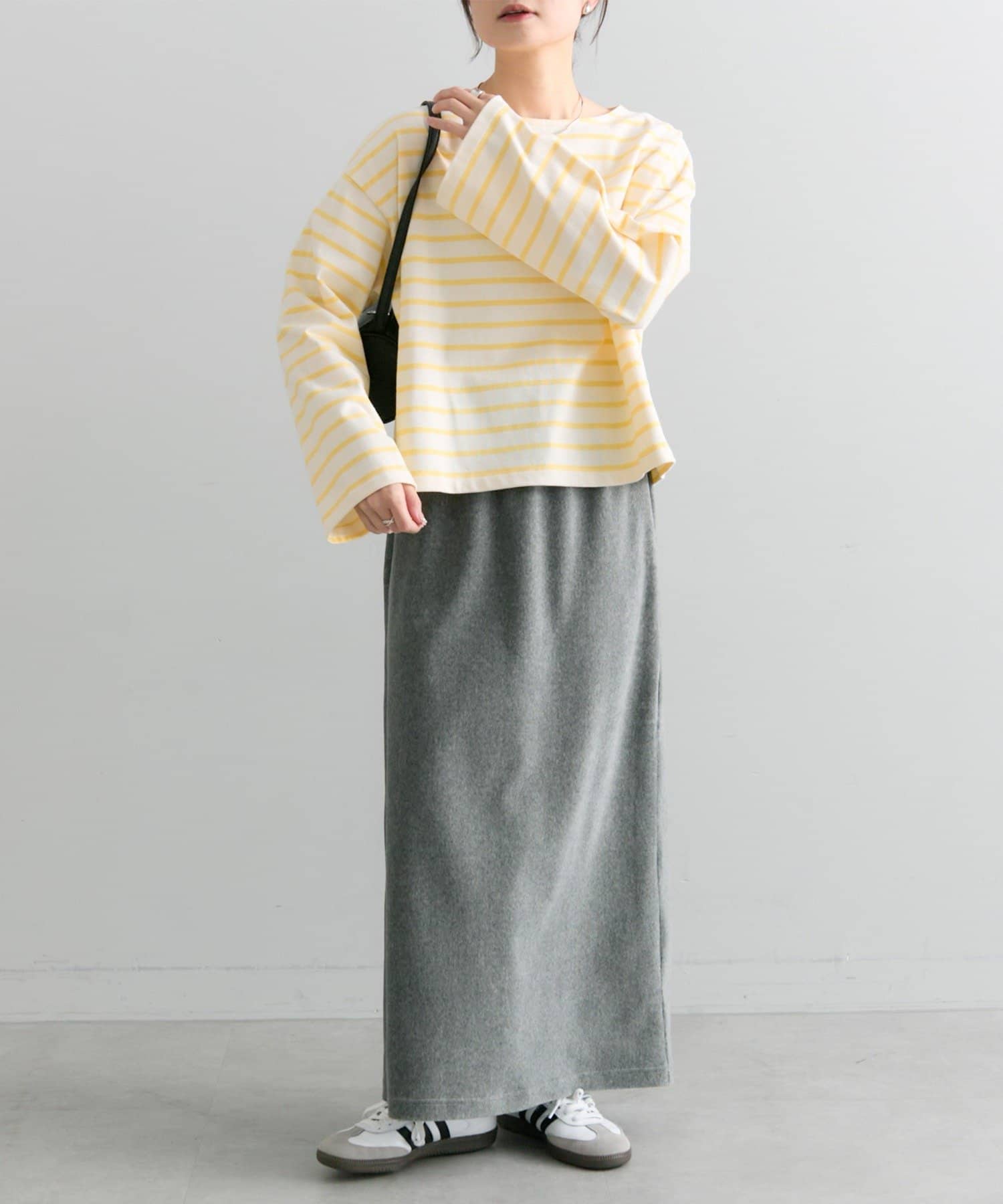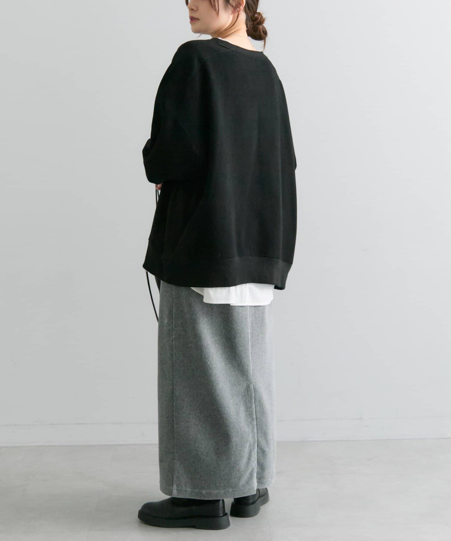 サイズ感:スニーカーやローヒールの靴でも綺麗に穿ける丈感です。とてもストレッチ性が高く、柔らかいコールテン素材です。