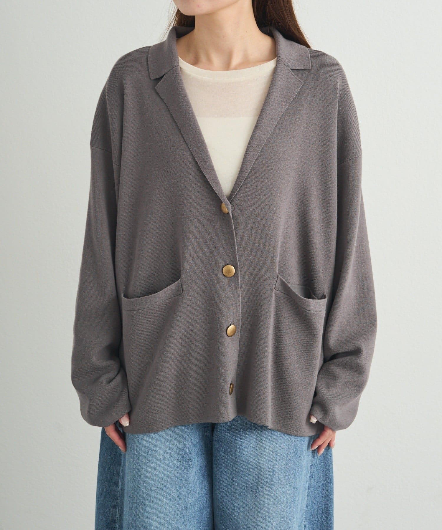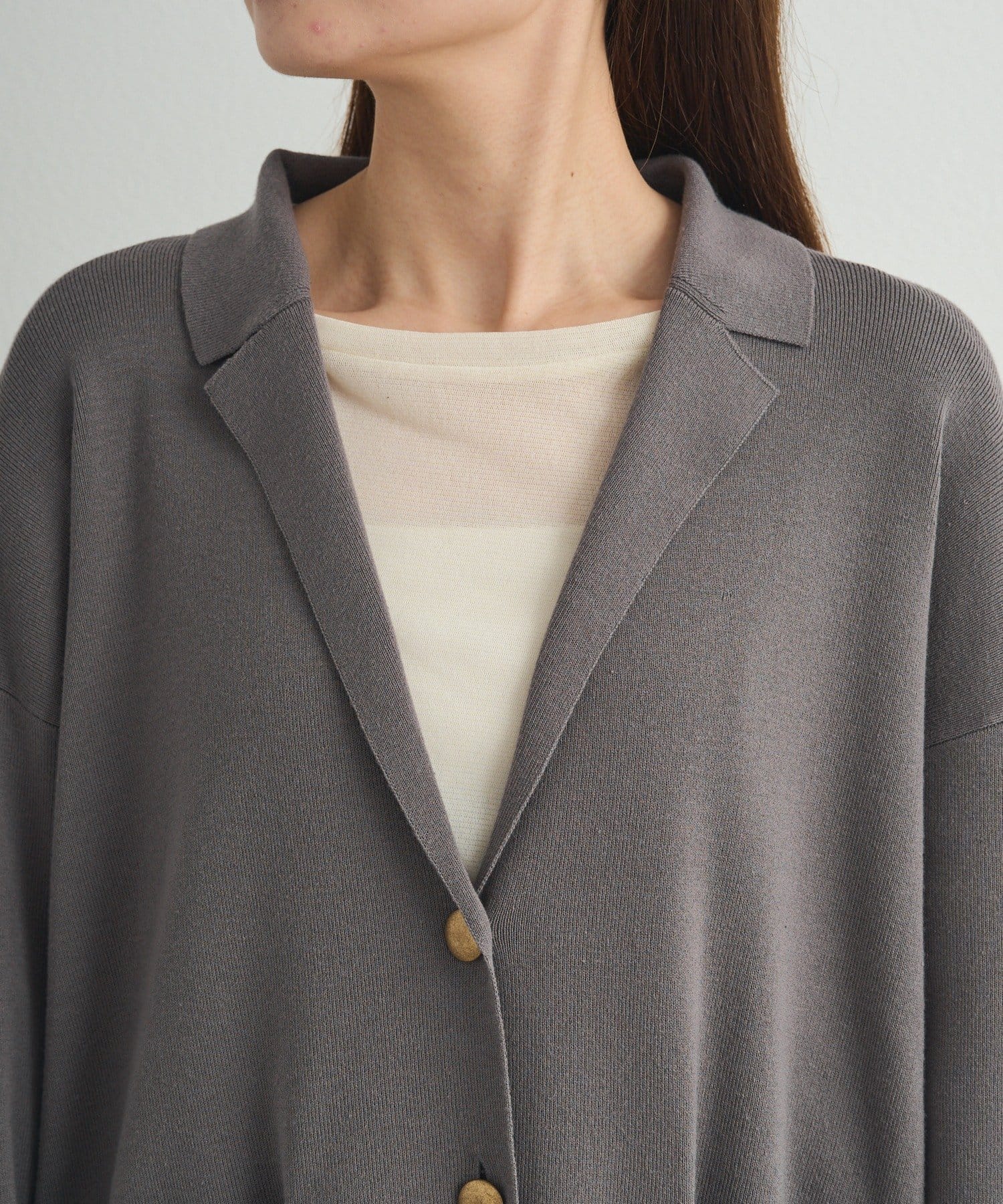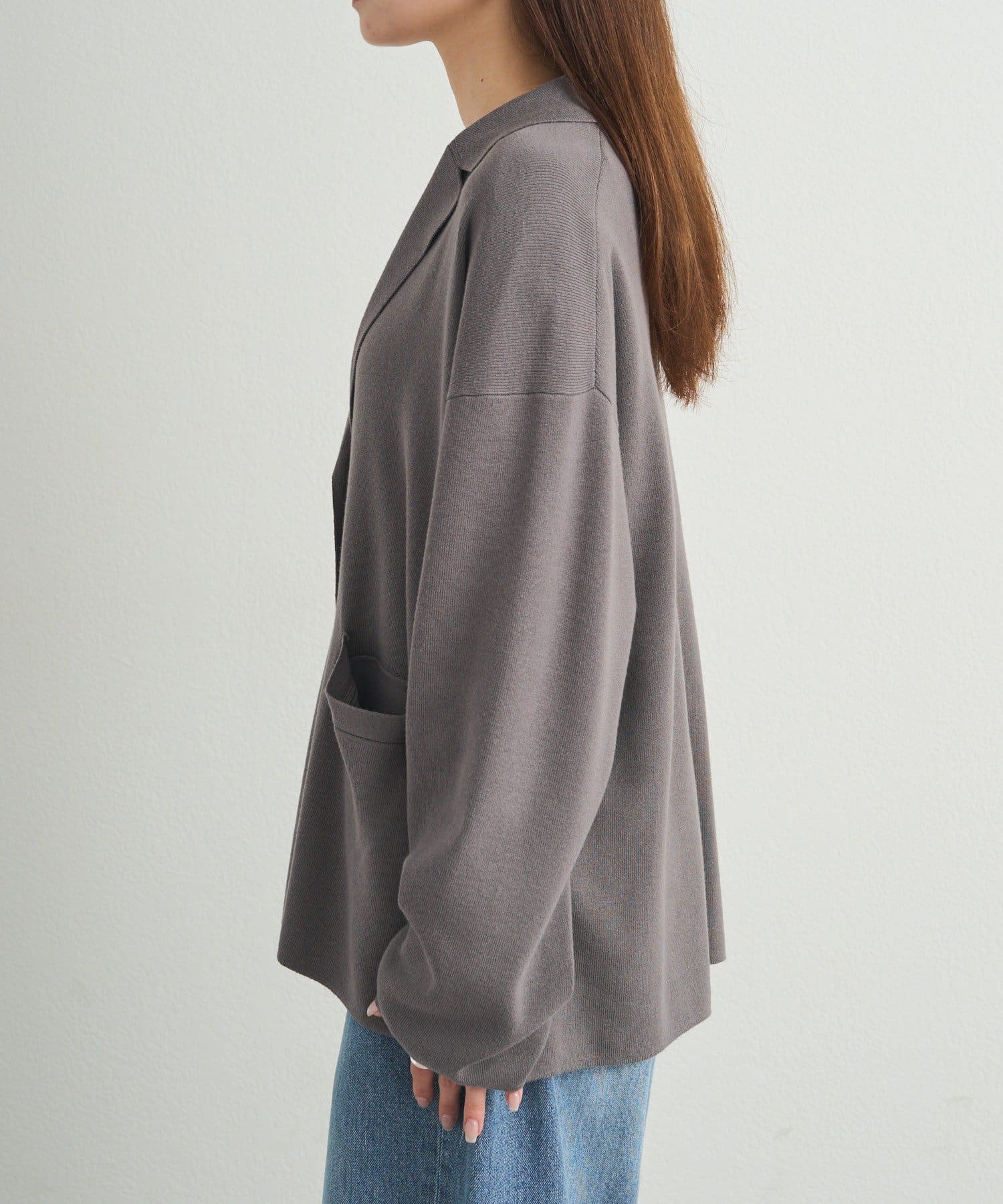 ニットジャケットにシングルタイプのテーラードデザインを落とし込んだ1着です。