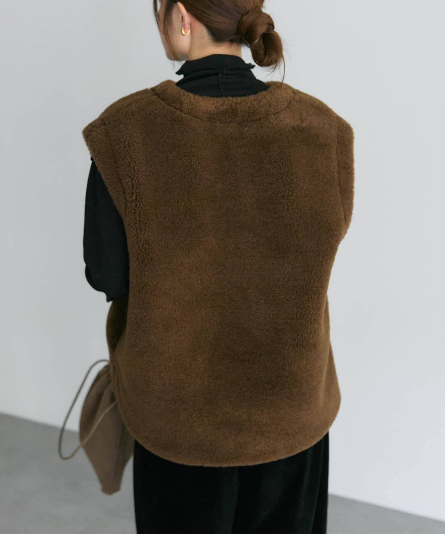 ボアのふんわりとした可愛らしい見た目と肌触りが秋冬にピッタリなベスト。