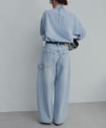 デニムのニュアンスカラーはカラーアイテムとも好相性。