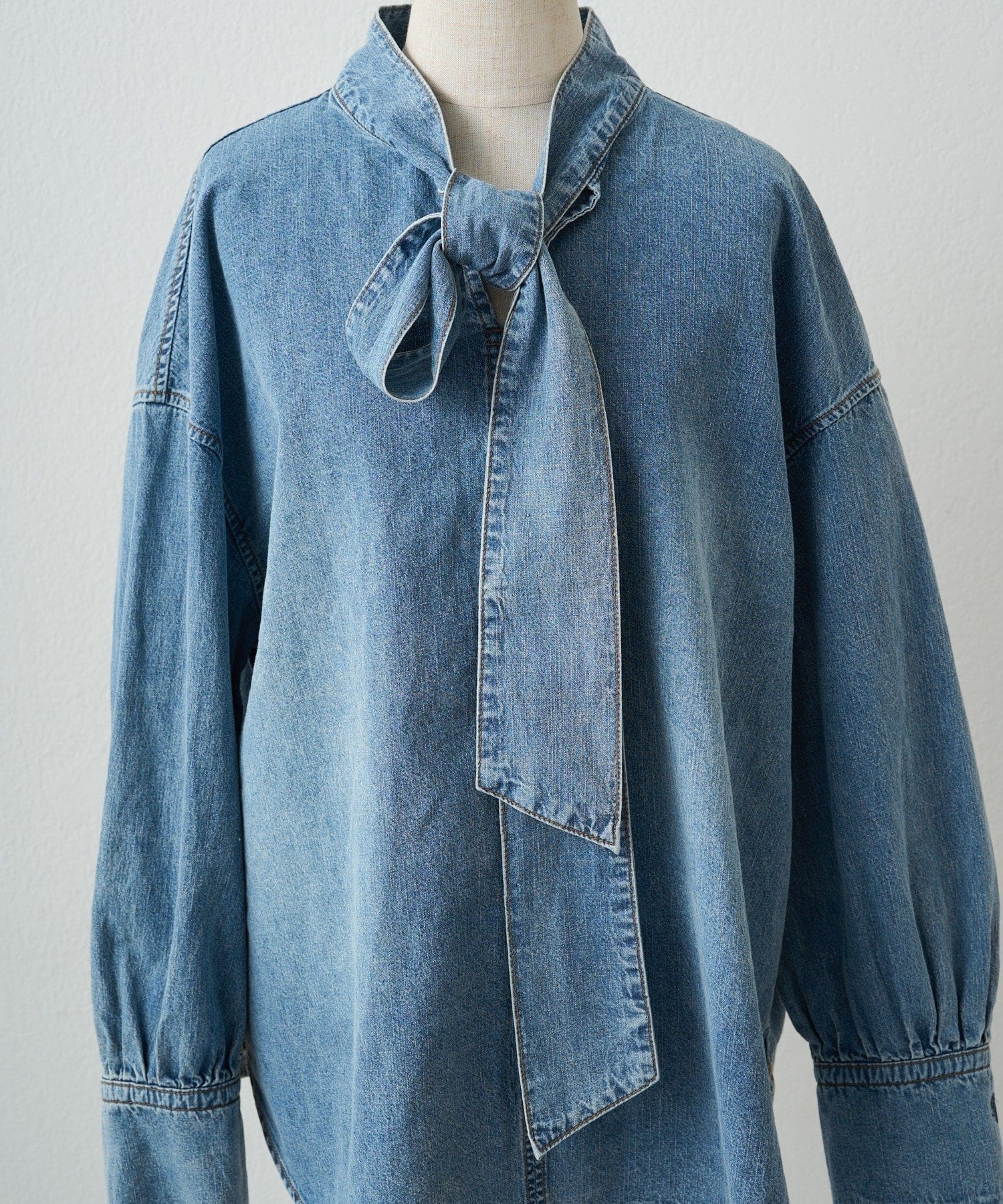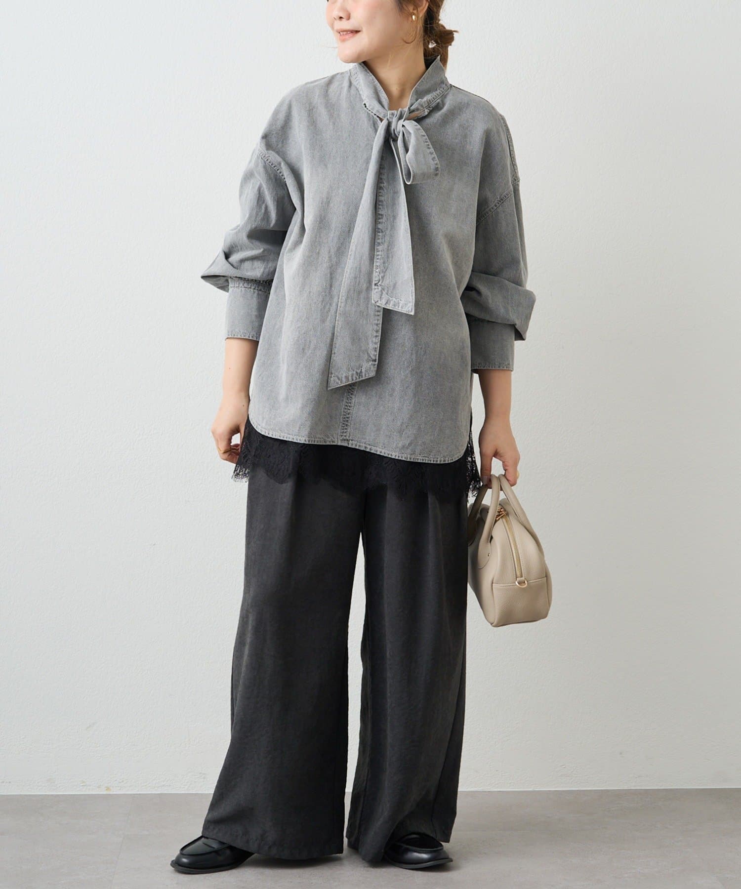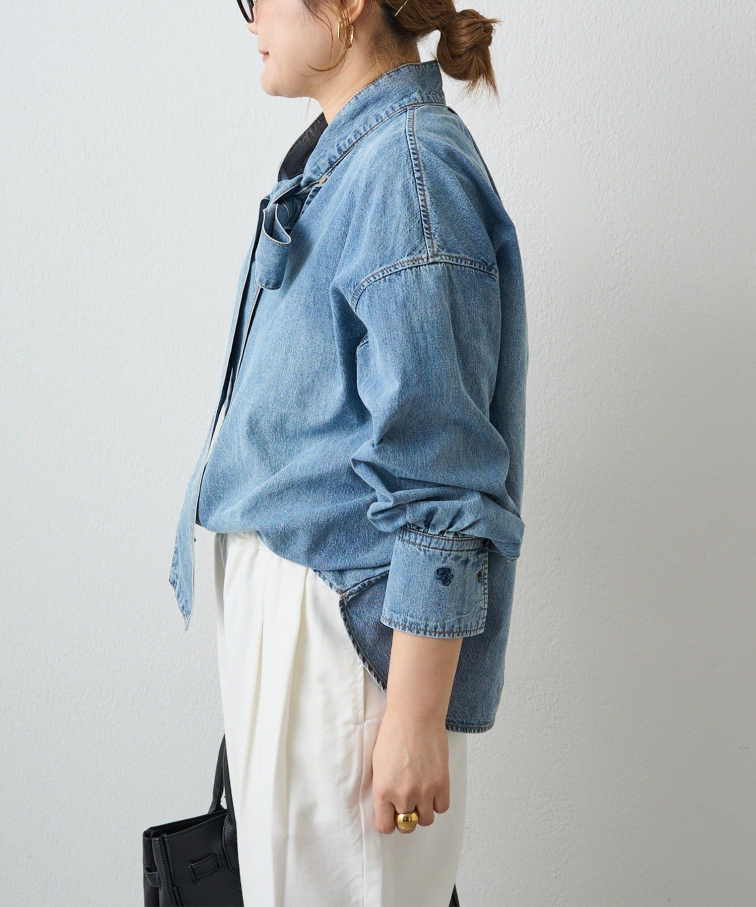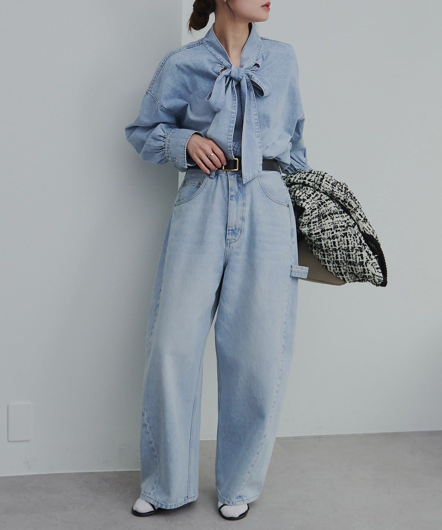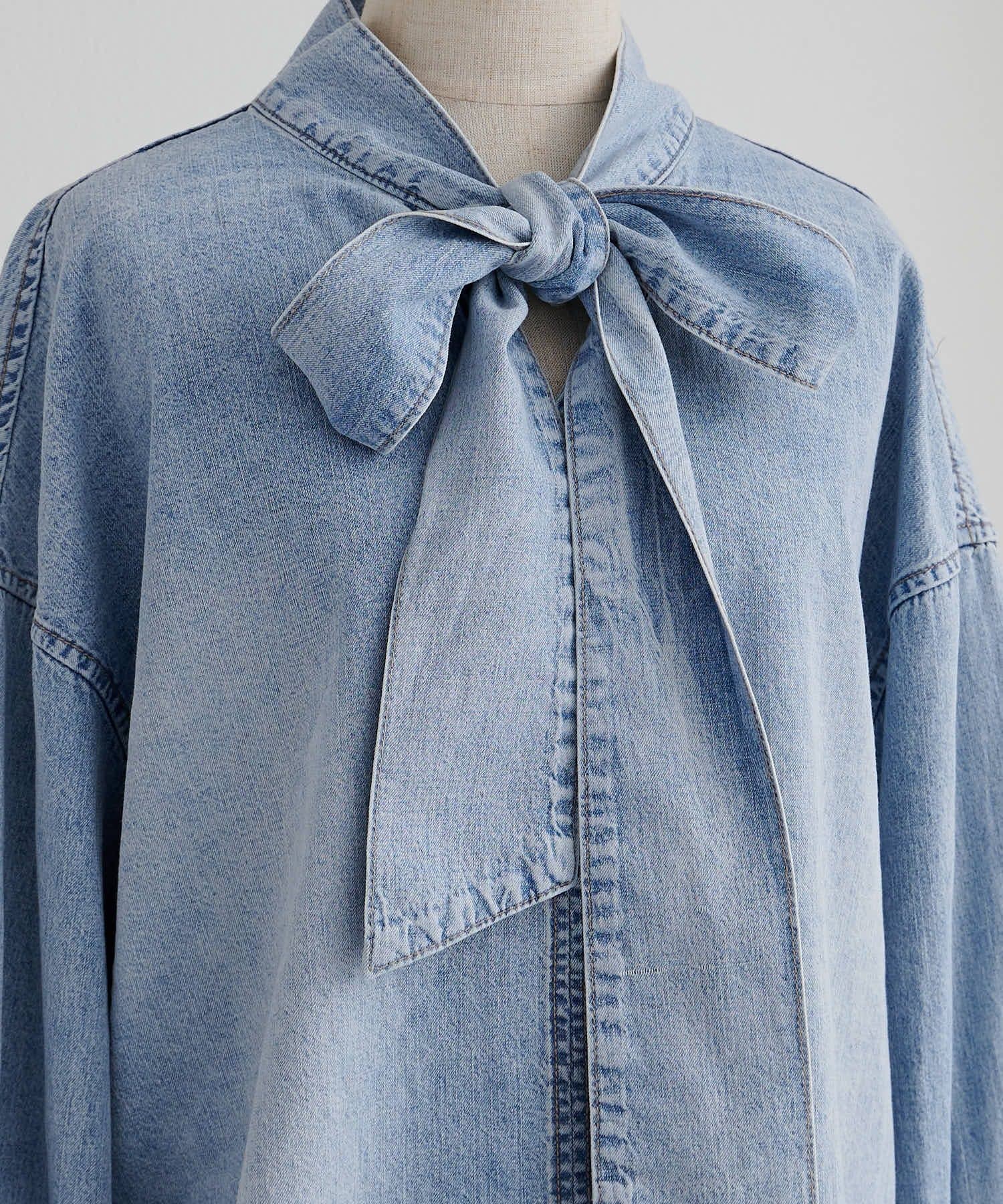 甘さを抑えた大人のボウタイデニムブラウス。
