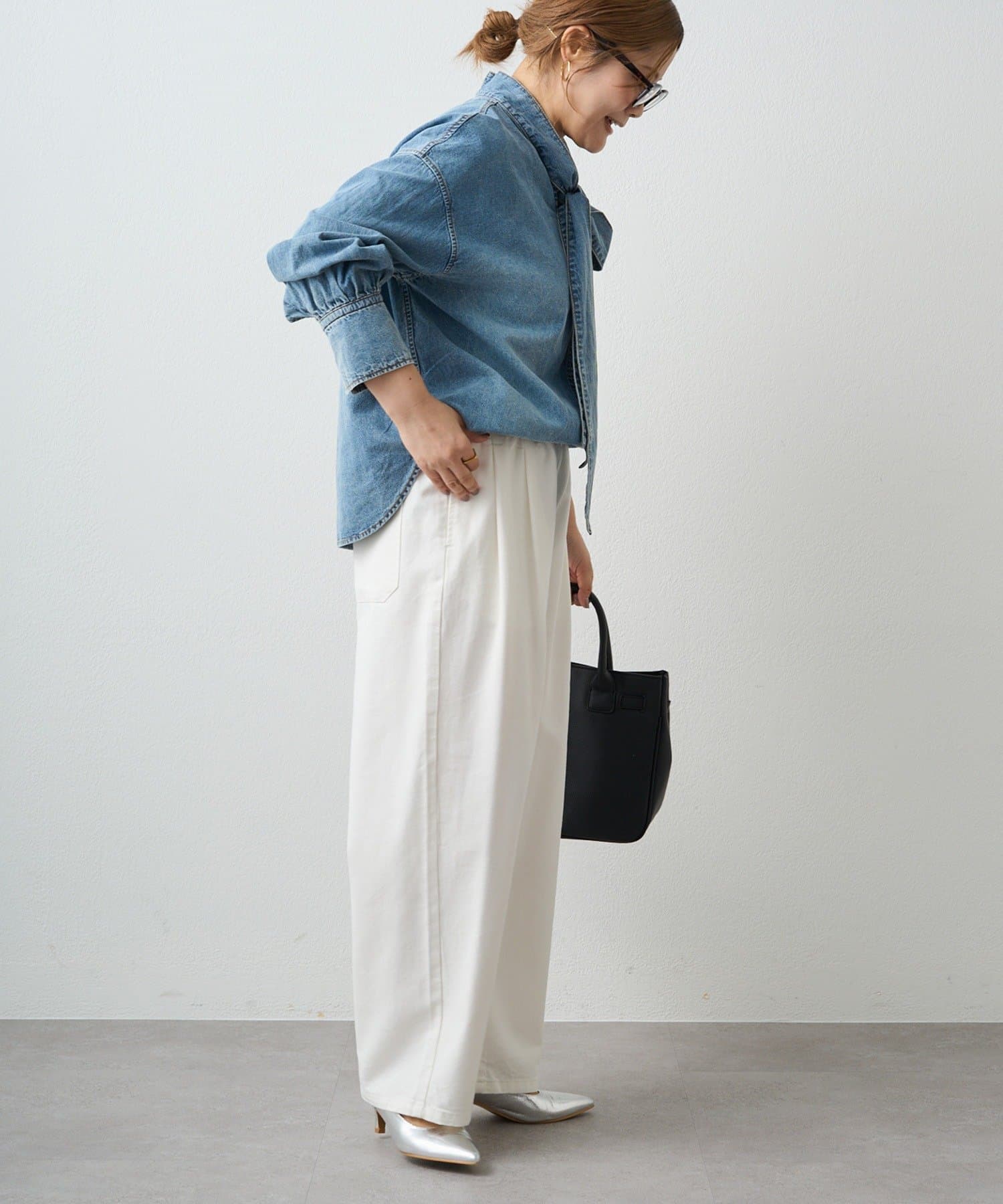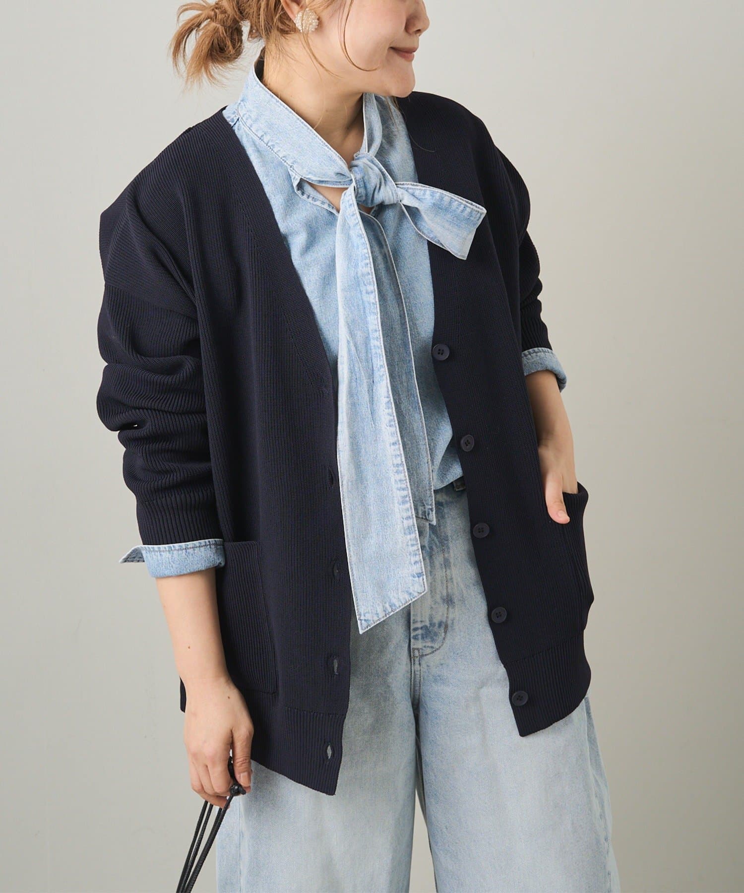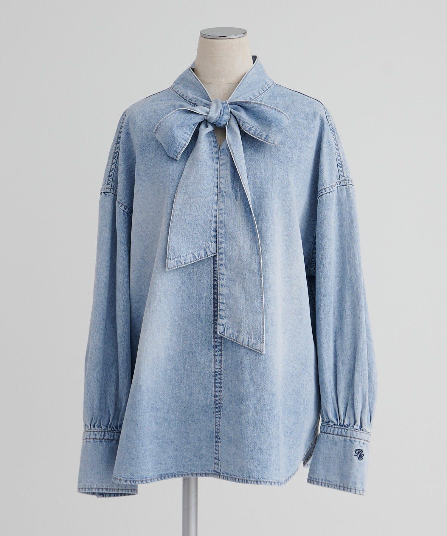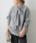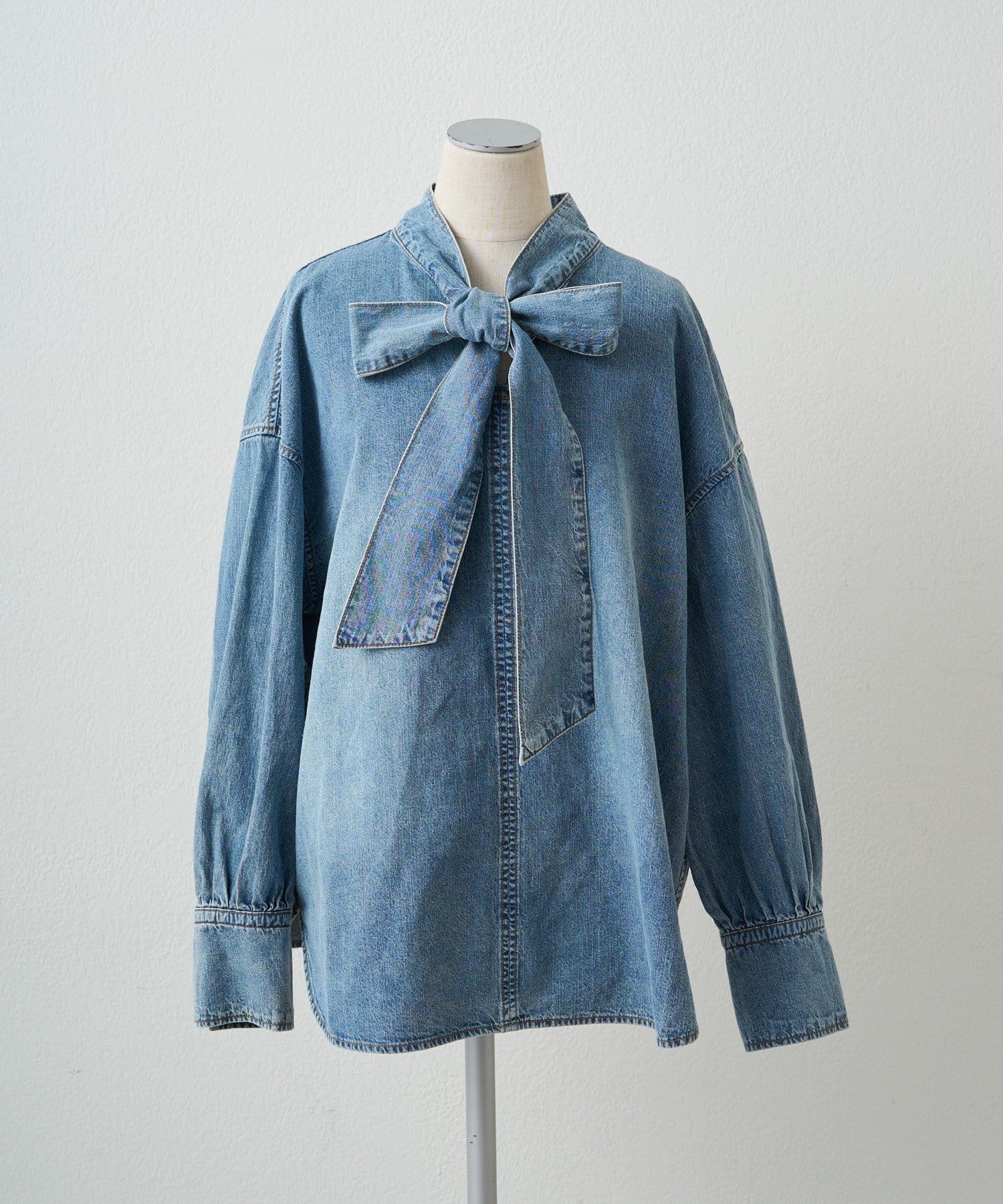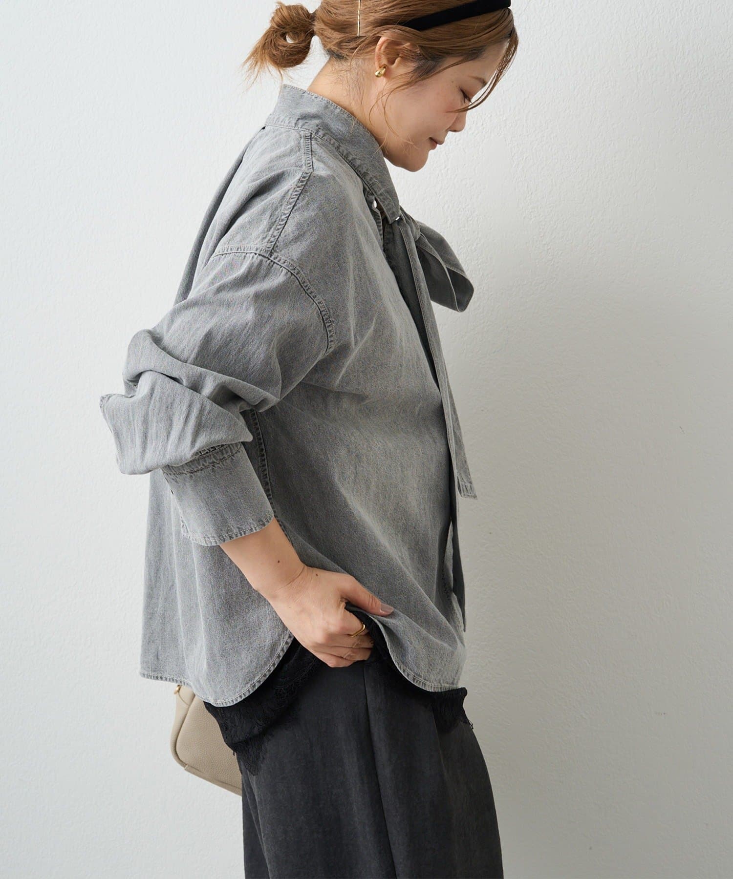 甘さを抑えた大人のボウタイデニムブラウス。