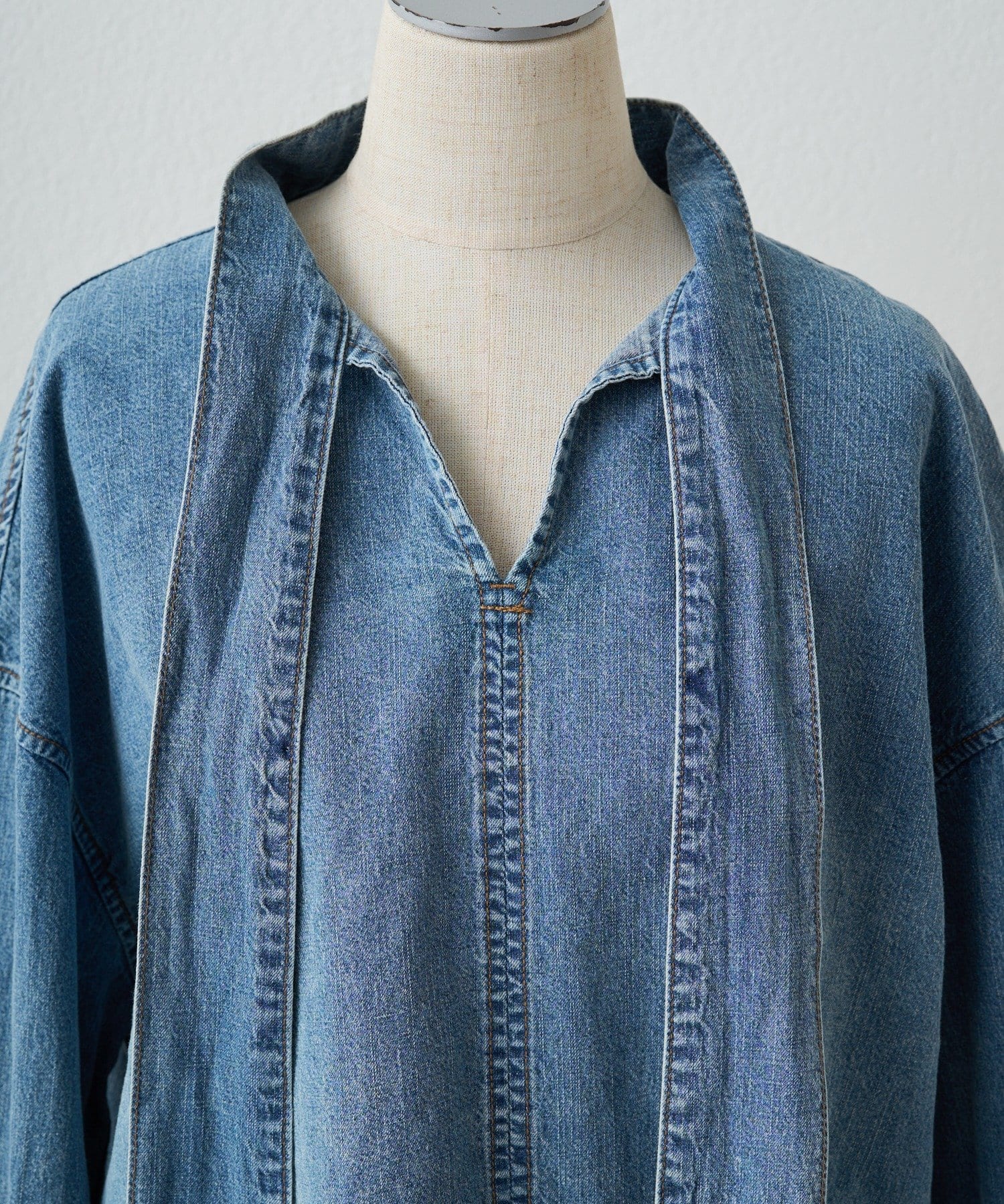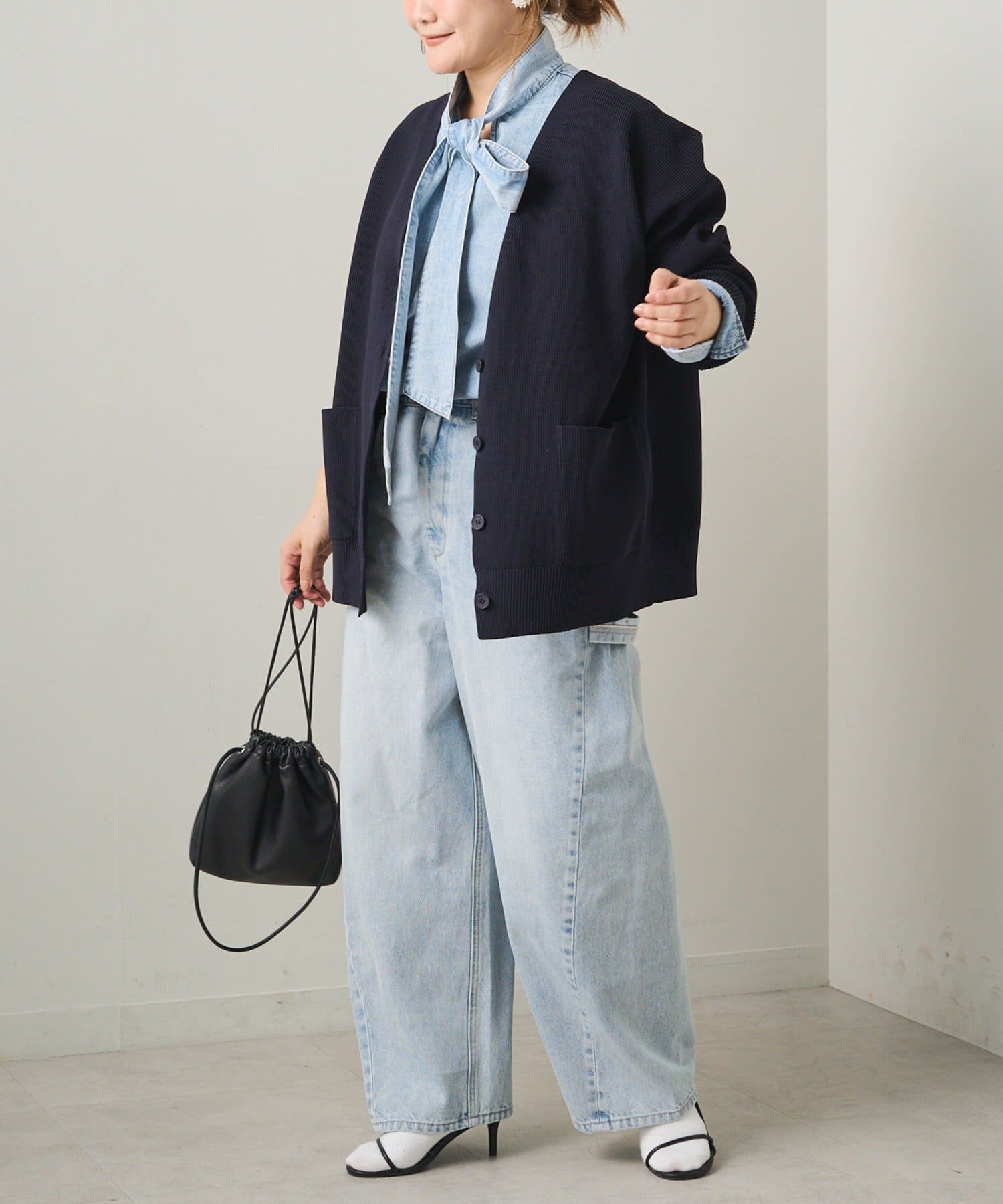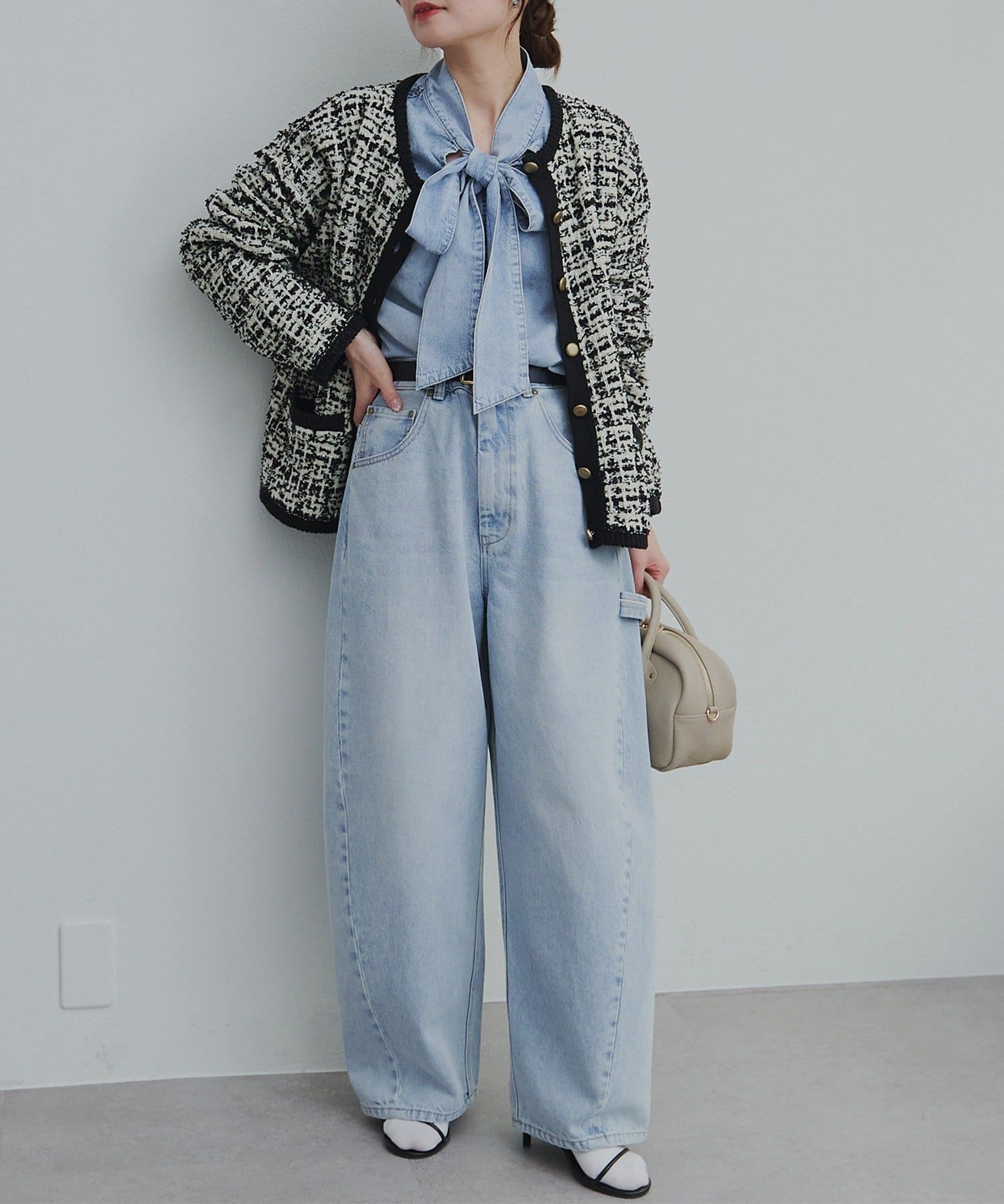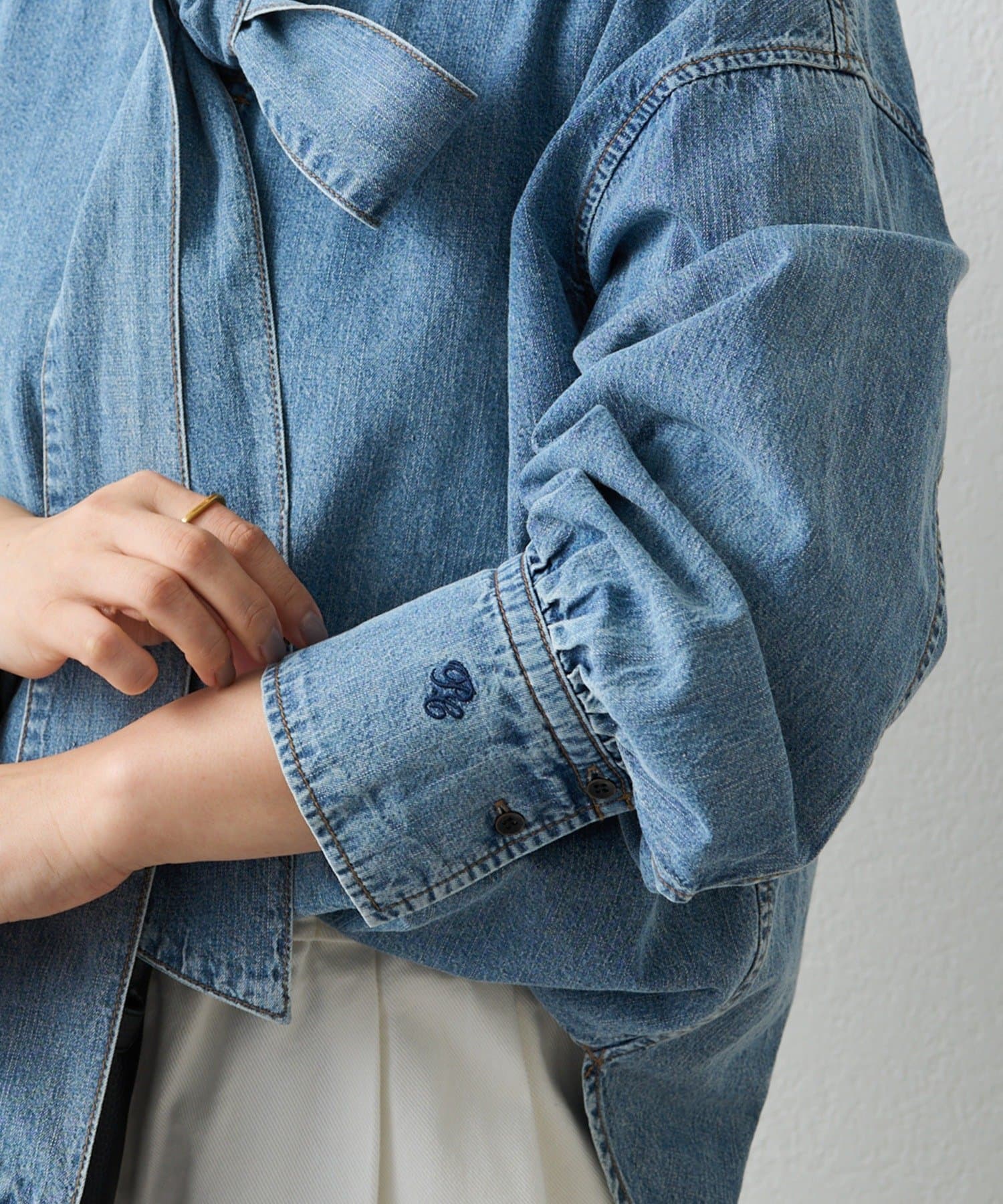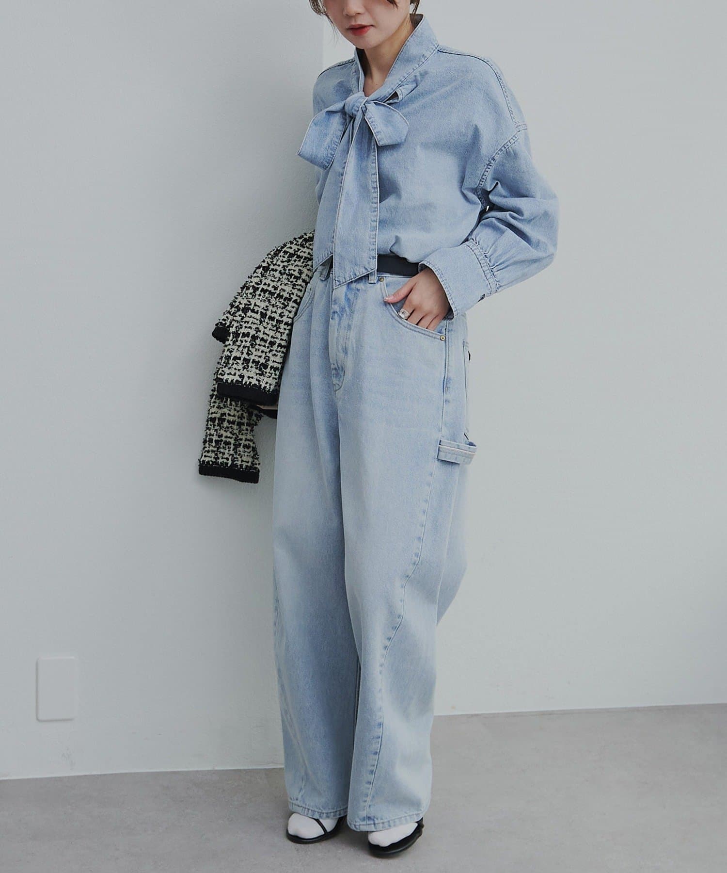 デニムの軽やかさと上品なリボンタイディテールを活かして