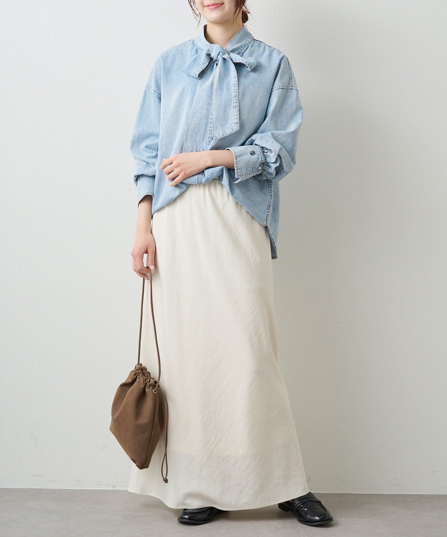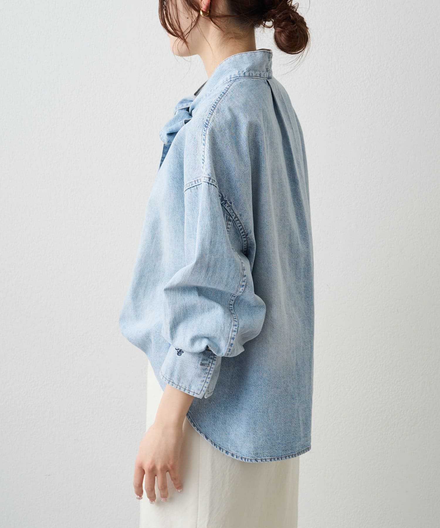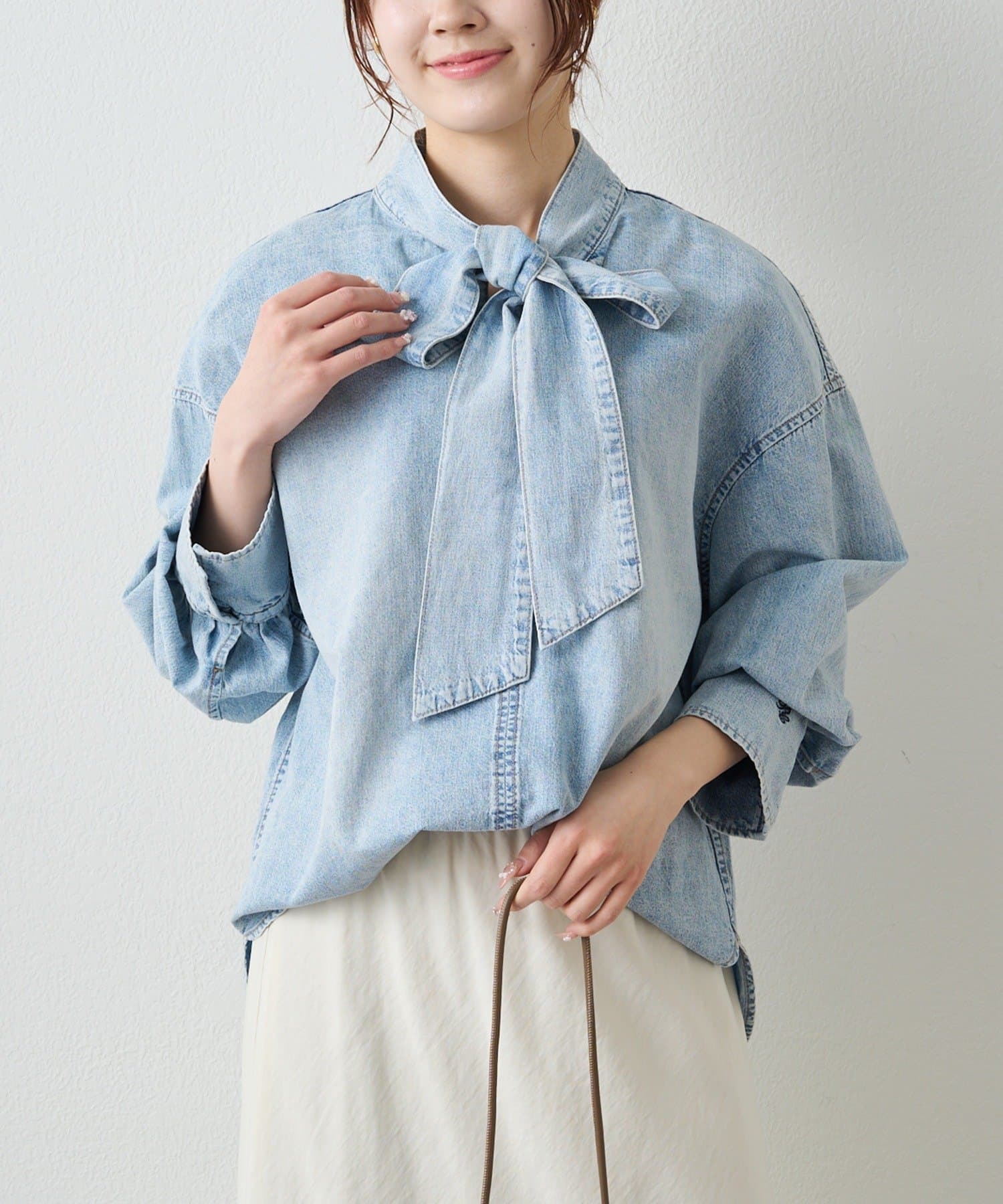 ◇ワンランク上のカジュアルスタイルを演出するボウタイデニムブラウス◇