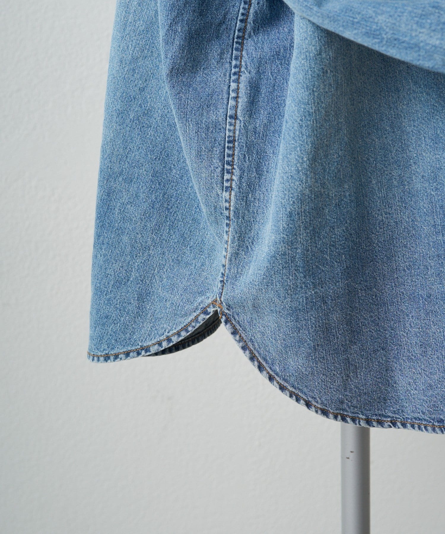 柔らかめで肌触りがよい麻混の6オンスデニム生地を使用し、