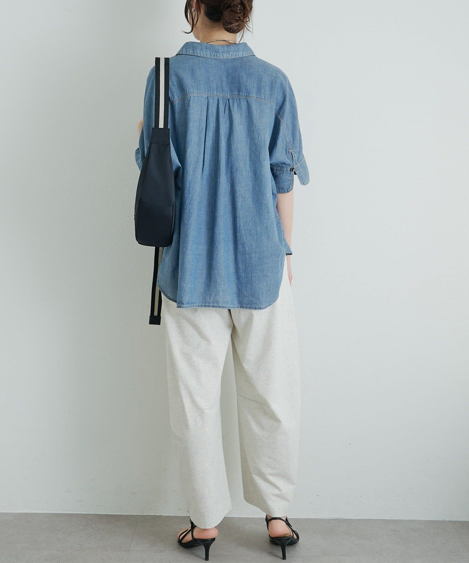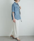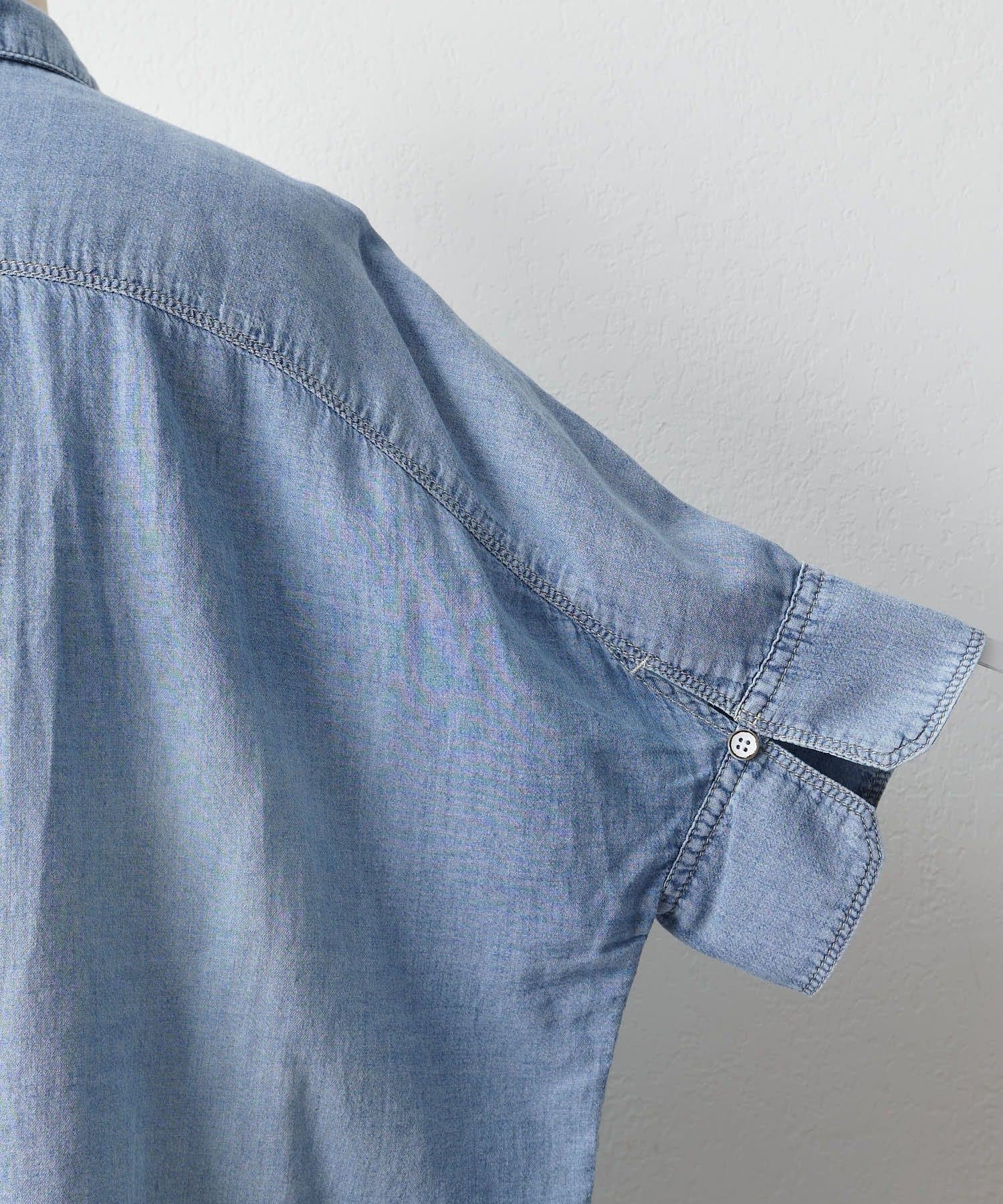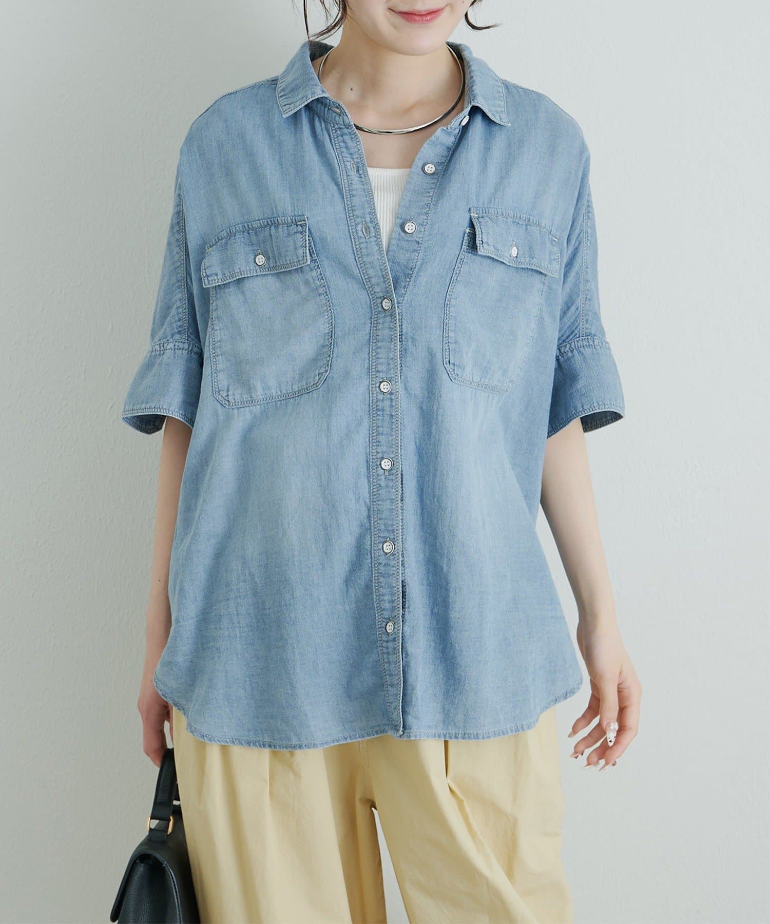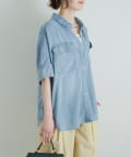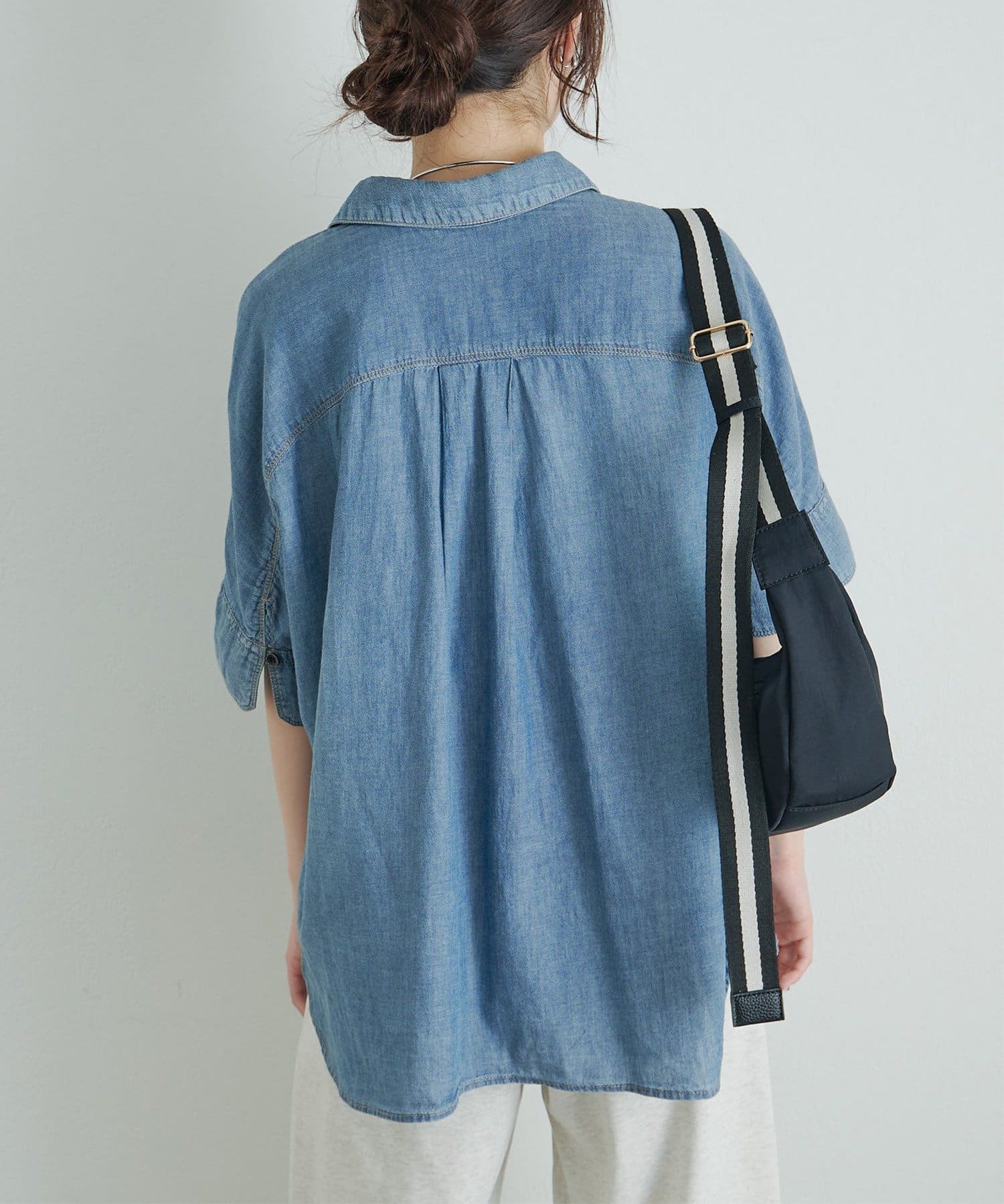 軽やかなシアーデニムを使用したハーフスリーブブラウスは、適度な透け感と爽やかさが魅力的。