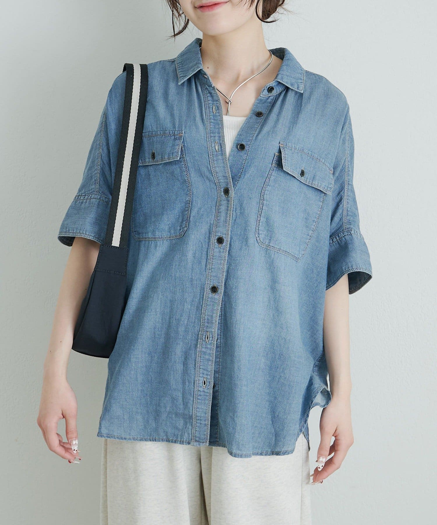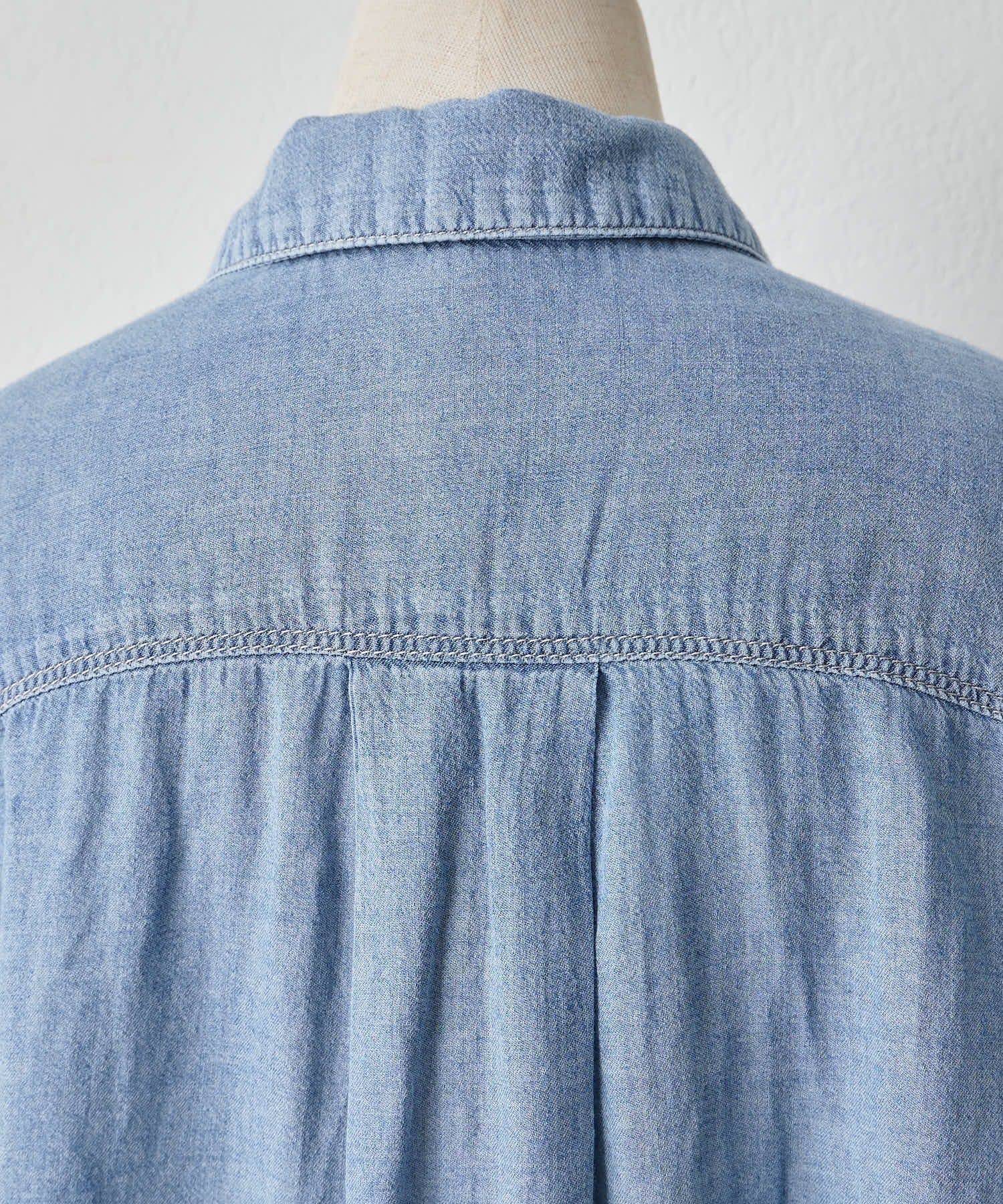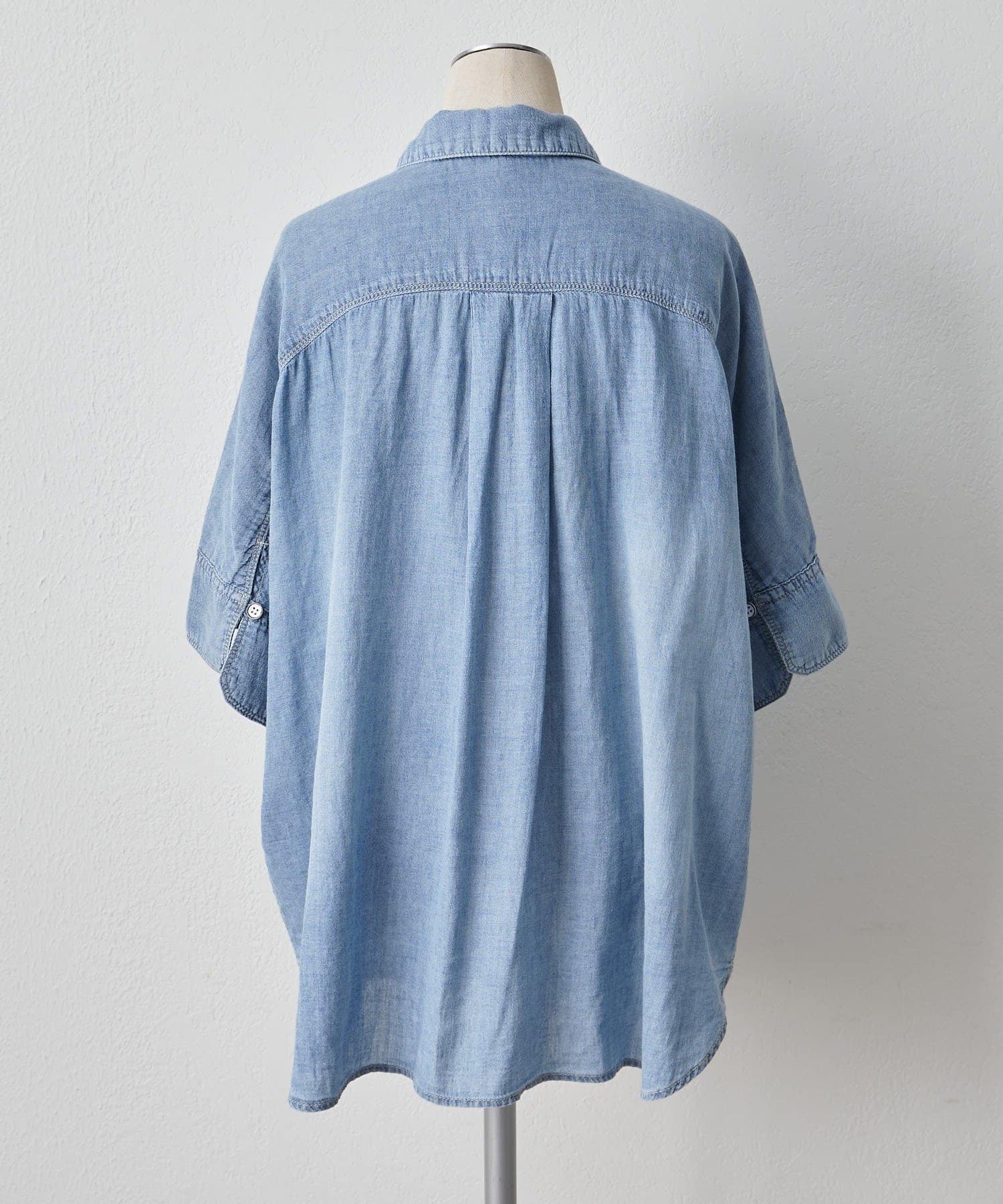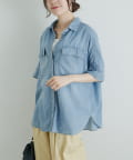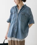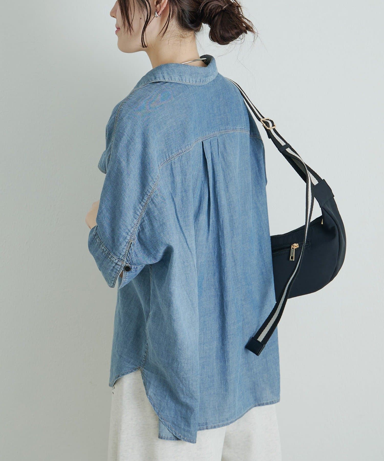 軽やかなシアーデニムを使用したハーフスリーブブラウスは、適度な透け感と爽やかさが魅力的。