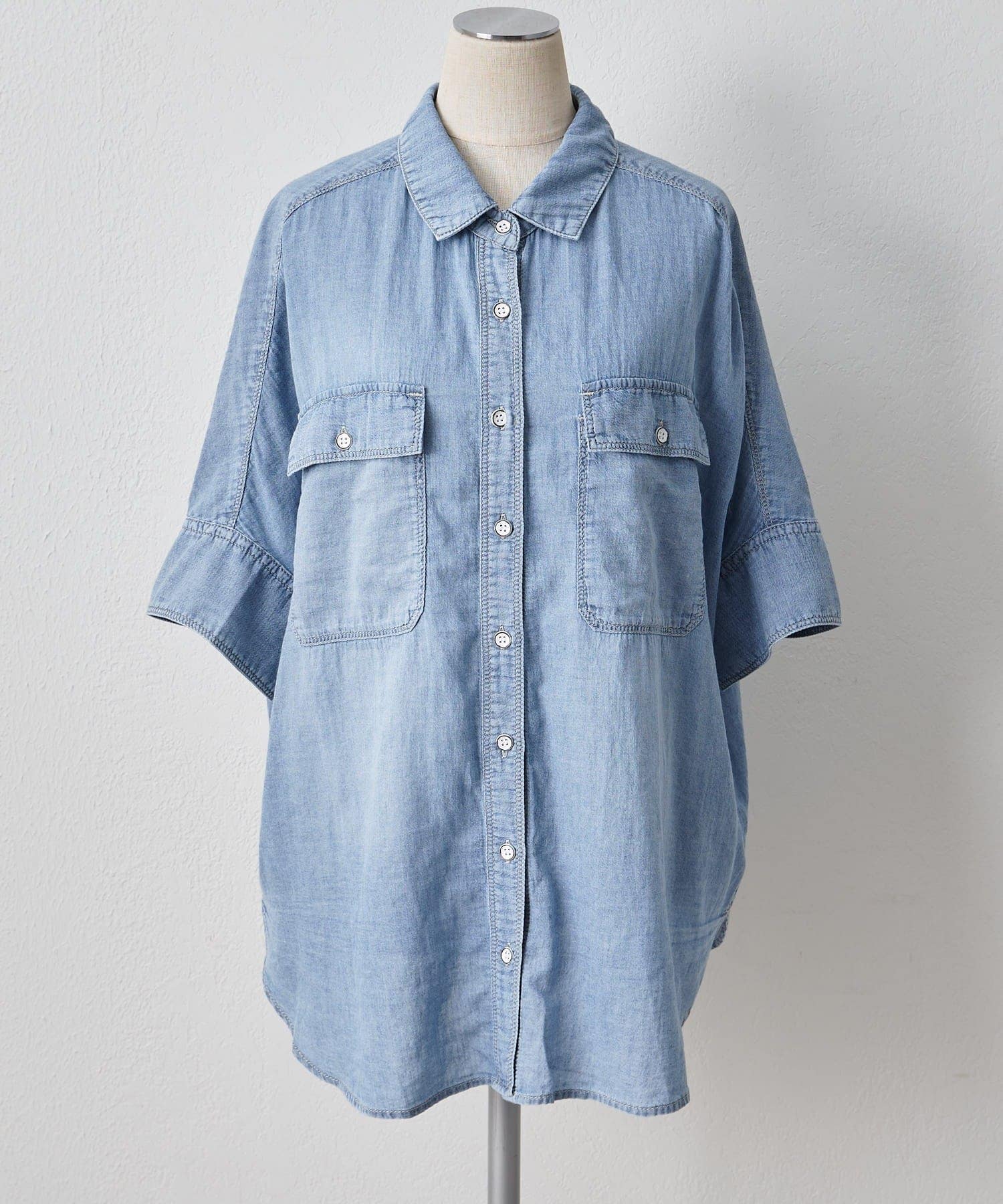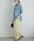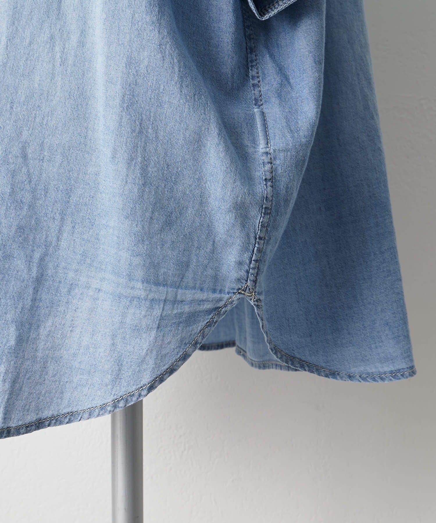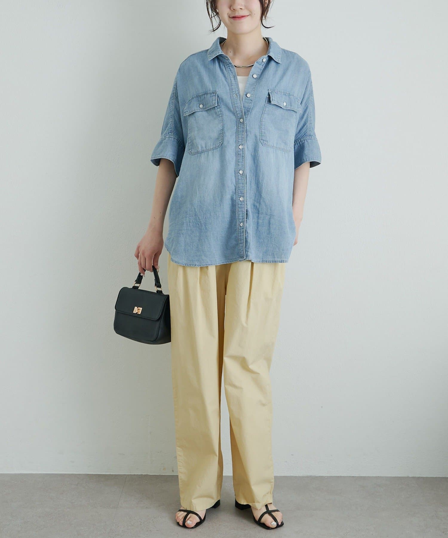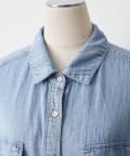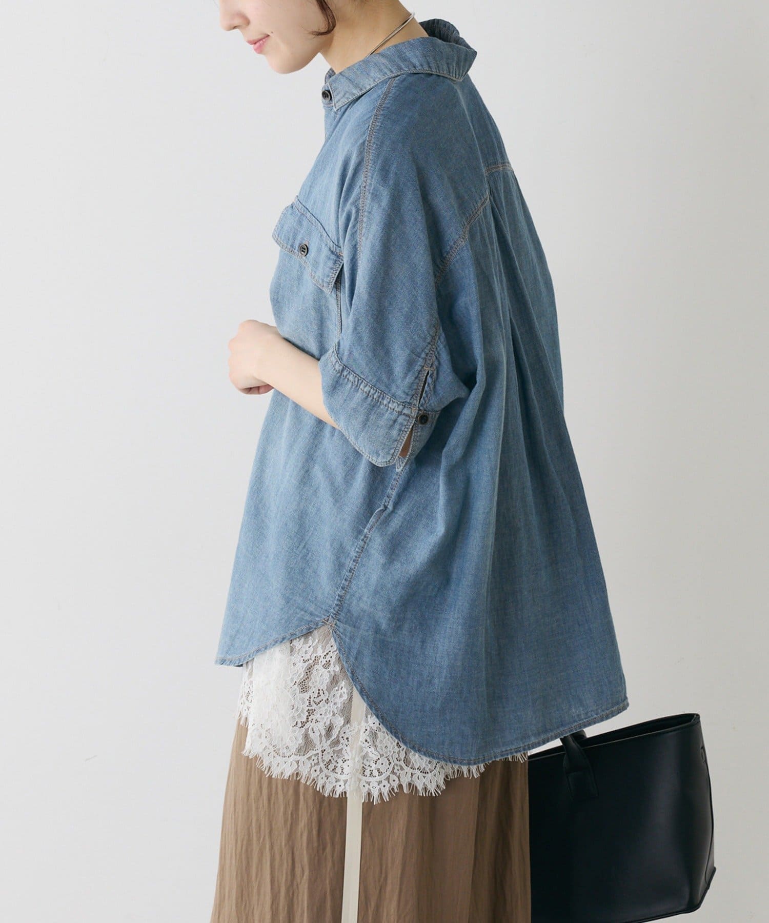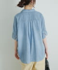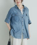 軽やかなシアーデニムを使用したハーフスリーブブラウスは、適度な透け感と爽やかさが魅力的。