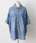 シアーデニムハーフスリーブブラウス
