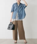 カジュアルなデニムアイテムも、滑らかな生地感で品がプラスされ、