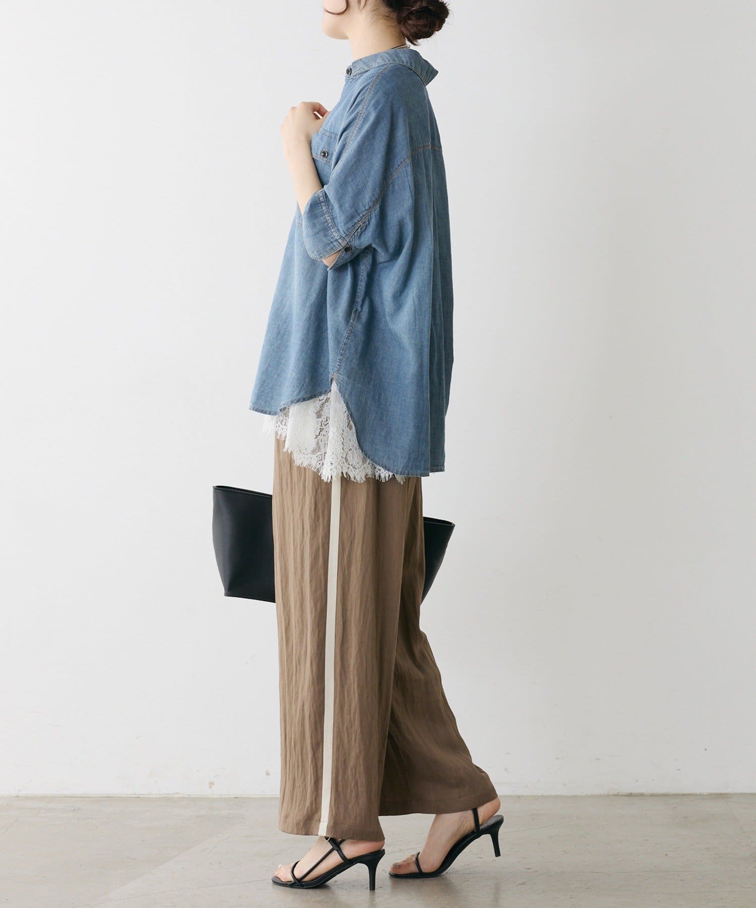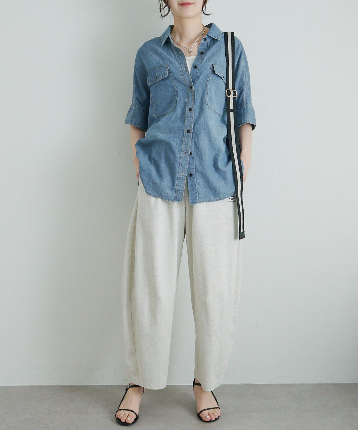ゆとりあるサイジングなので、フレンチスリーブやニットタンクの上からの羽織にも良さそうです。