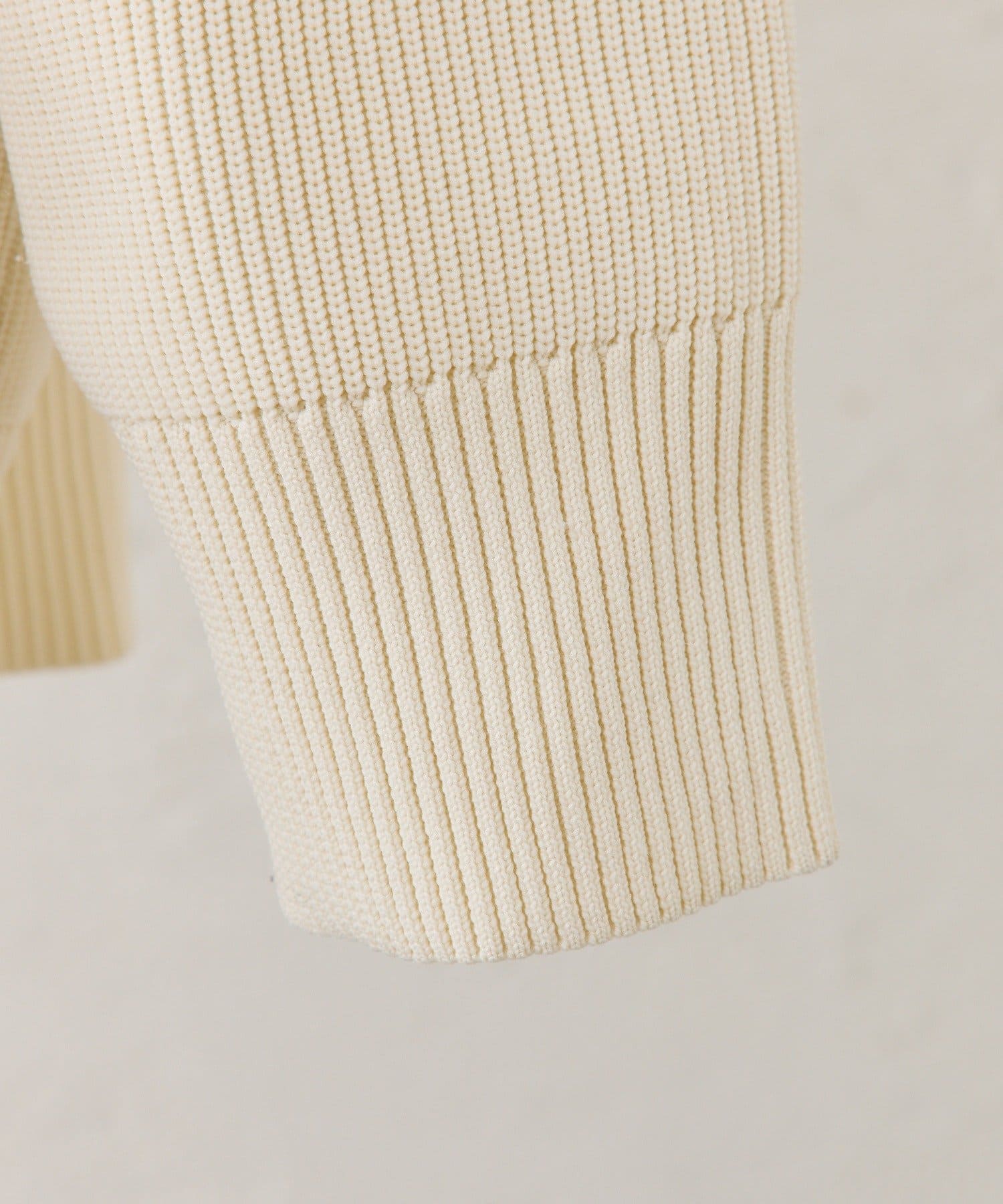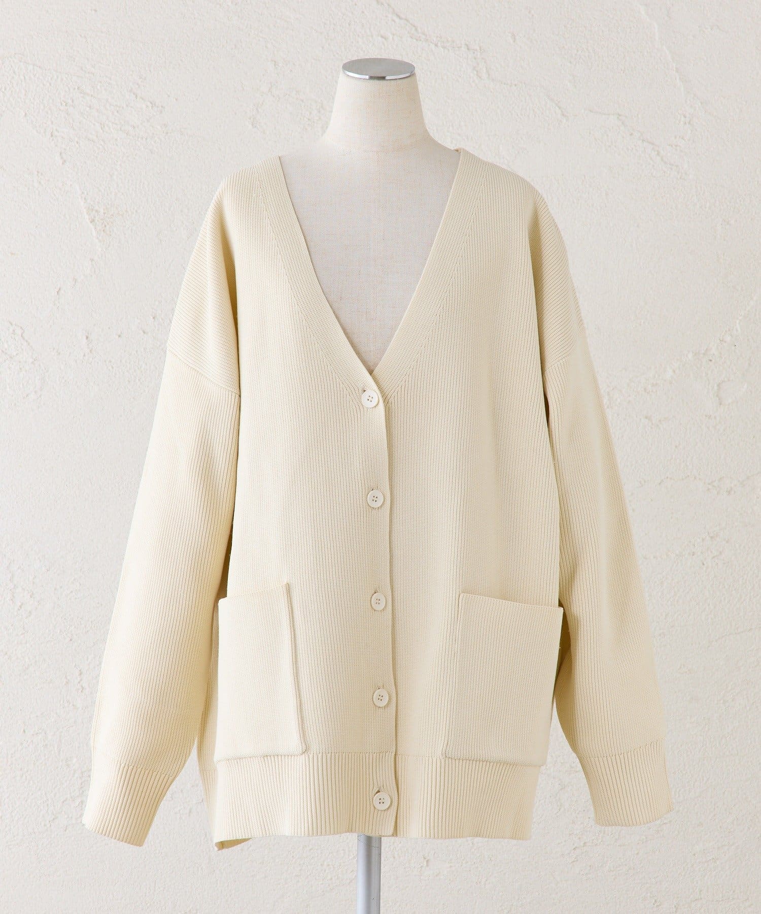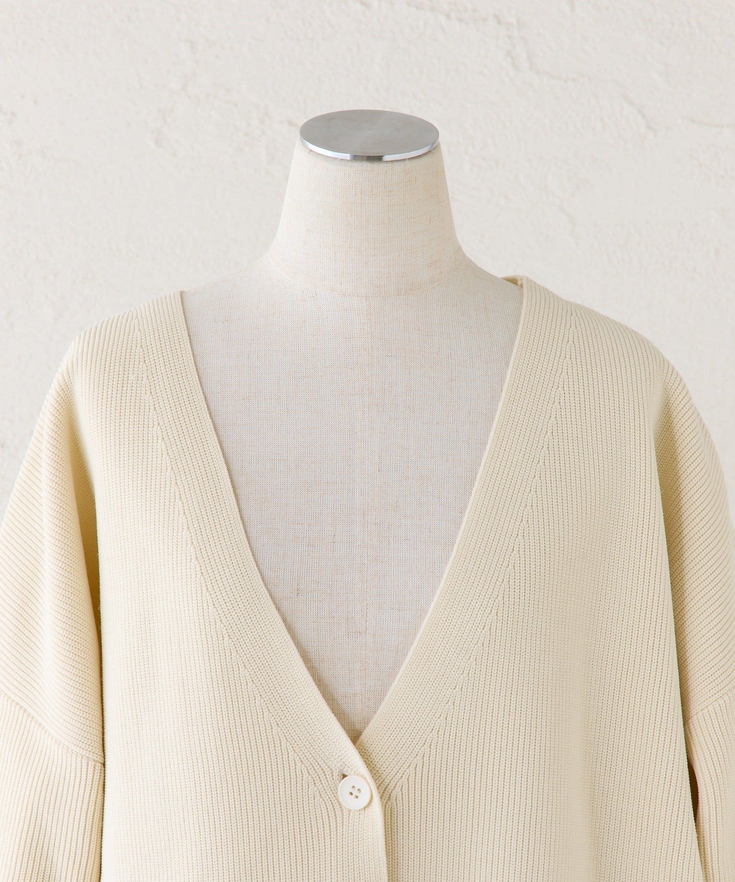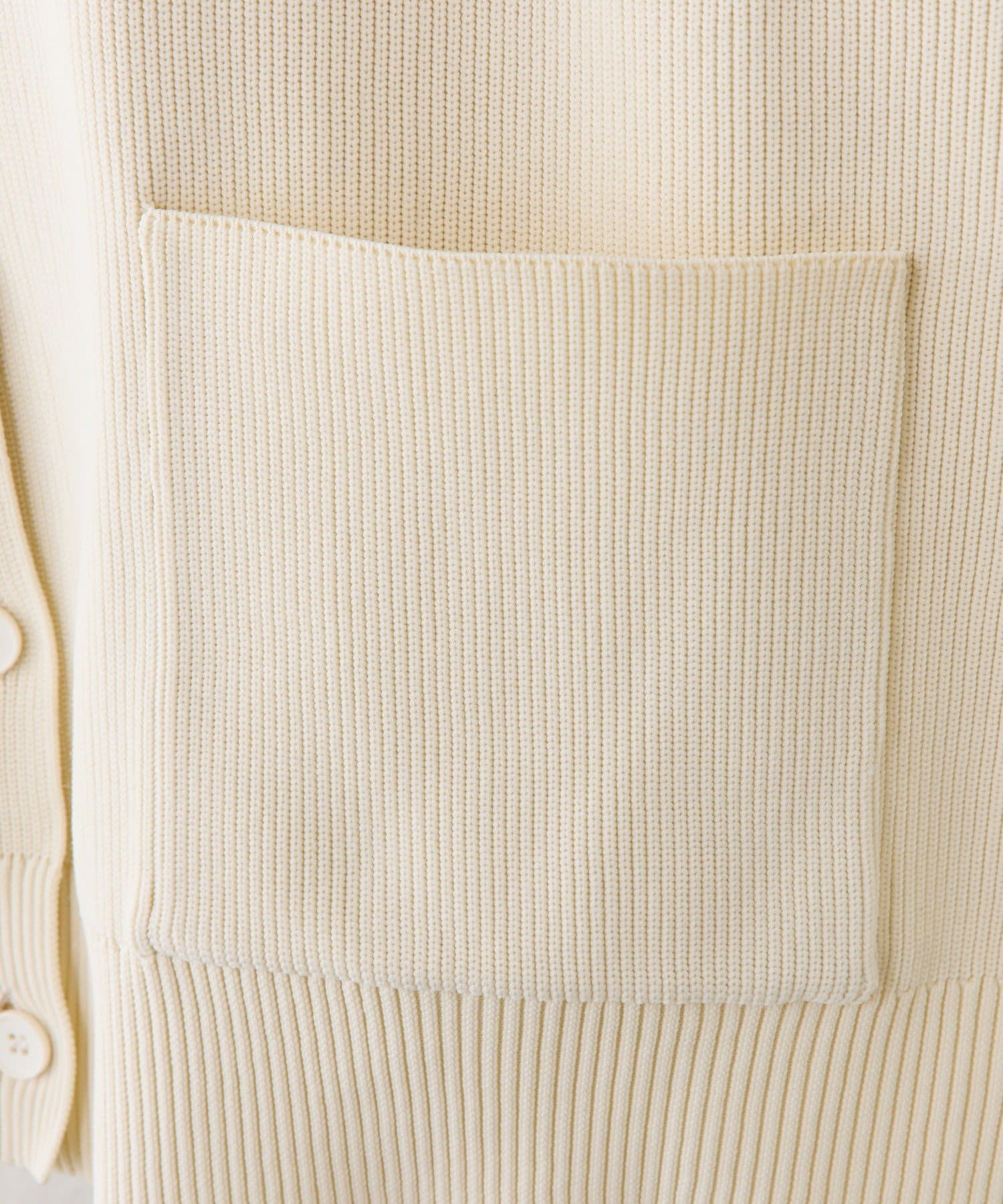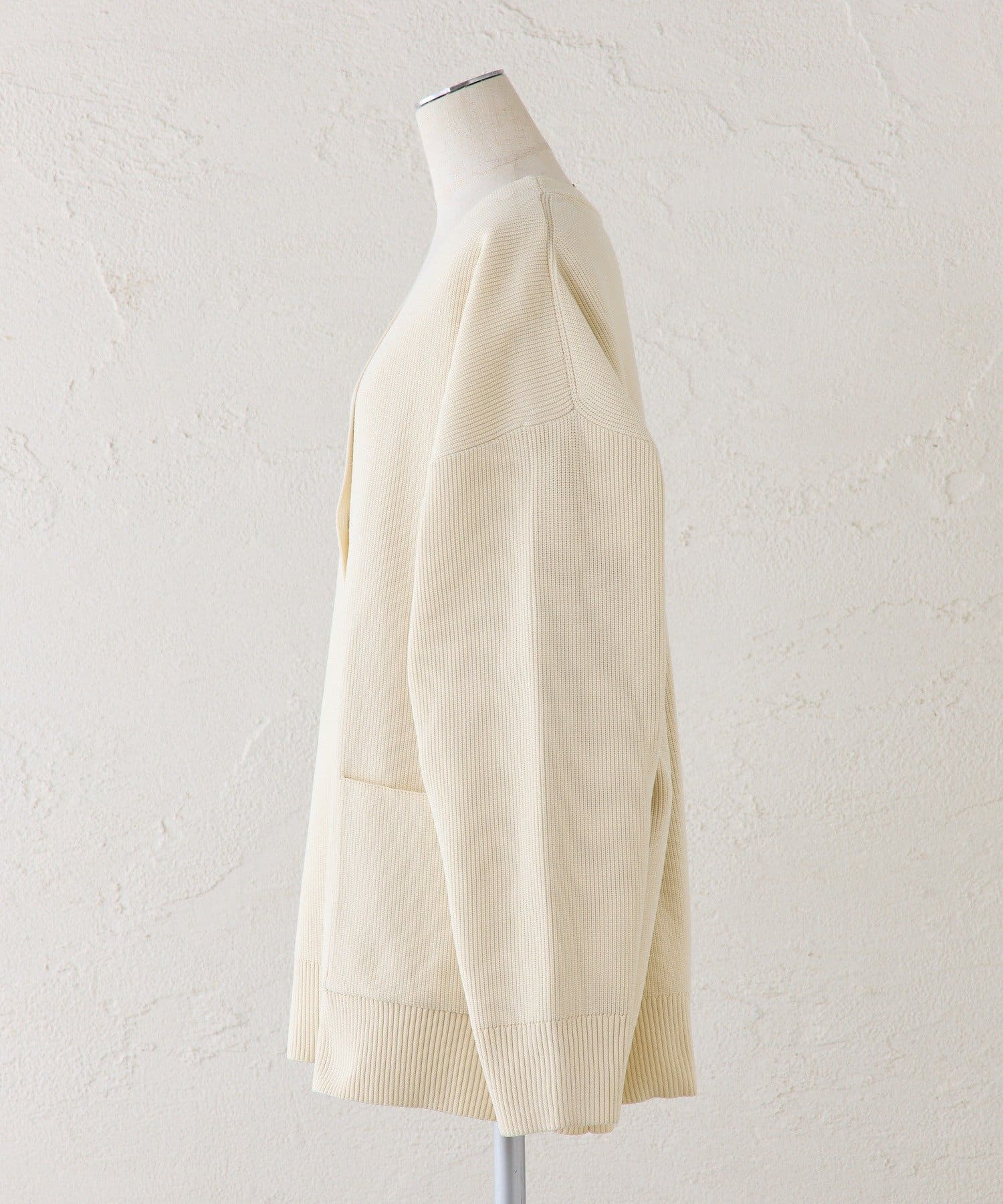編み地にハリ感があり、フォルムがしっかりキープされるため着映えする主役級カーディガン。