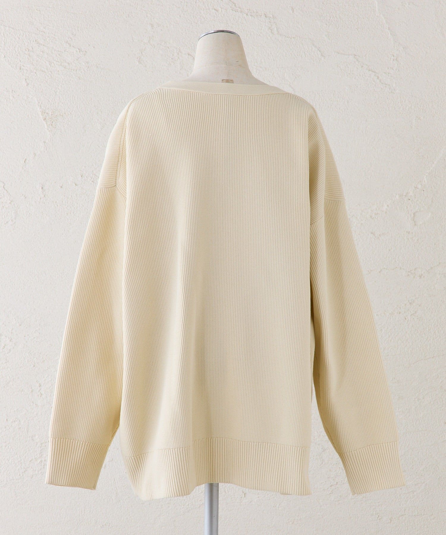 ゆとりを持たせた身幅とざっくり開いたVネックデザインがリラックスムードを漂わせます。