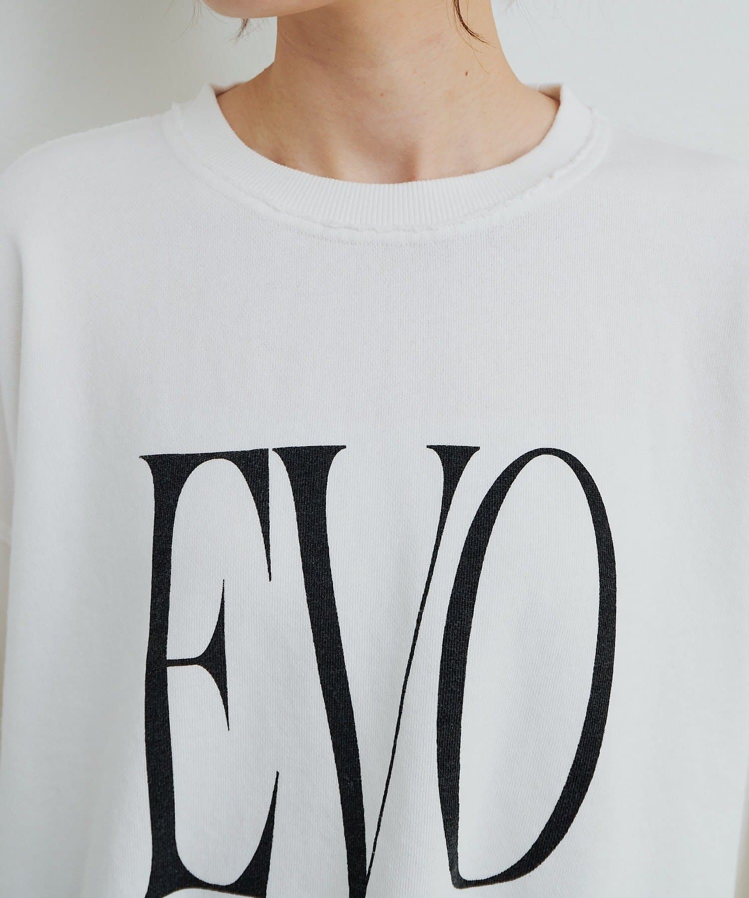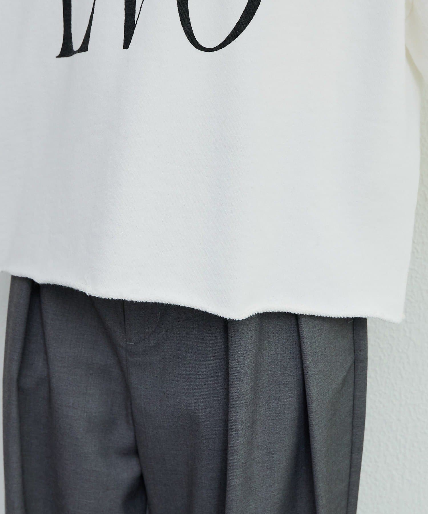 肩線や首回りが切りっぱなしデザインになっており、